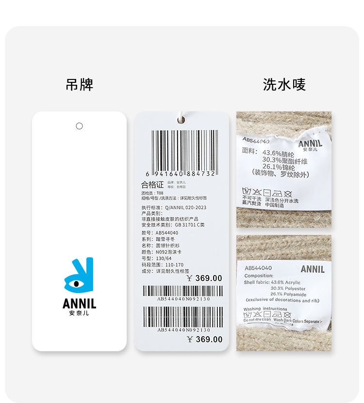 【实体店同款】男童圆领针织衫冬季新款安奈儿童装AB544040