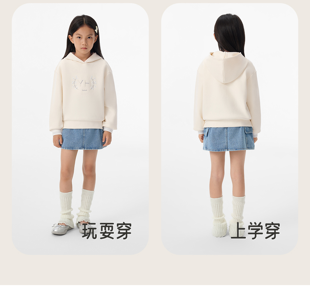 英氏童装女童宽松卫衣秋装新款中大童运动休闲连帽套头百搭上衣