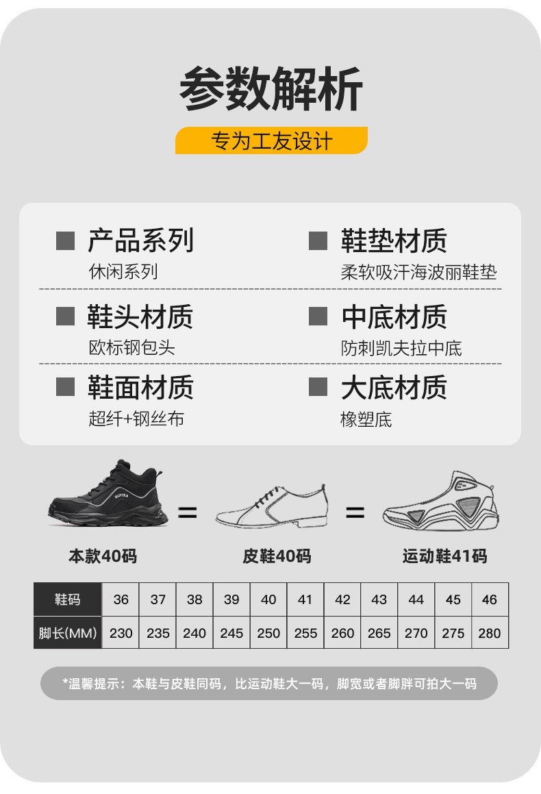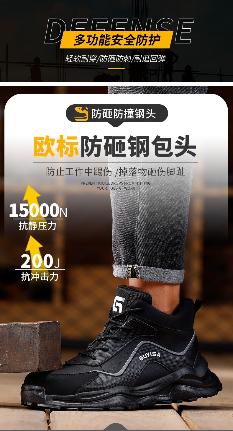 劳保鞋男四季款防砸防刺安全鞋橡塑底轻便高帮工作鞋