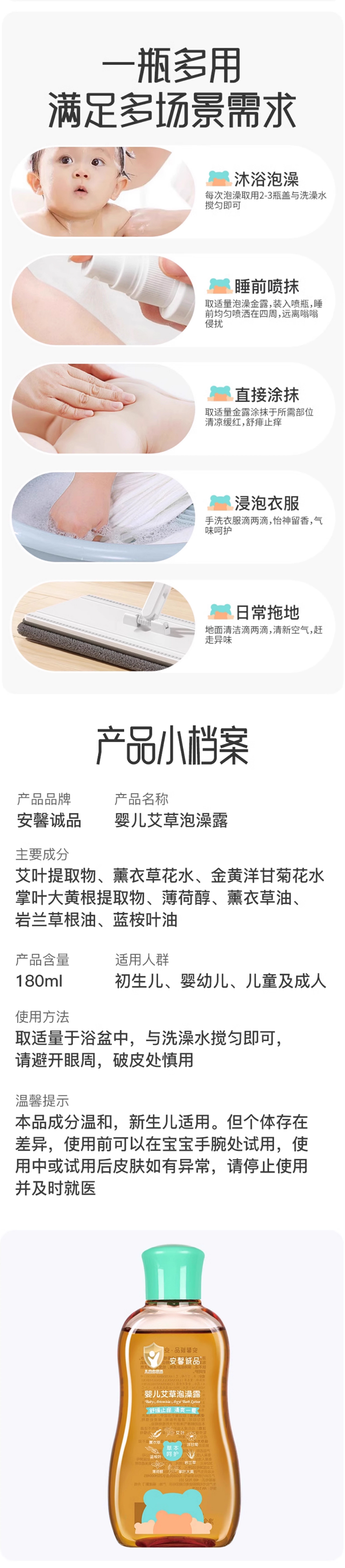 安馨诚品婴儿艾草泡澡露185g