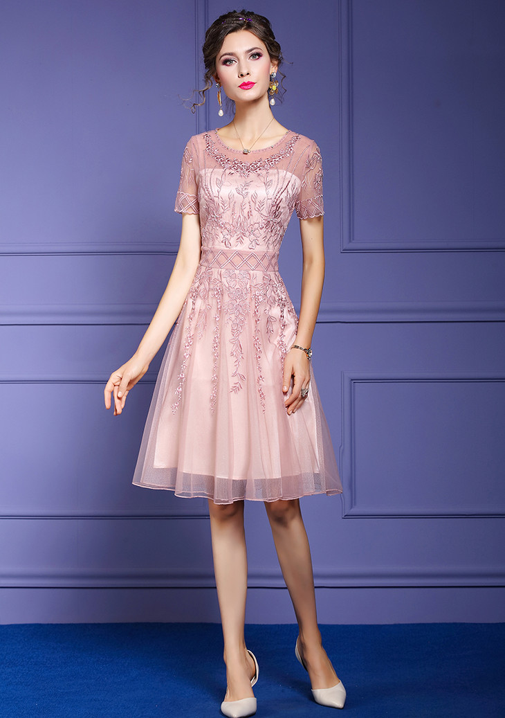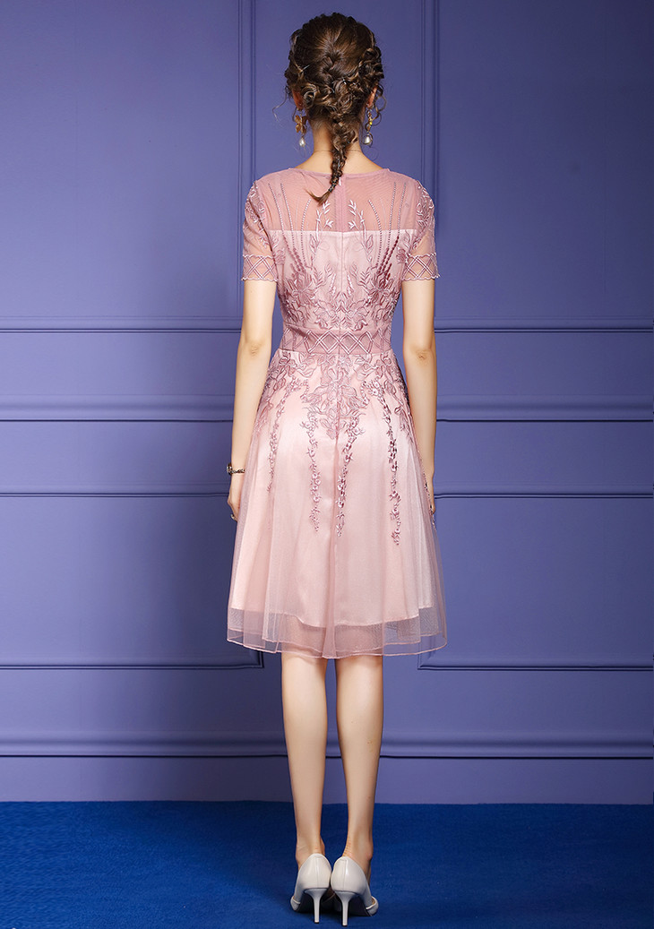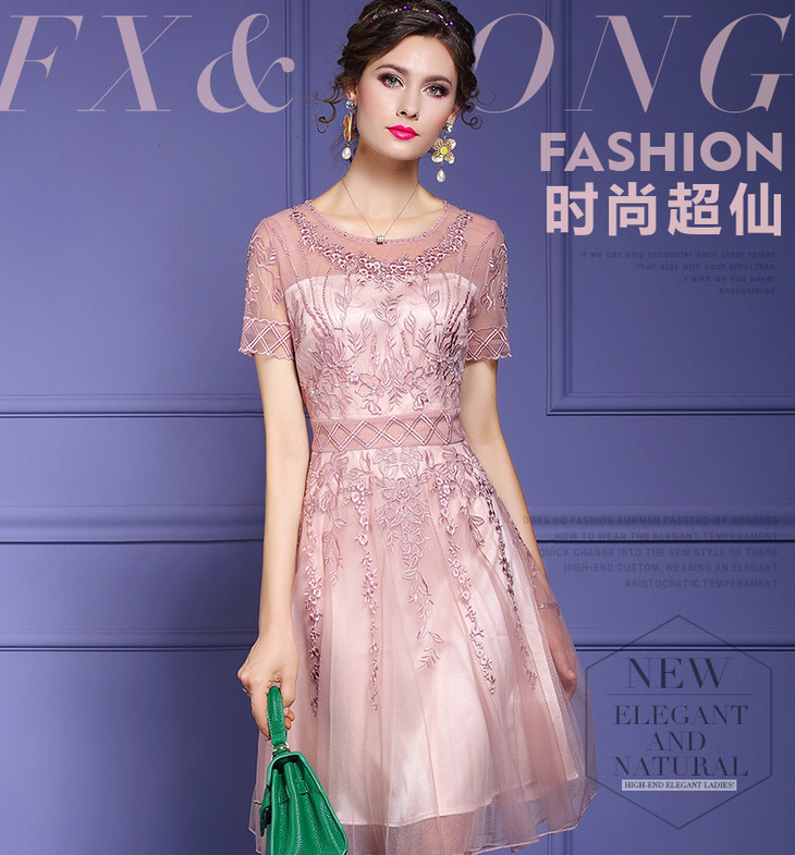 FMY-F20XL33098夏装款时尚超仙钉珠A字网布绣花连衣裙
