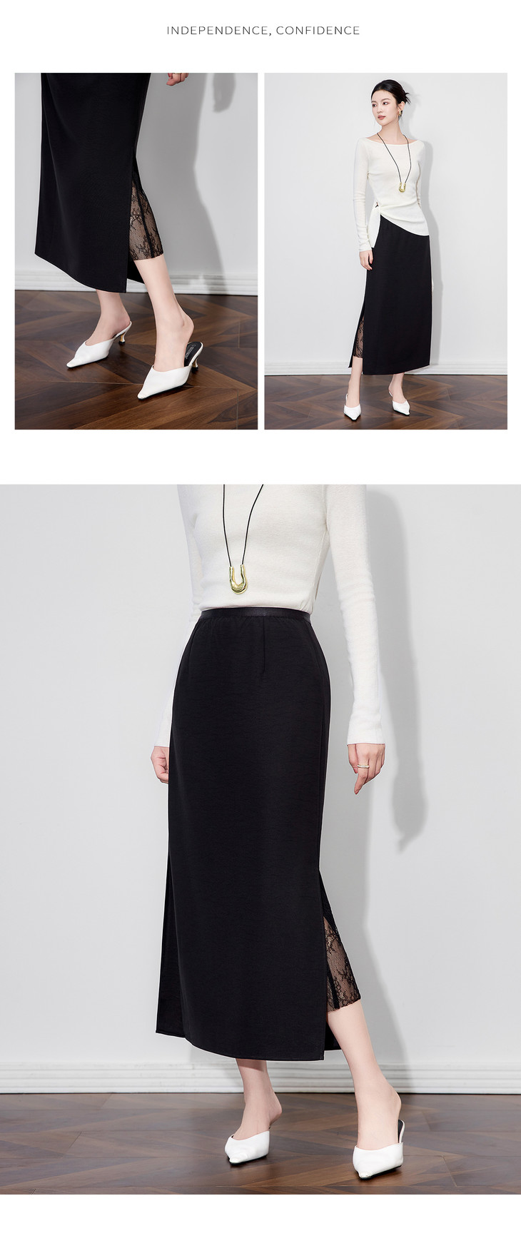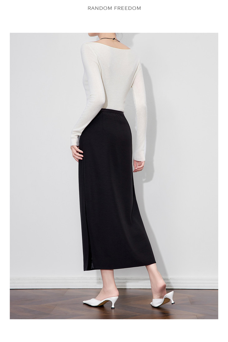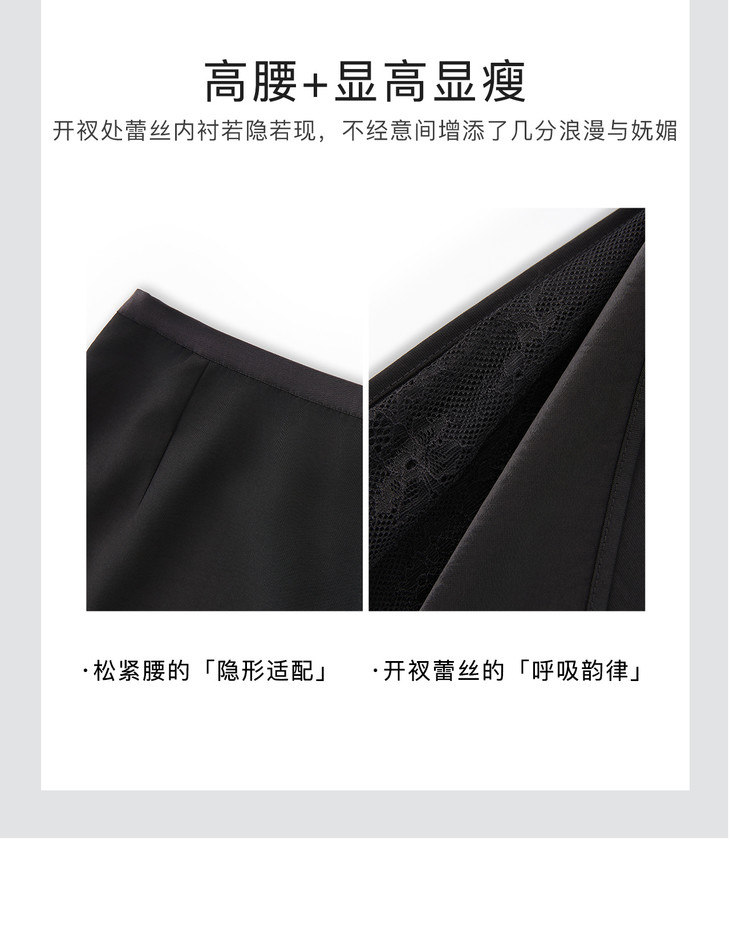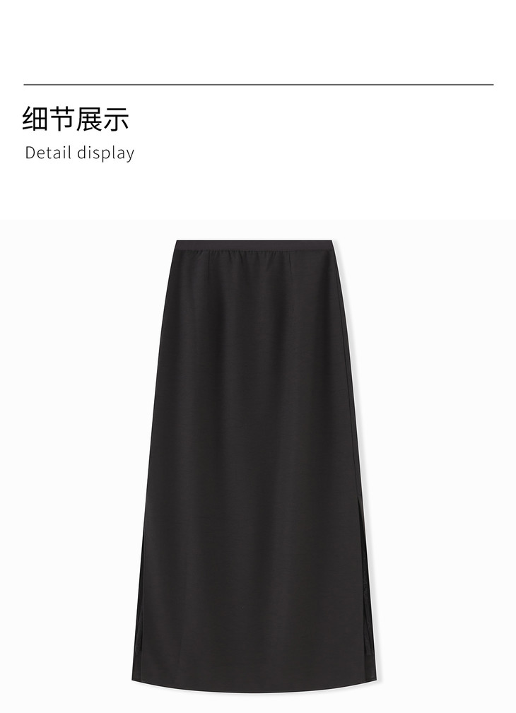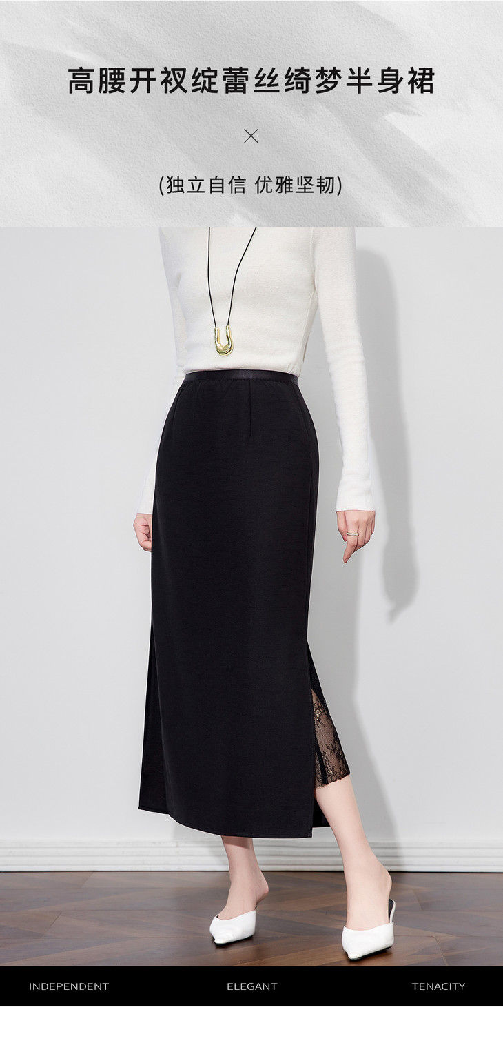 极简修身知性通勤,拼蕾丝松紧腰开衩半身裙WLZD-2511201