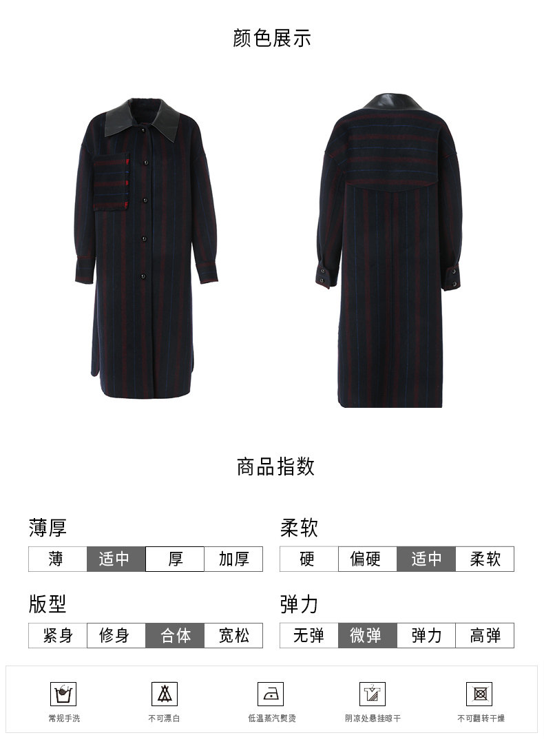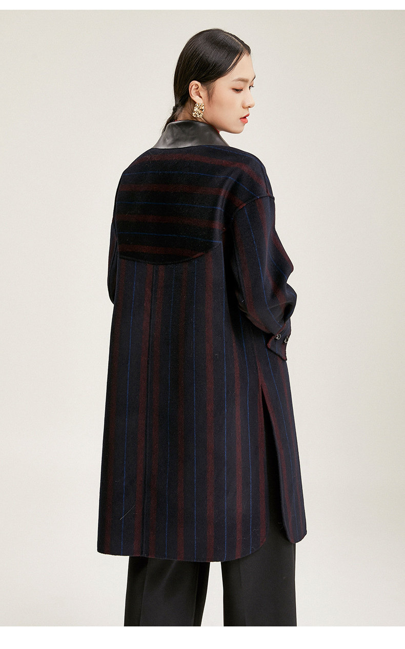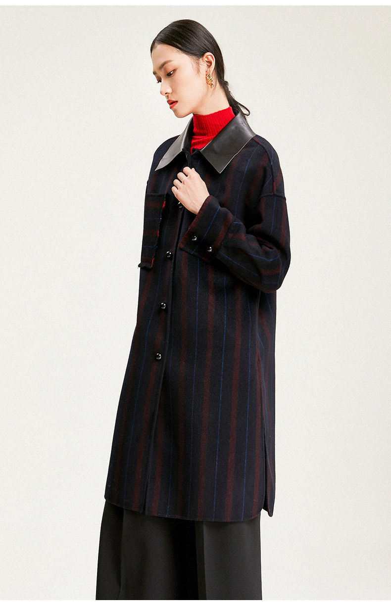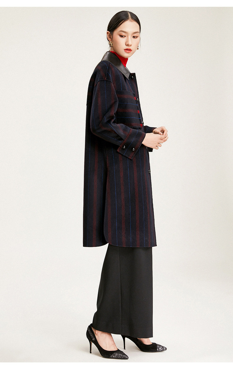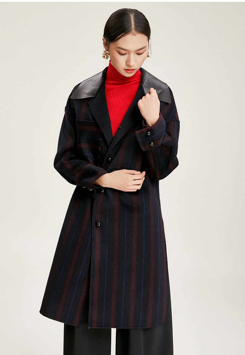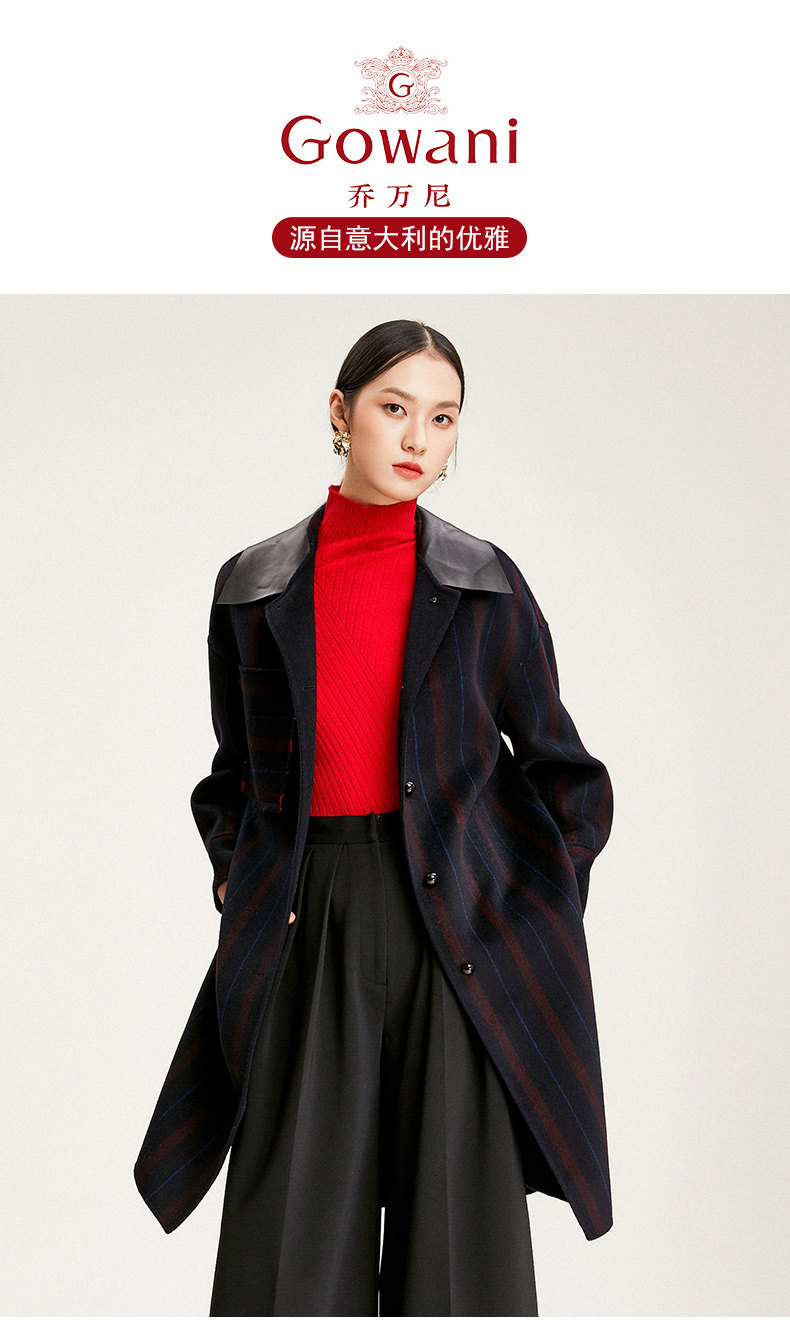 【100%绵羊毛】乔万尼秋冬毛呢大衣女时尚条纹翻领阔版外套气质中长韩版EN4A790