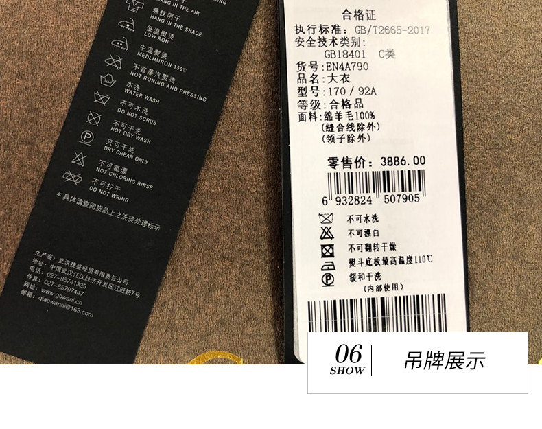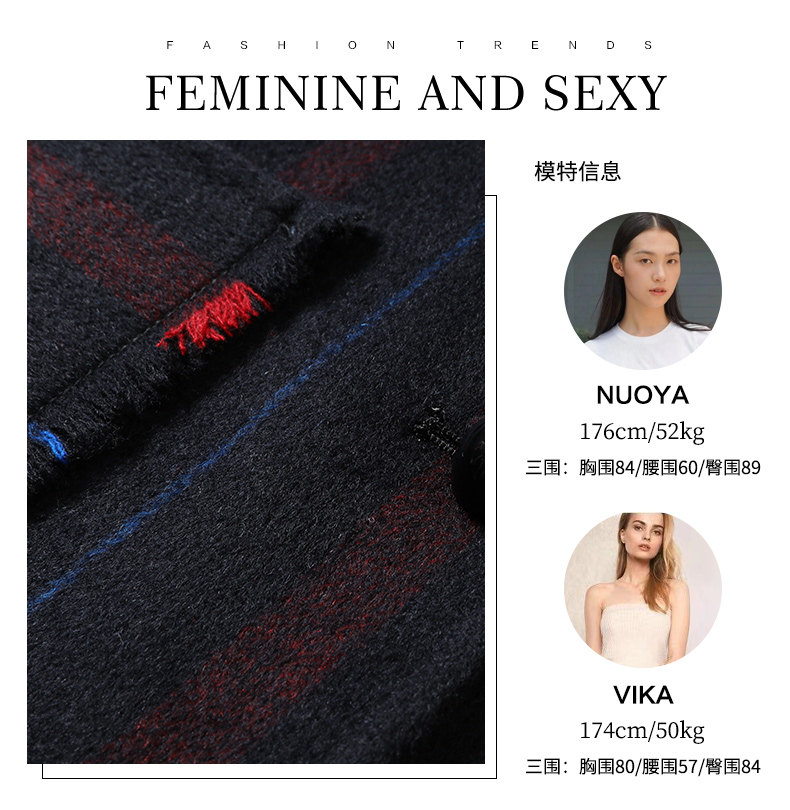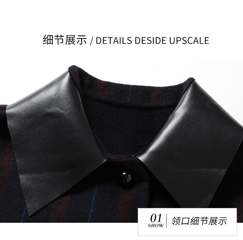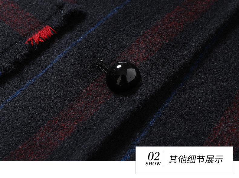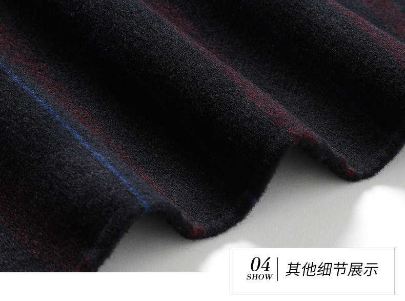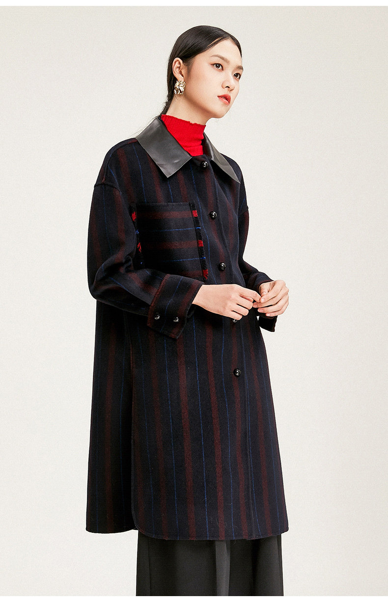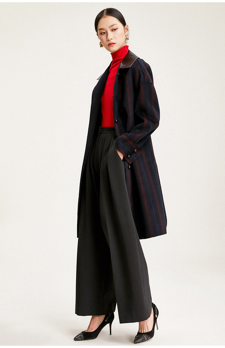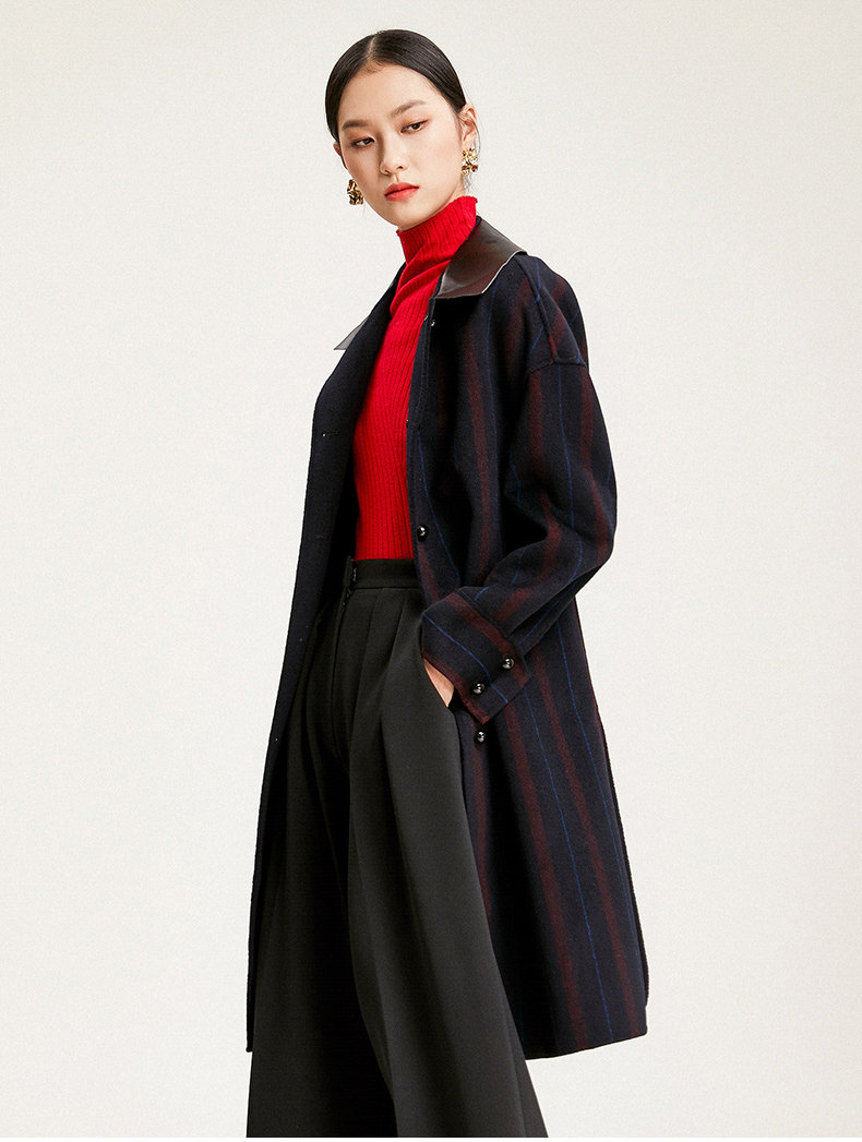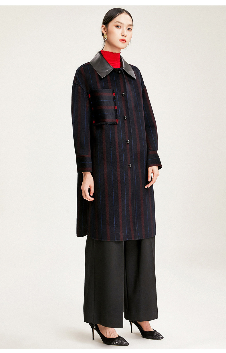 【100%绵羊毛】乔万尼秋冬毛呢大衣女时尚条纹翻领阔版外套气质中长韩版EN4A790
