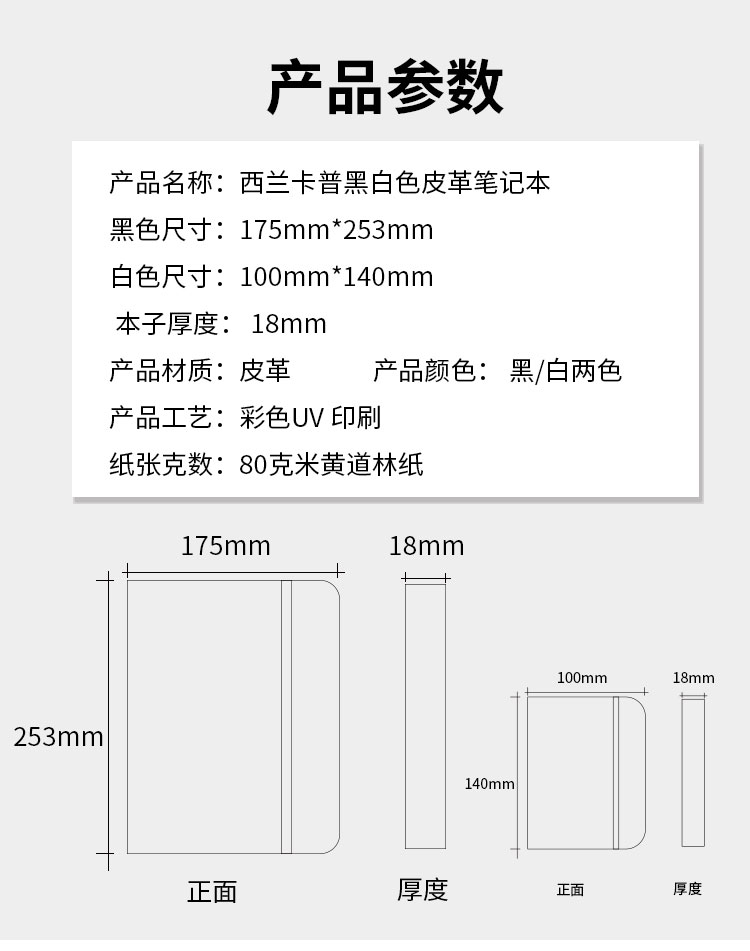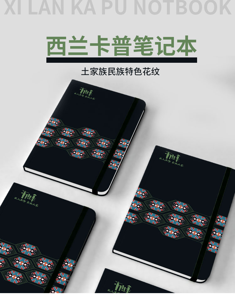 五峰楚陵溪文创西兰卡普黑白色皮革笔记本