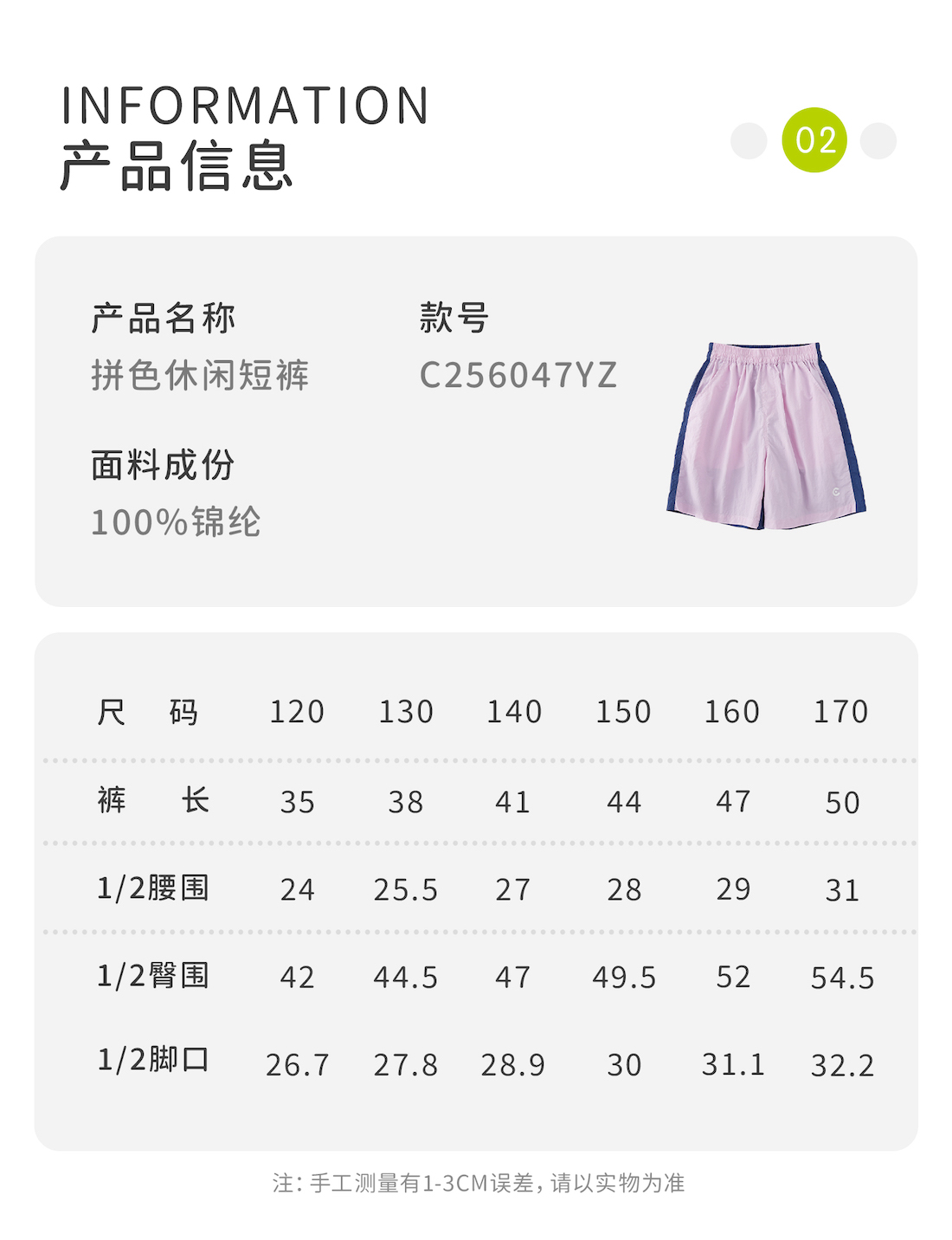 cicochild 25年夏季新款女童拼色休闲短裤中大童户外运动裤子
