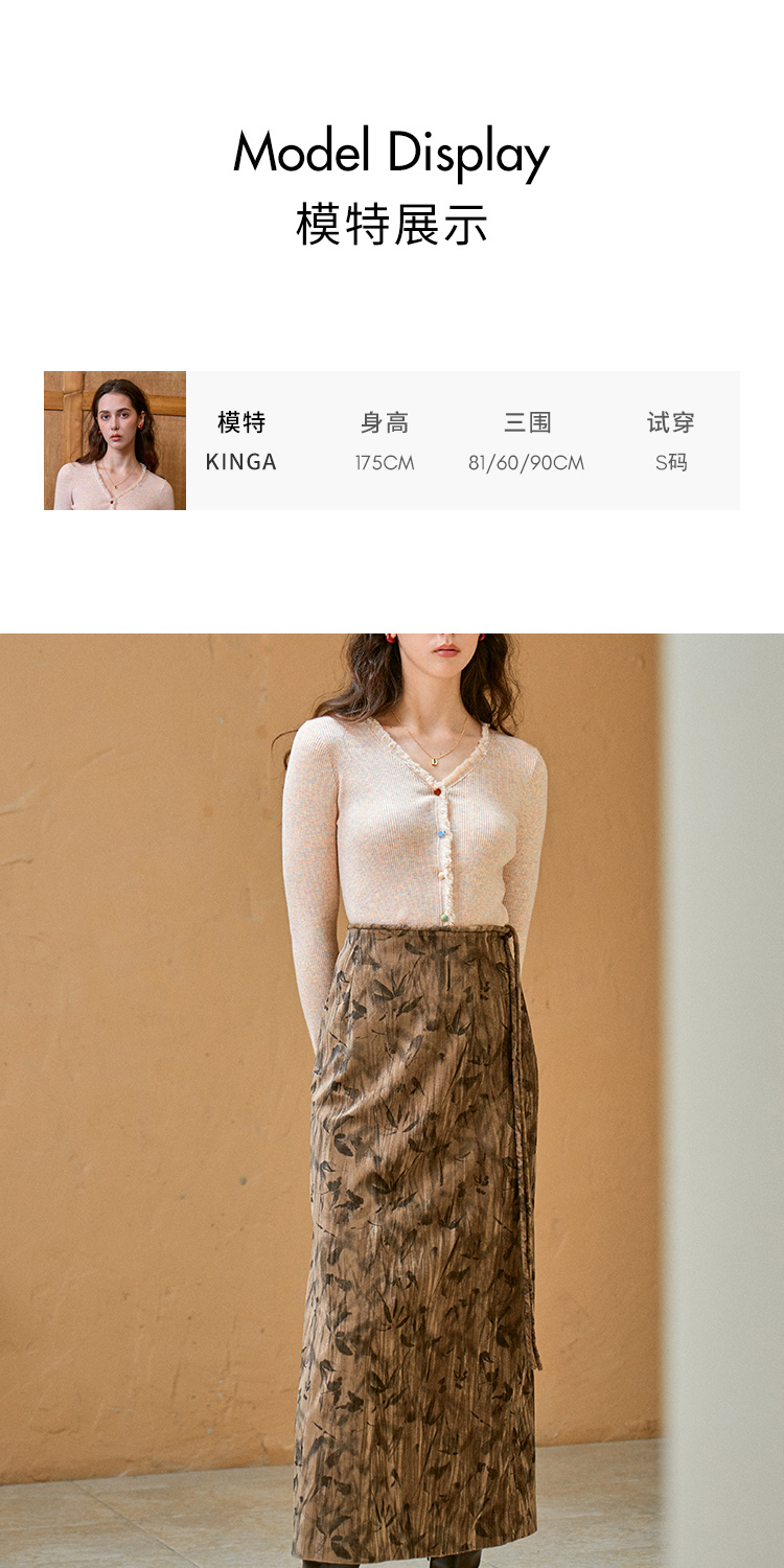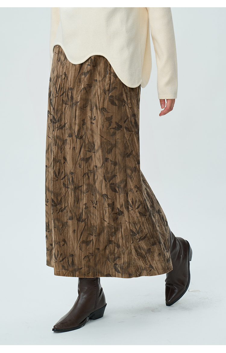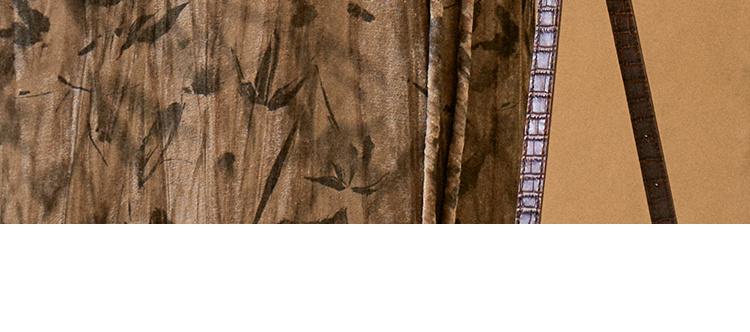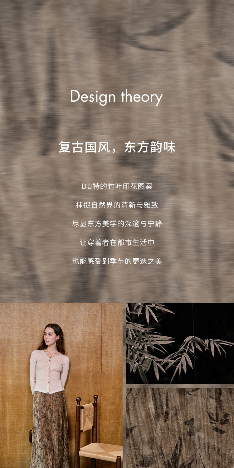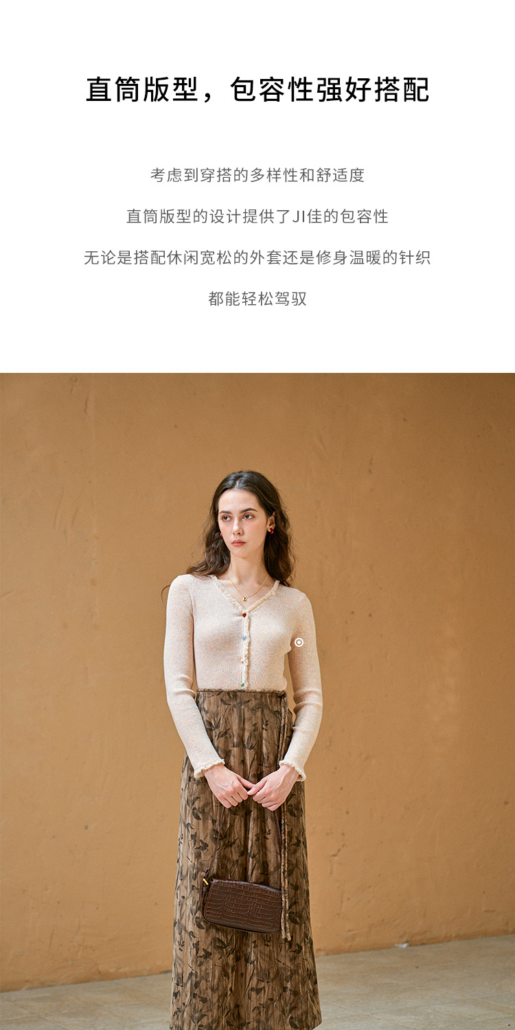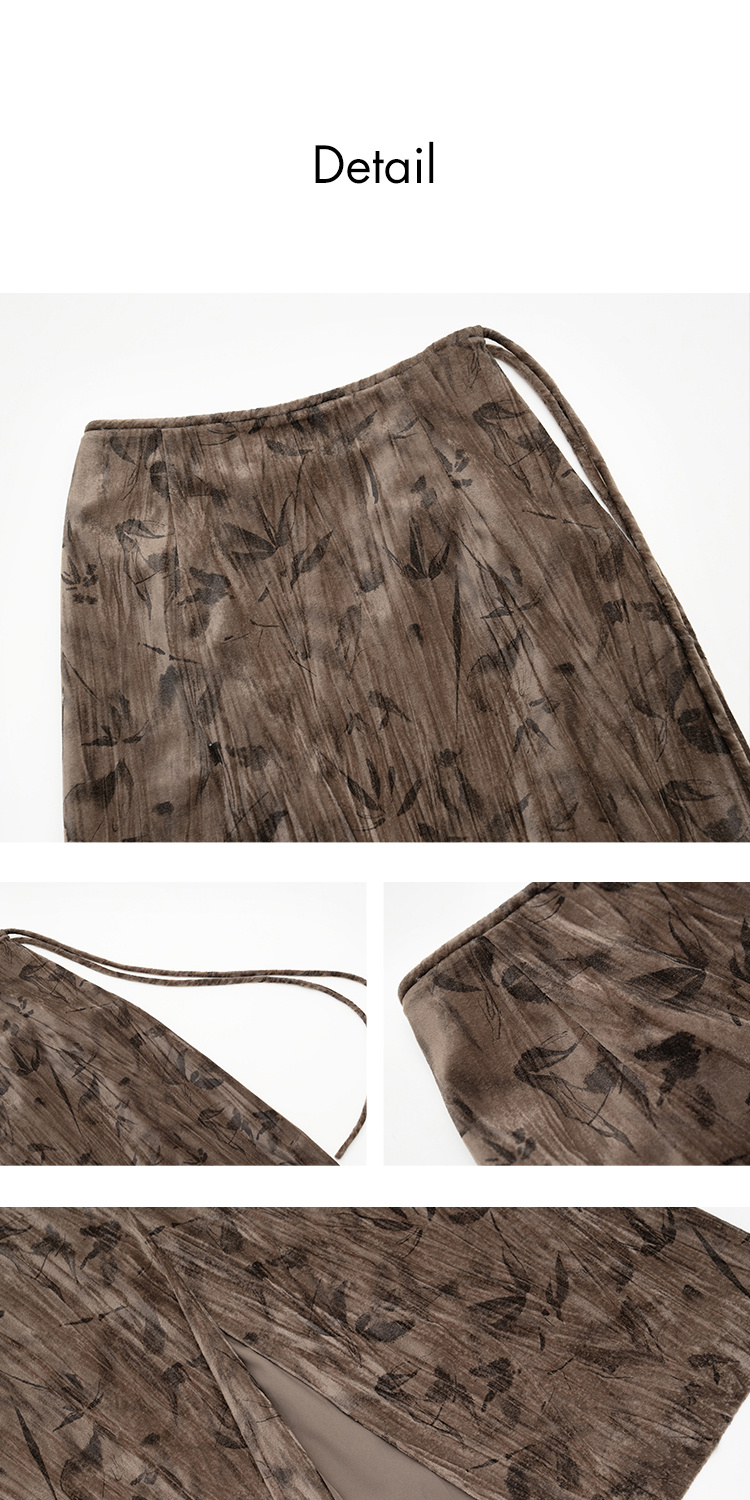 HeyDress新中式竹叶印花半身裙女秋季垂坠气质开叉直筒a字裙子
