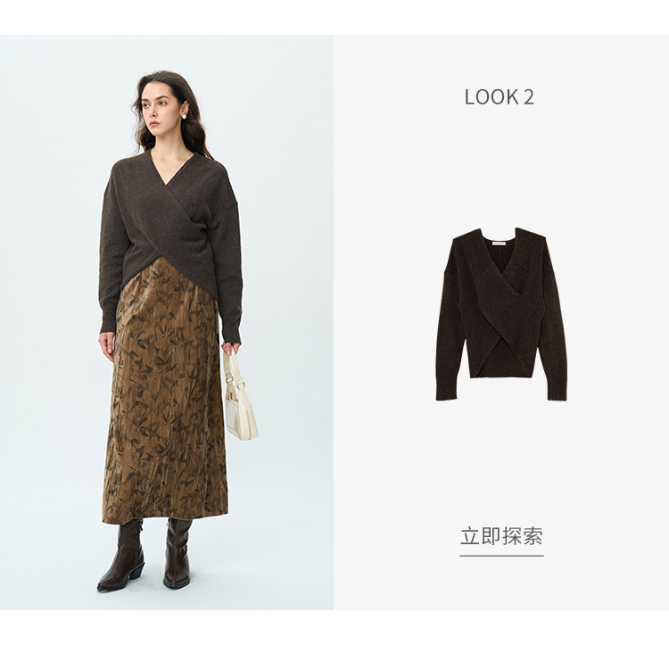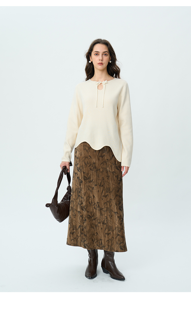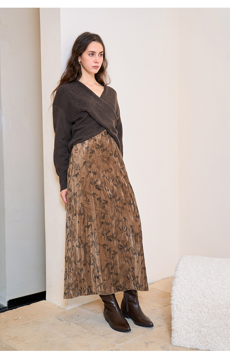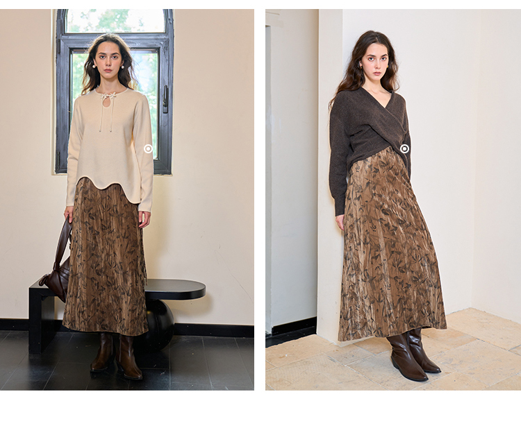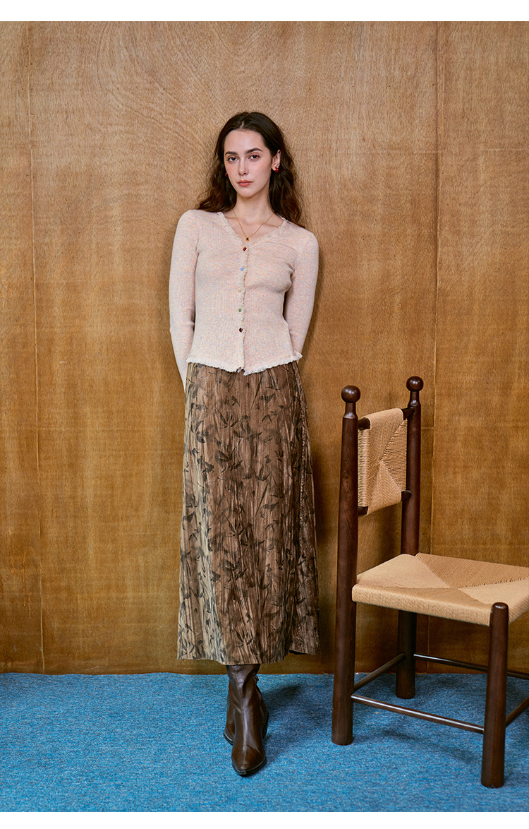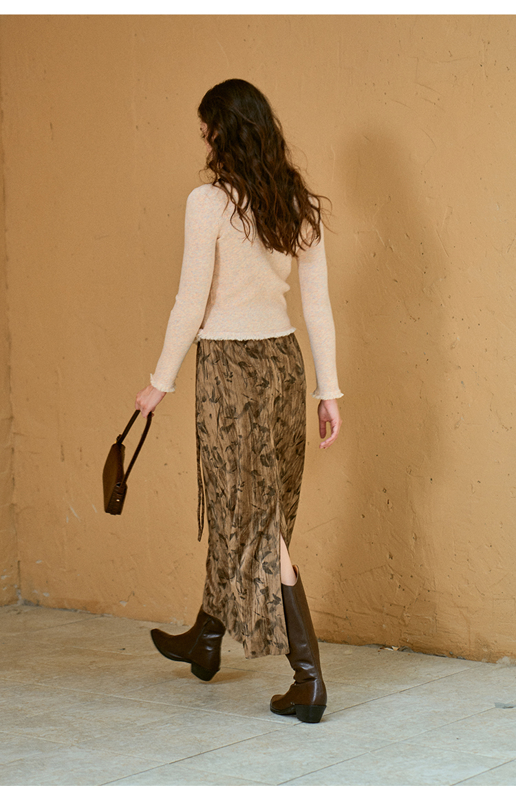 HeyDress新中式竹叶印花半身裙女秋季垂坠气质开叉直筒a字裙子