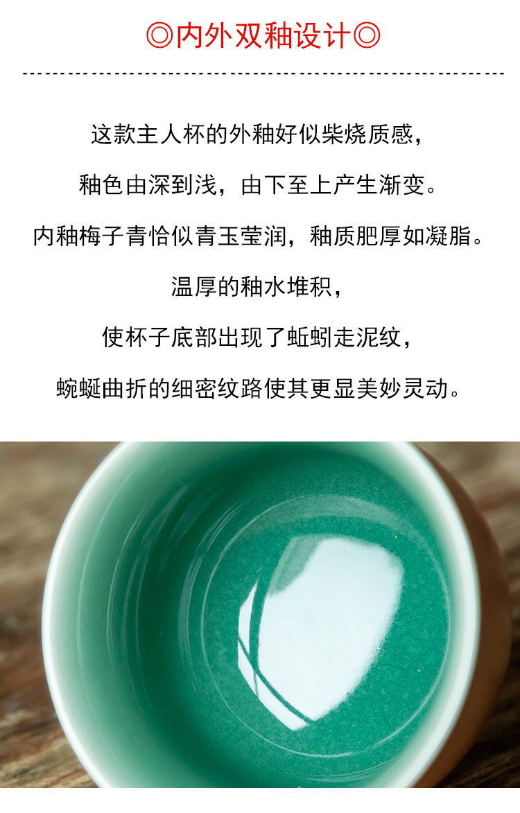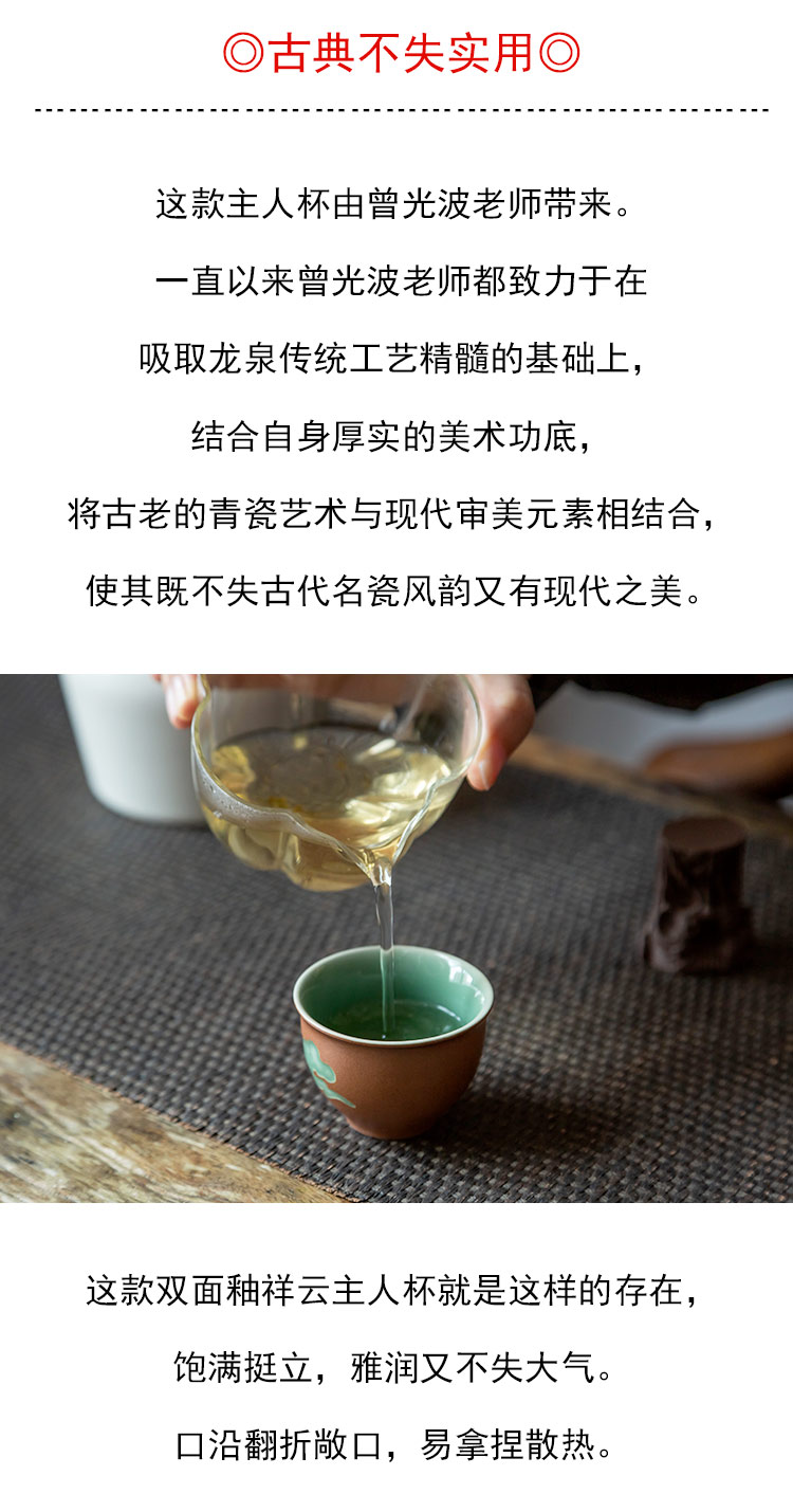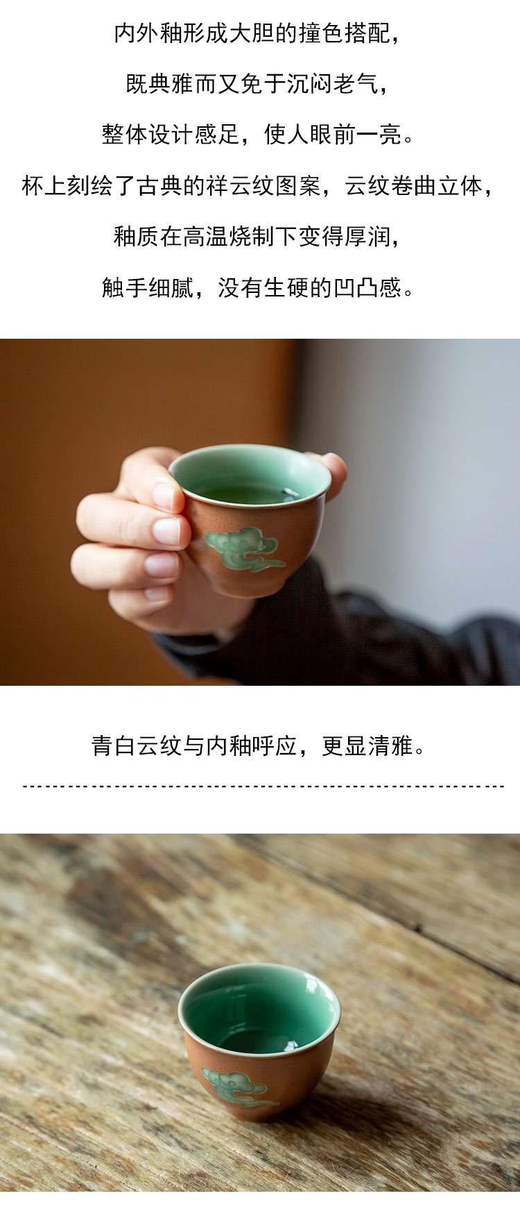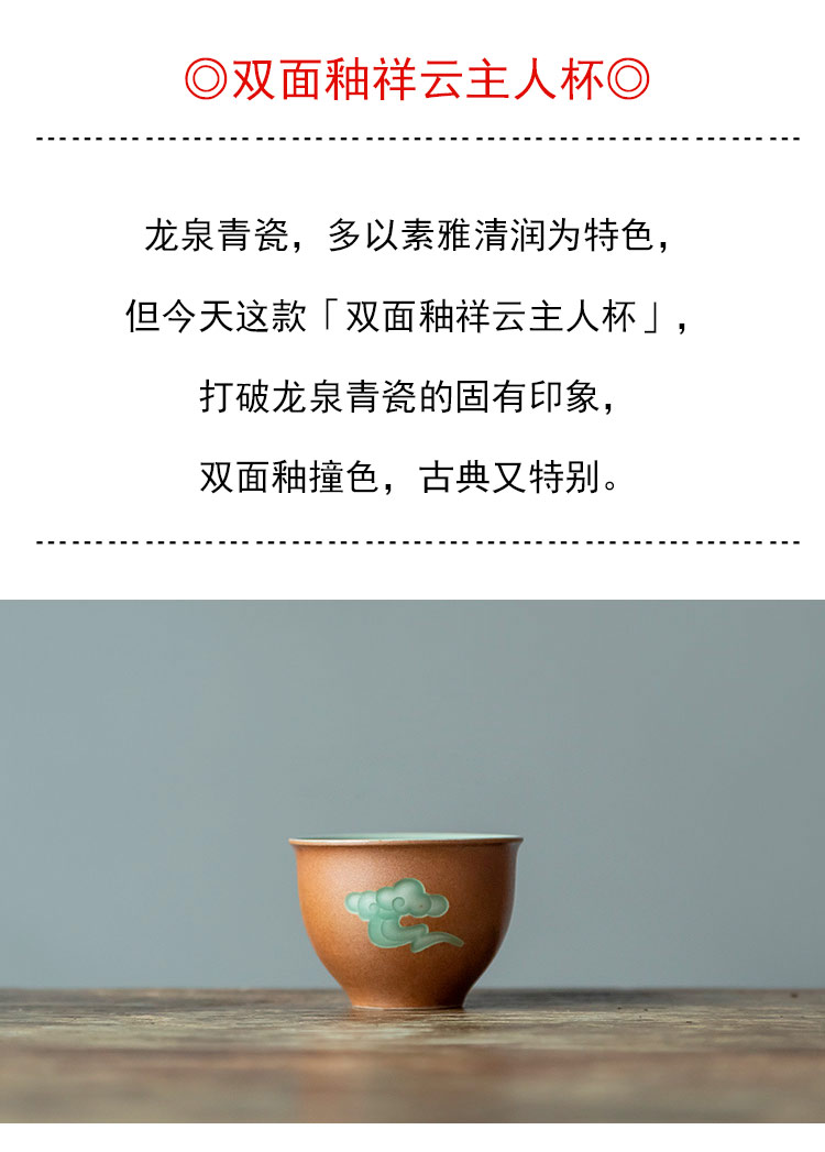茶香记 龙泉青瓷手工双面釉祥云主人杯50ml曾光波梅子青茶杯品杯
