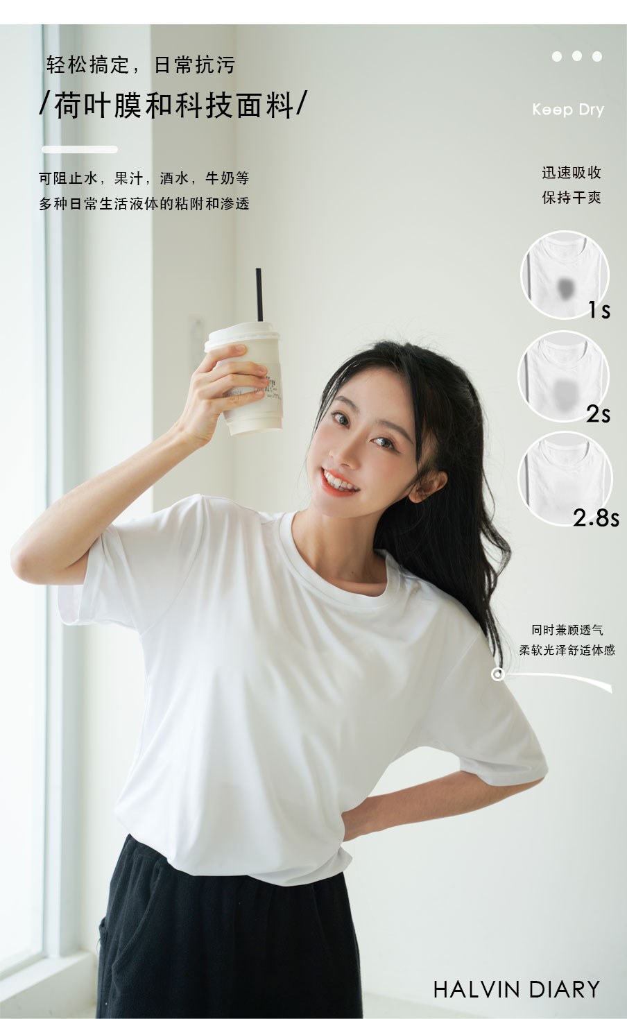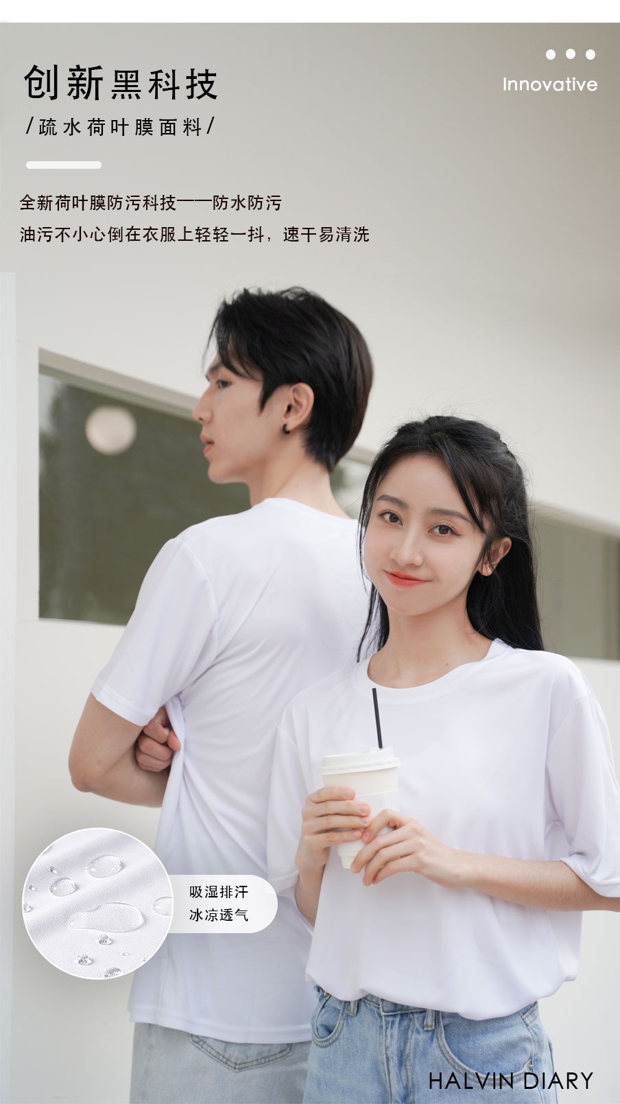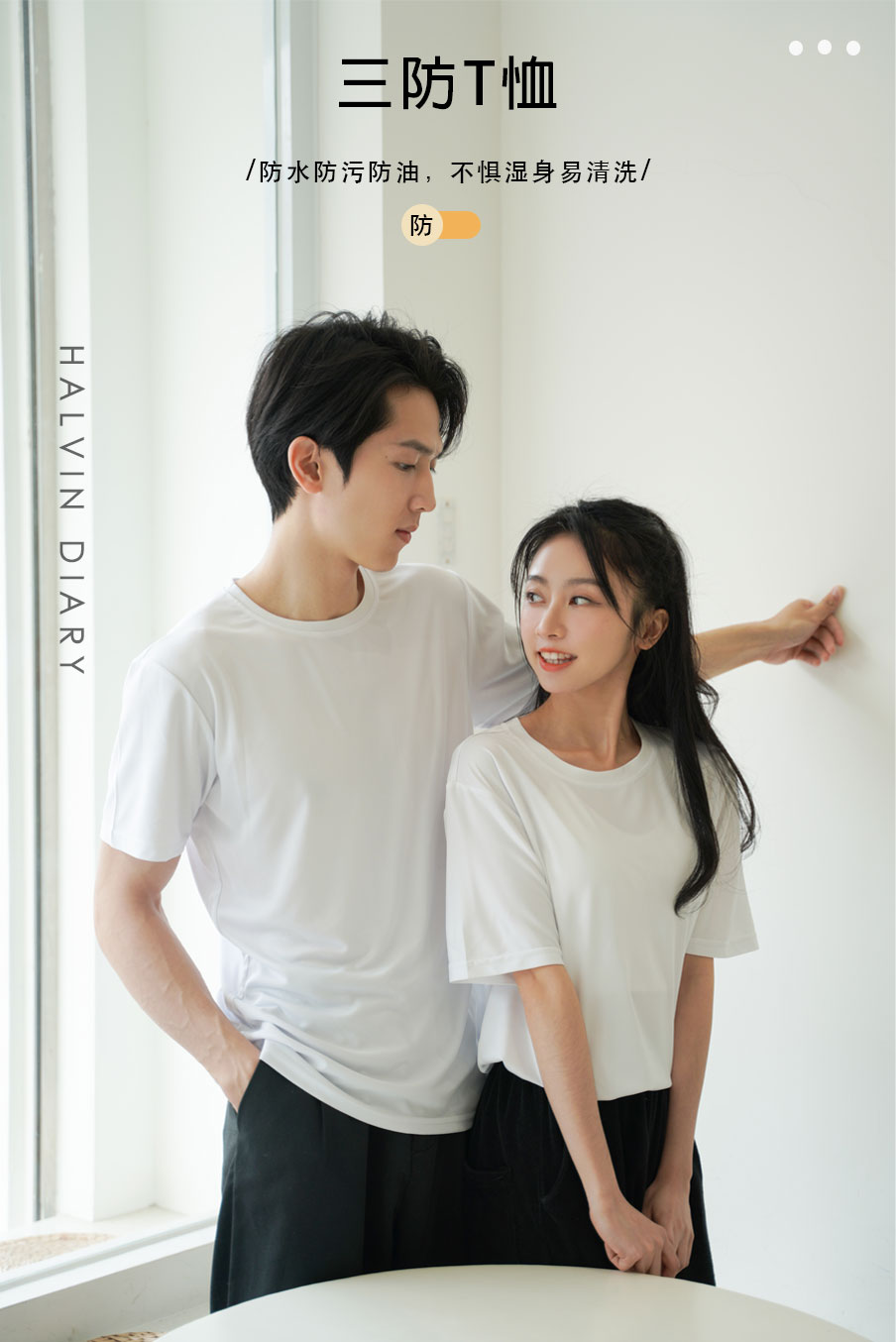 【HALVINDIARY三防情侣T恤】荷叶膜和科技面料防水防污放油不惧湿身易清洗冰凉透气速干吸收情侣T恤