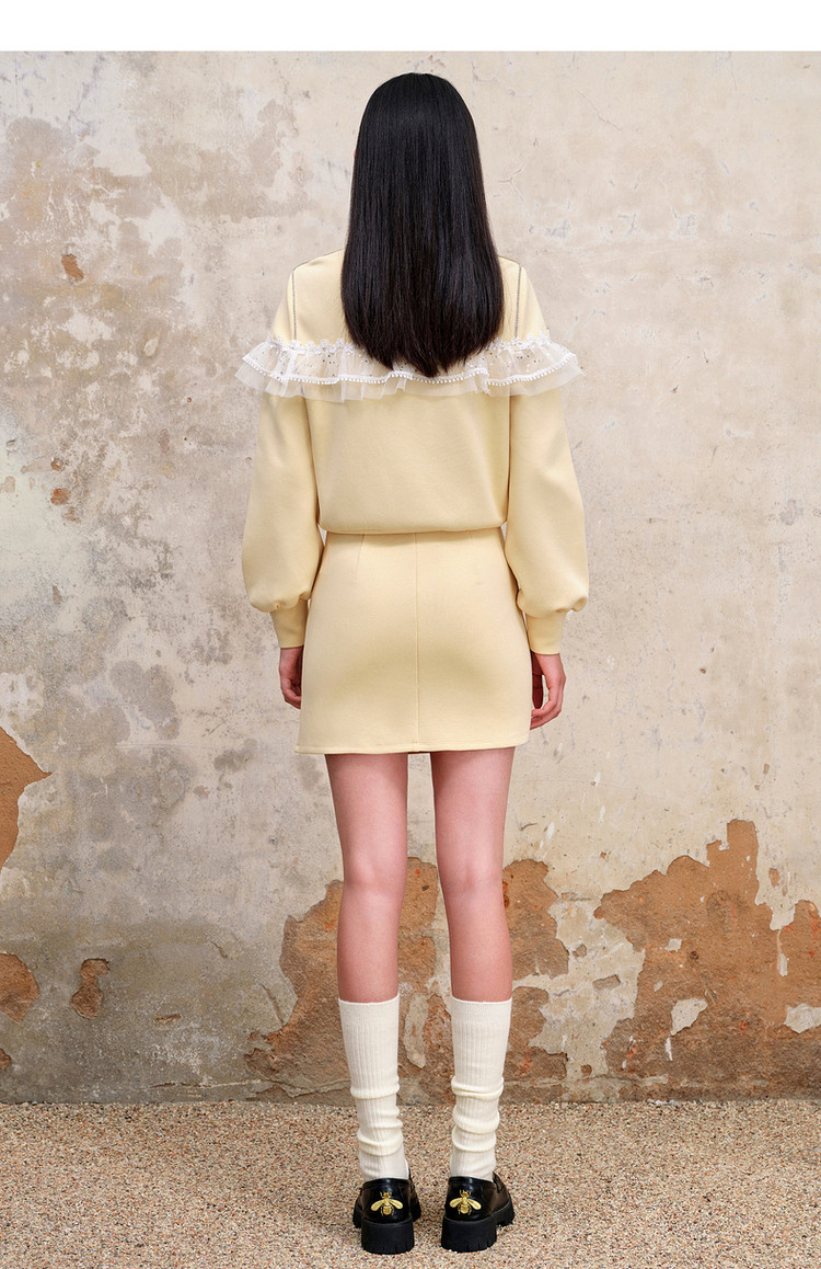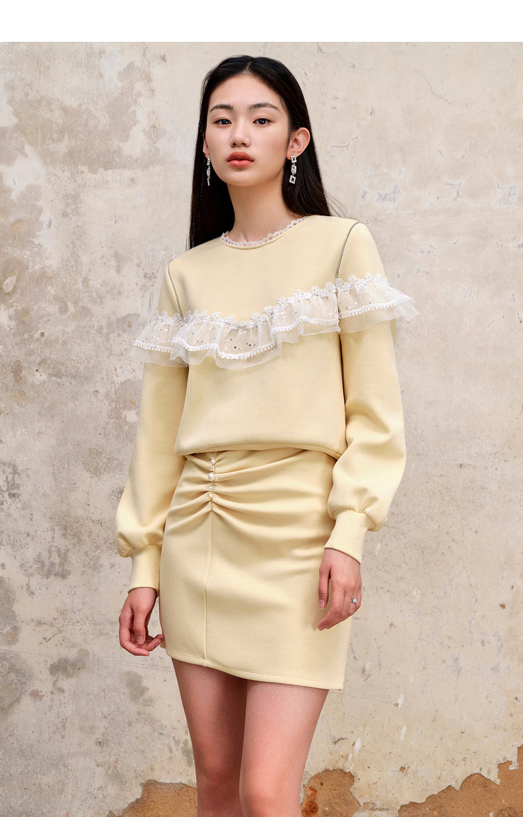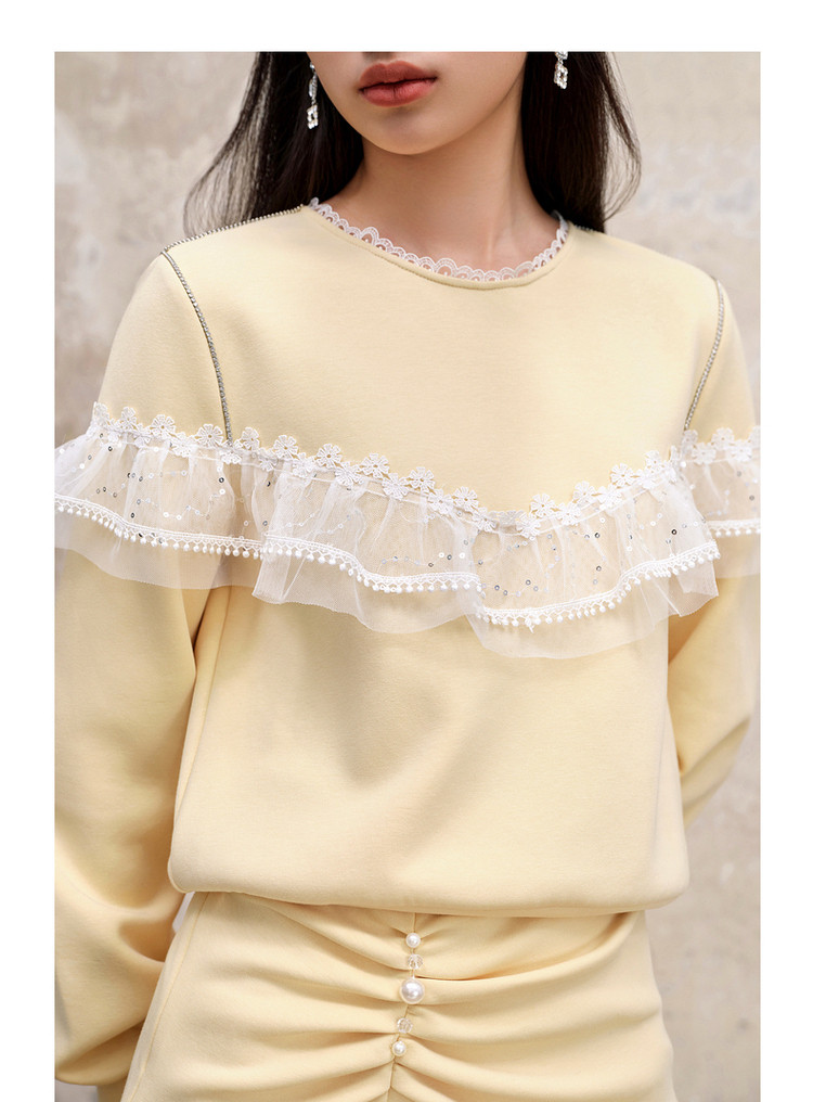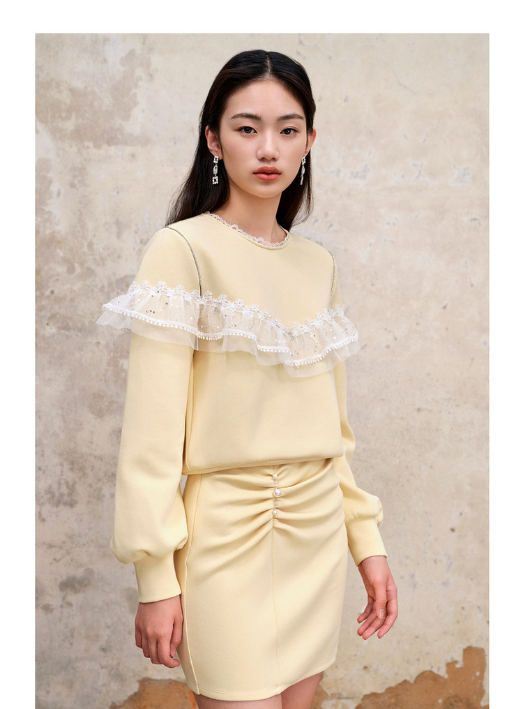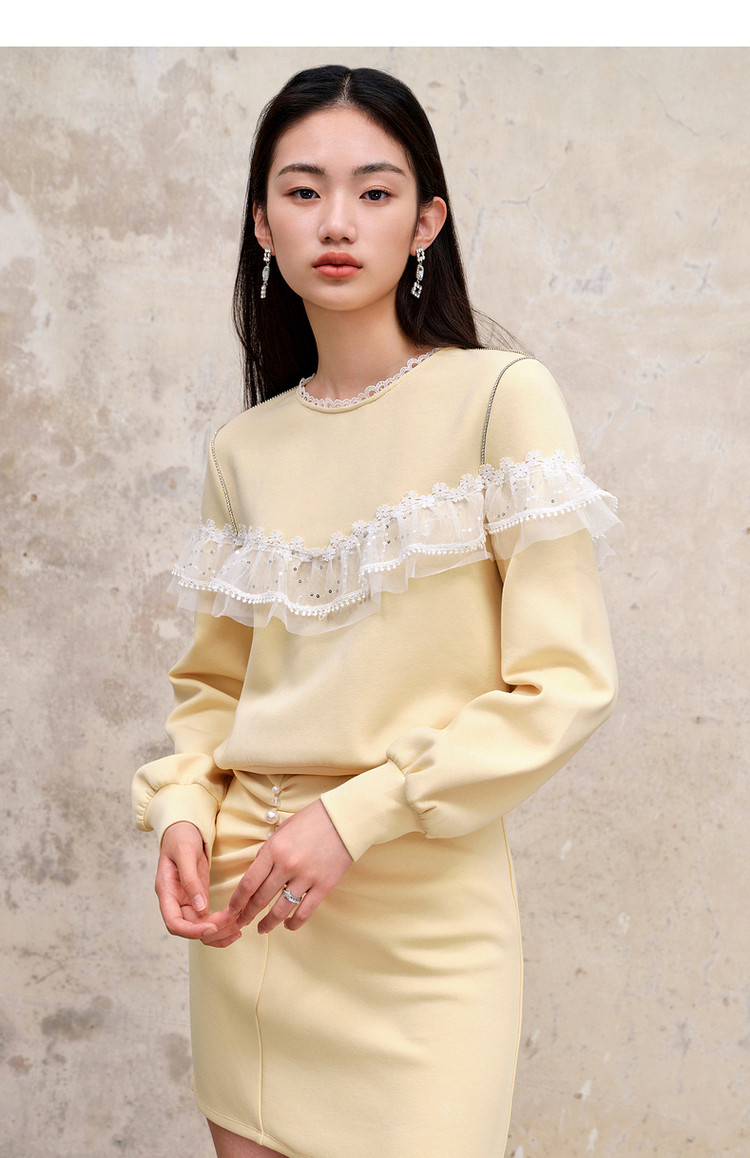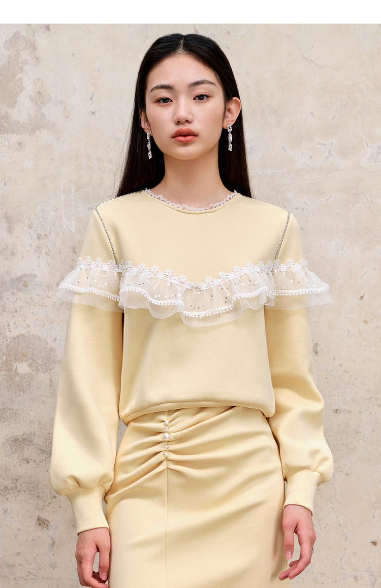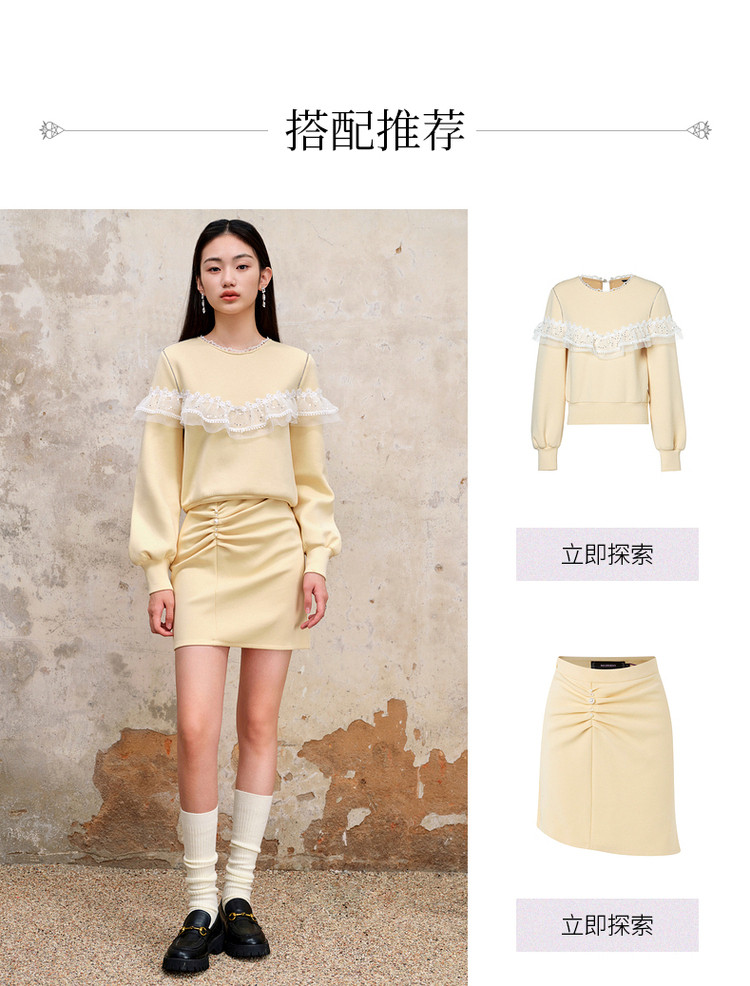 蕾丝拼接珠绣套头上衣早秋设计感卫衣女MS88TP540Y10