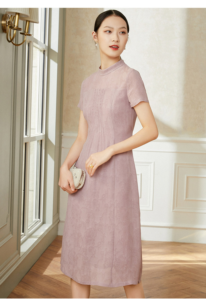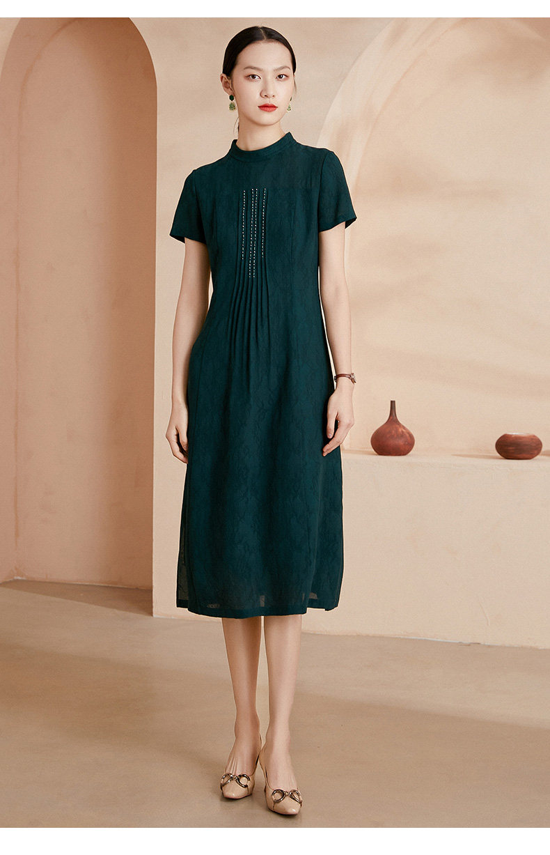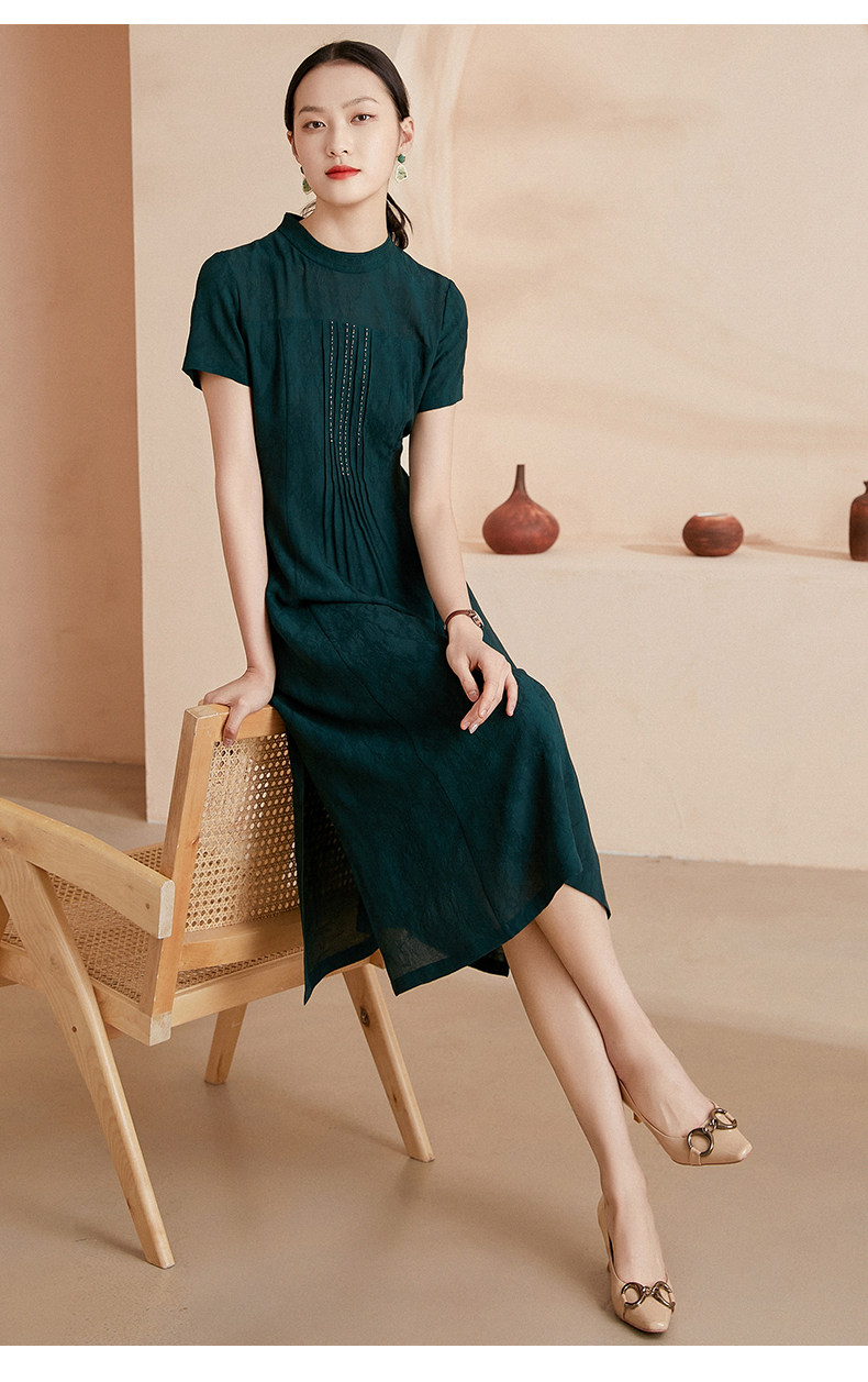 【两色可选】乔万尼真丝连衣裙重磅桑蚕丝收腰气质中长裙EI2E785