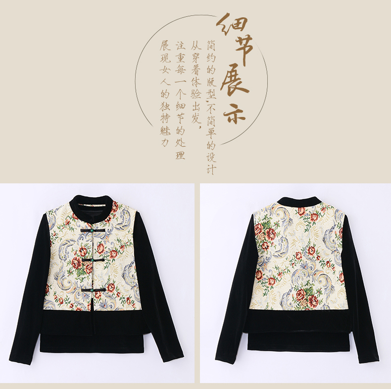 韩国绒印花长款修身长袖旗袍,复古中国风中老年女士旗袍SYK179402