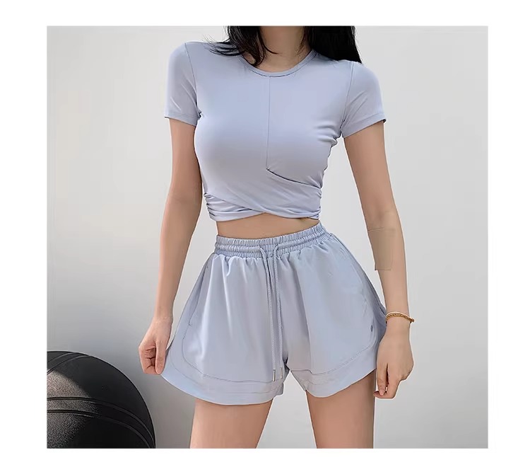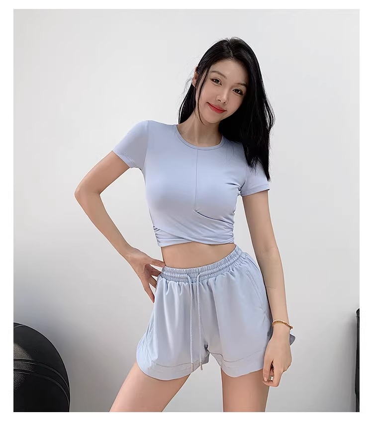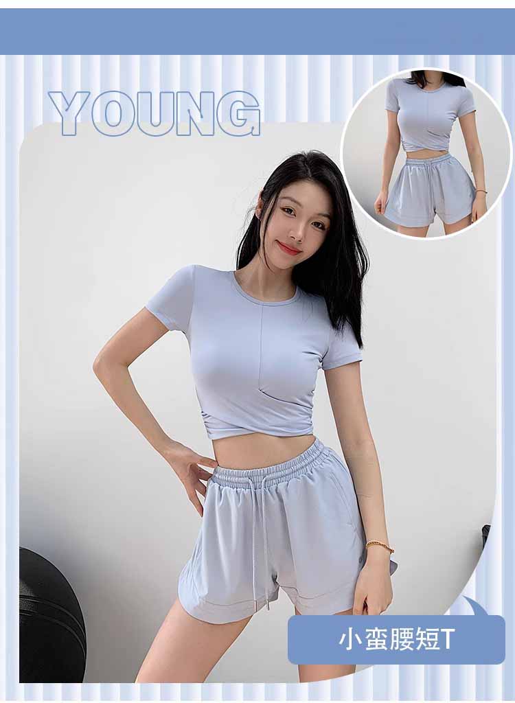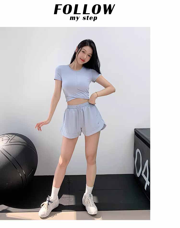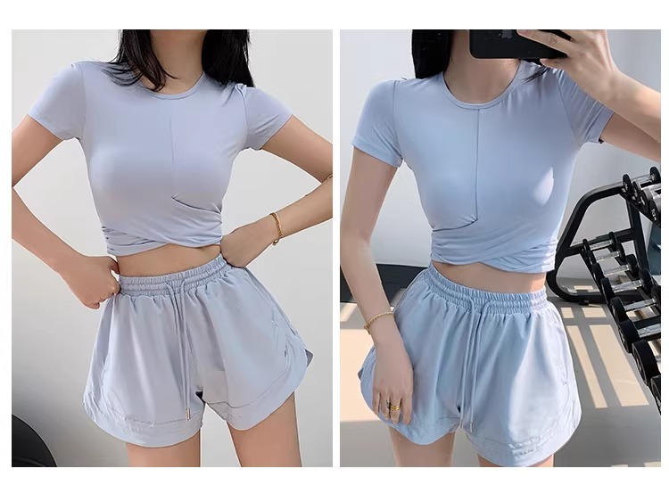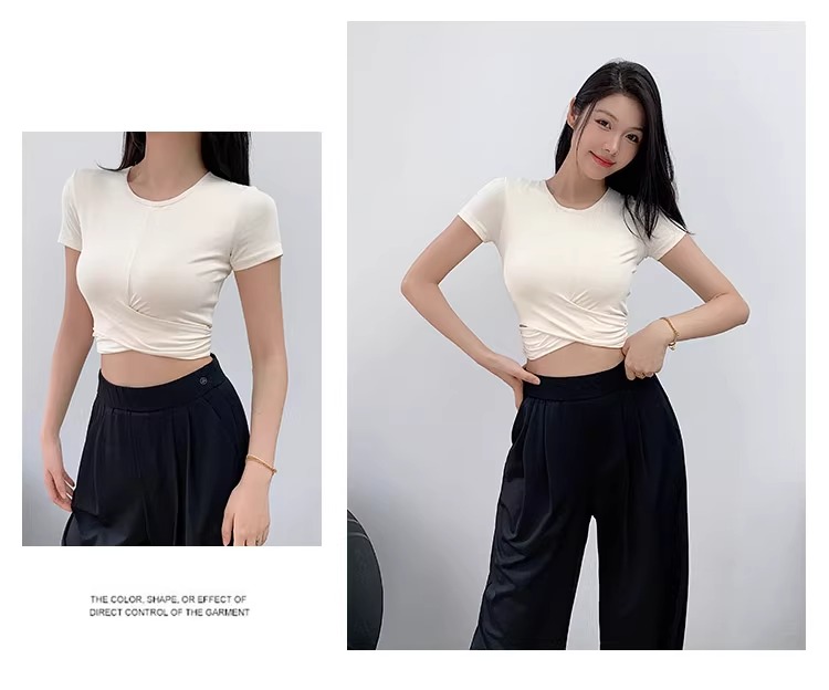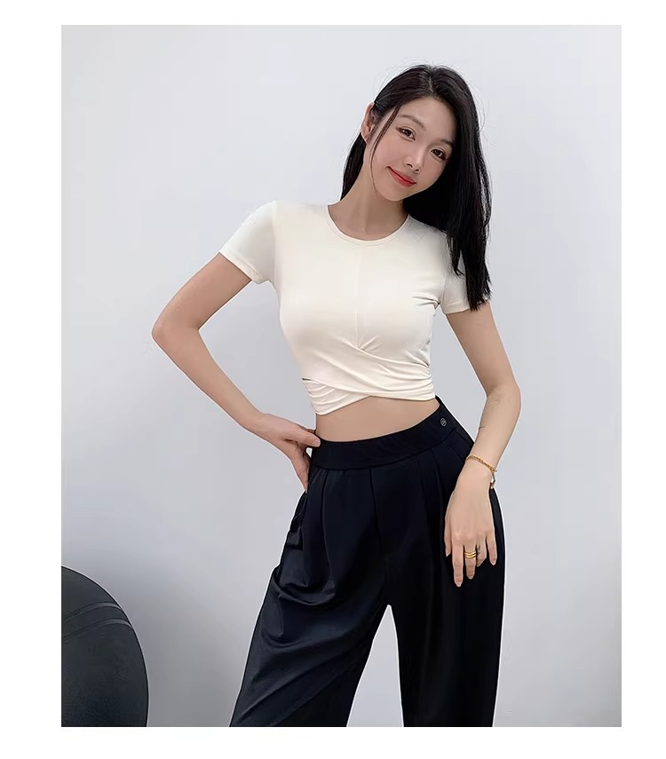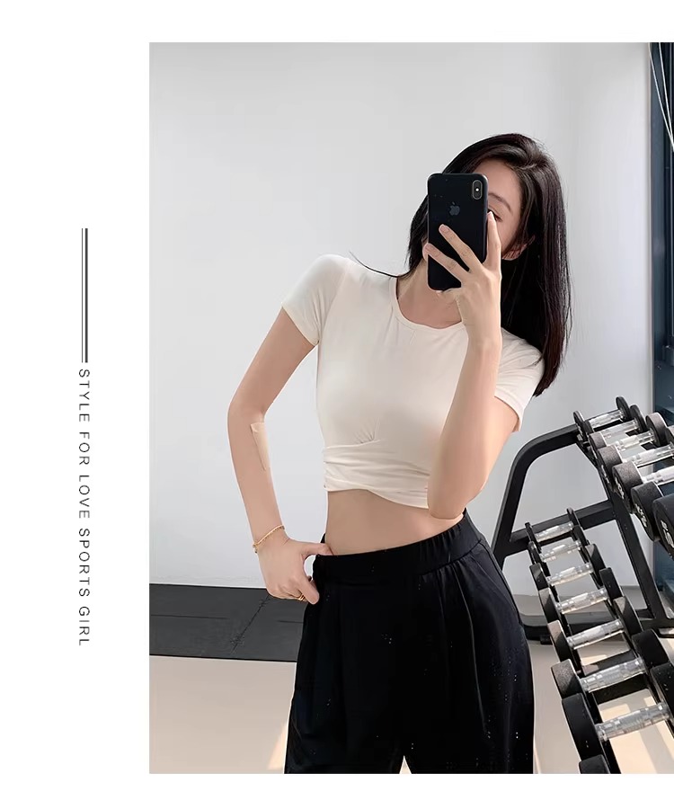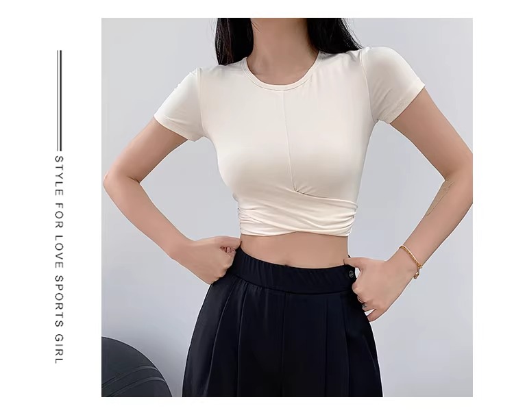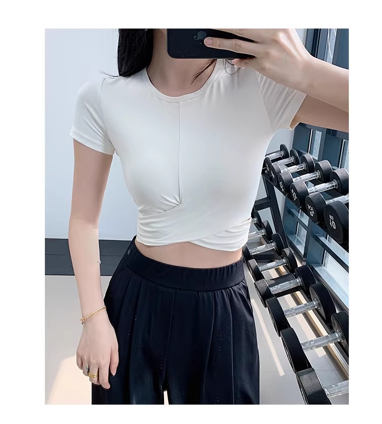 【限时秒】YOGACODE【火树银花系列】交叉褶皱瑜伽服上衣高级感修身显瘦短款运动t恤DWY115418