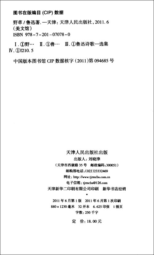 《野草》所收散文诗23篇(内含打油诗一首和短剧一个),最初陆续发表于1924年12月至1926年1月的《语丝》周刊,署名鲁迅。《题辞》最初发表于1927年7月2日出版的《语丝》第138期,署名鲁迅。