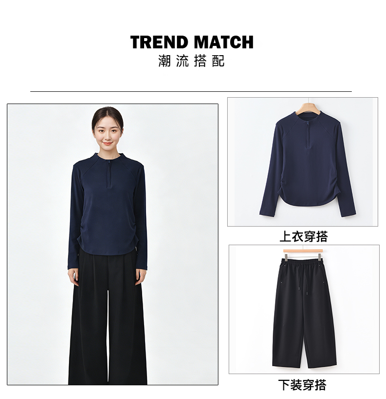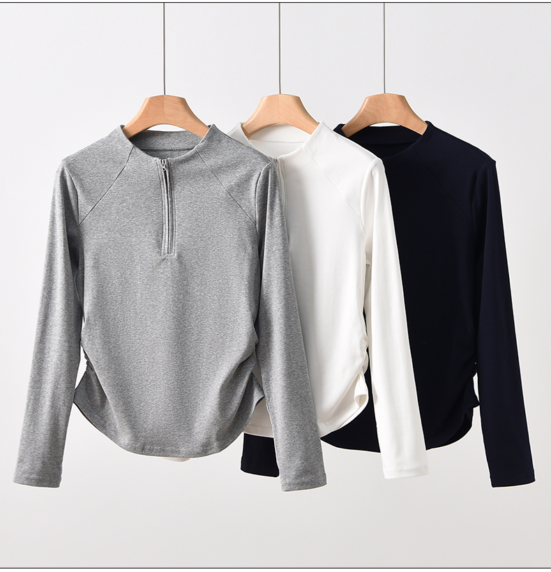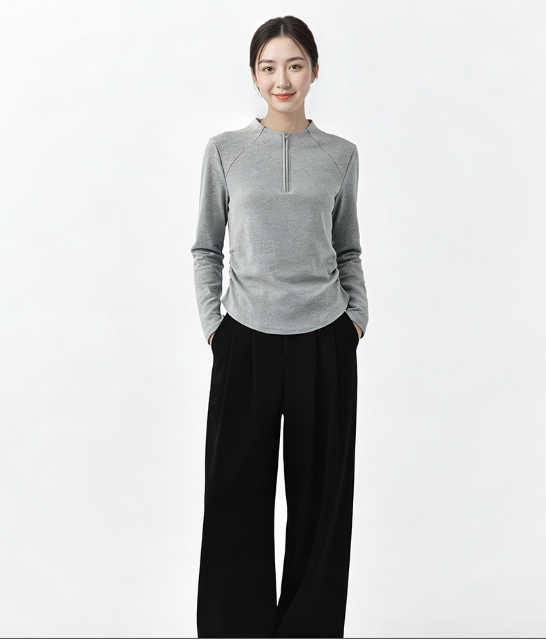 半拉链抽褶打底衫C06C61
