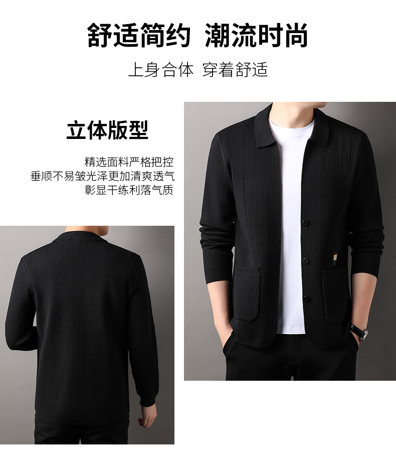 【新款DSK】大依优型大码男装休闲开衫毛衣拉链翻领针织衫夹克外套