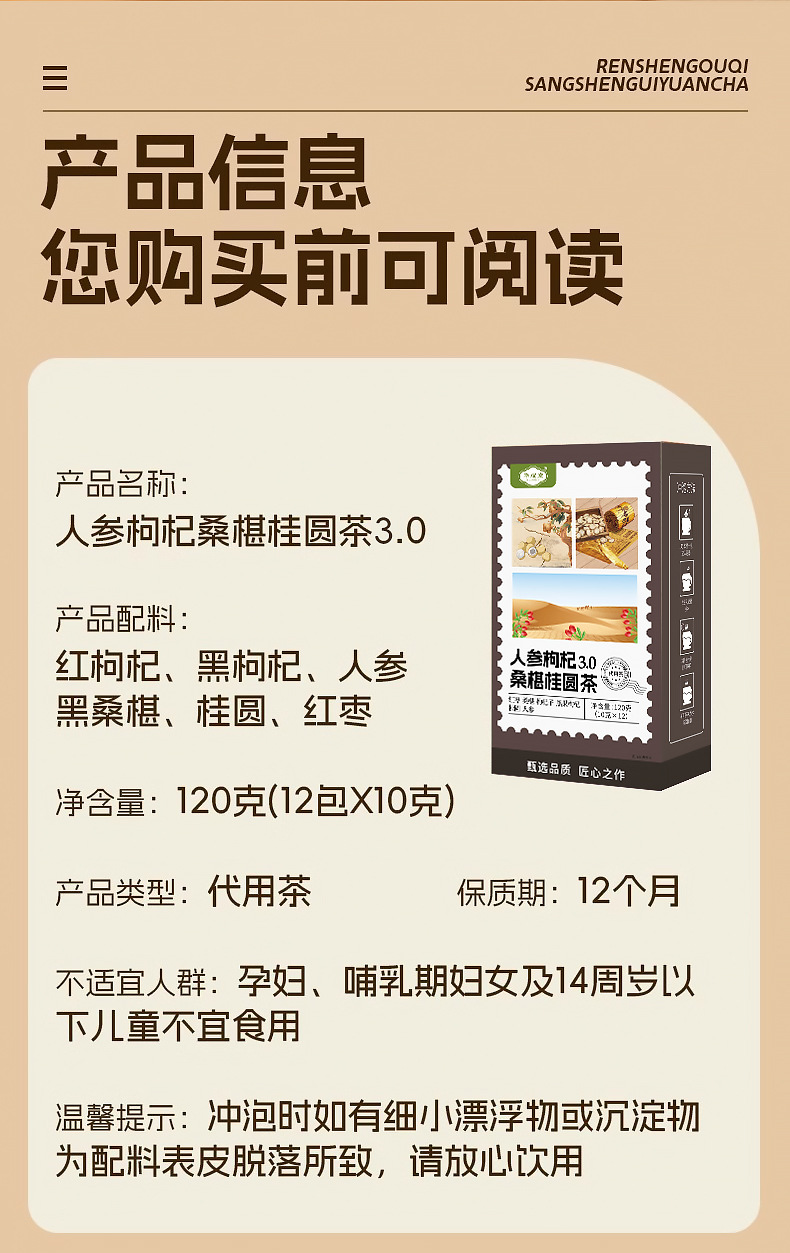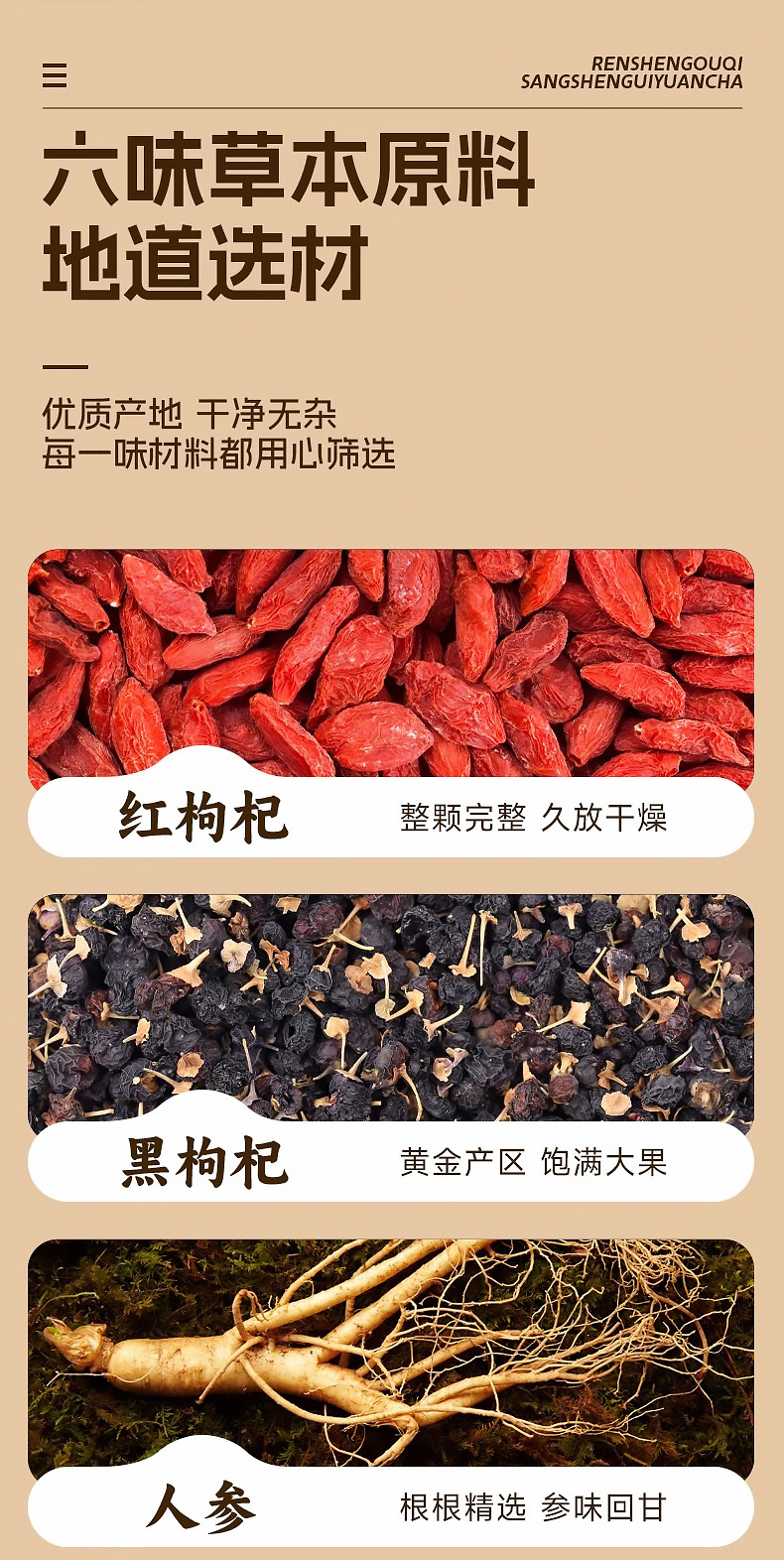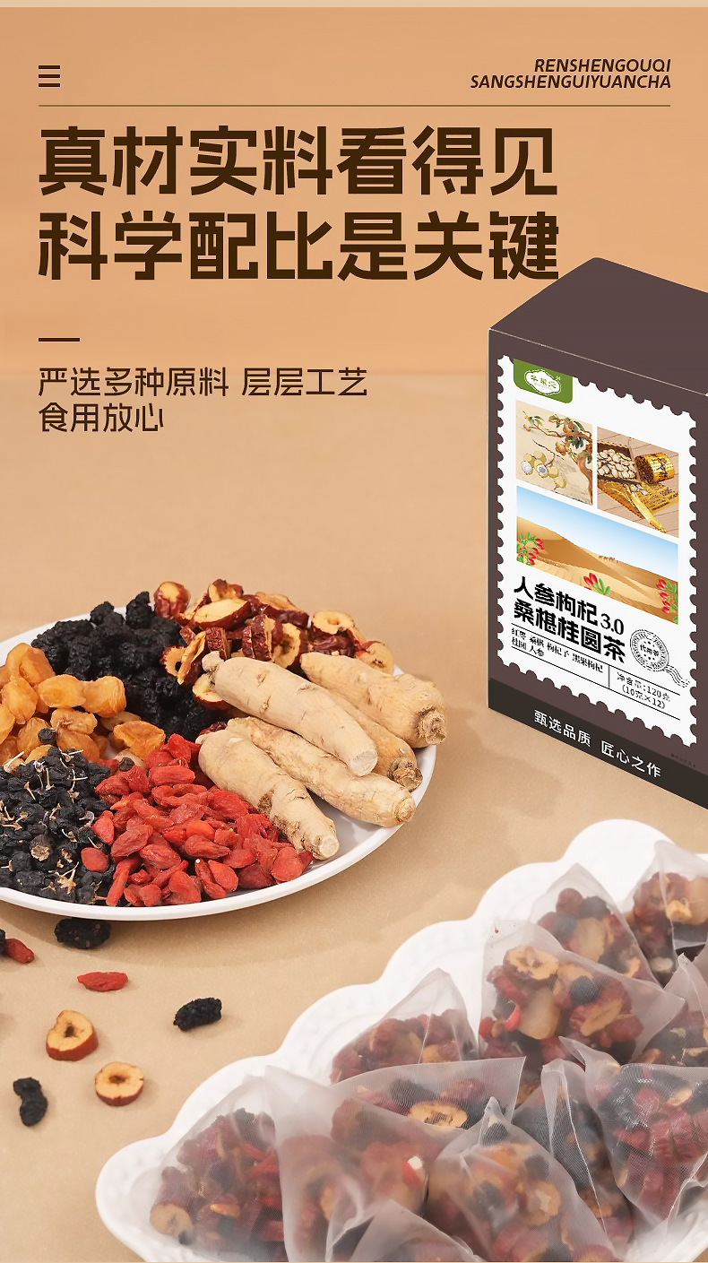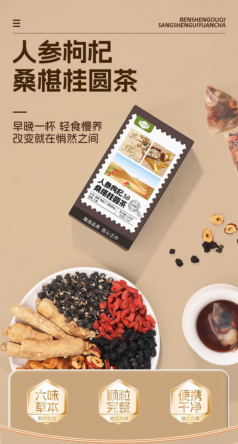 人参枸杞桑葚桂圆茶 人参五宝茶人参十宝茶黑枸杞