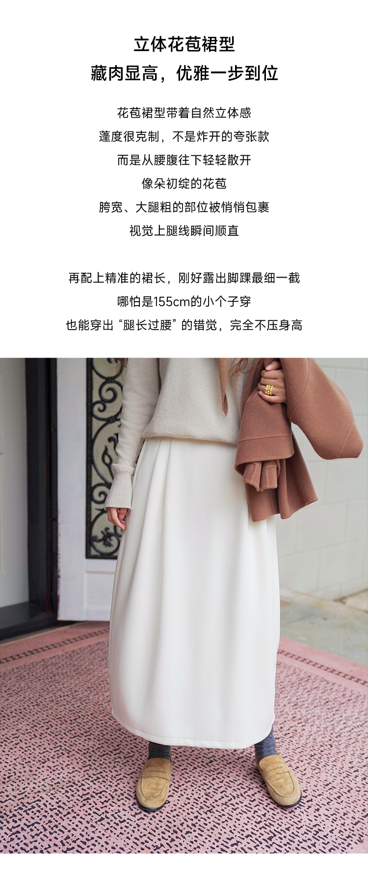 中高松紧腰显瘦褶裥花苞半裙FCF3SKT132