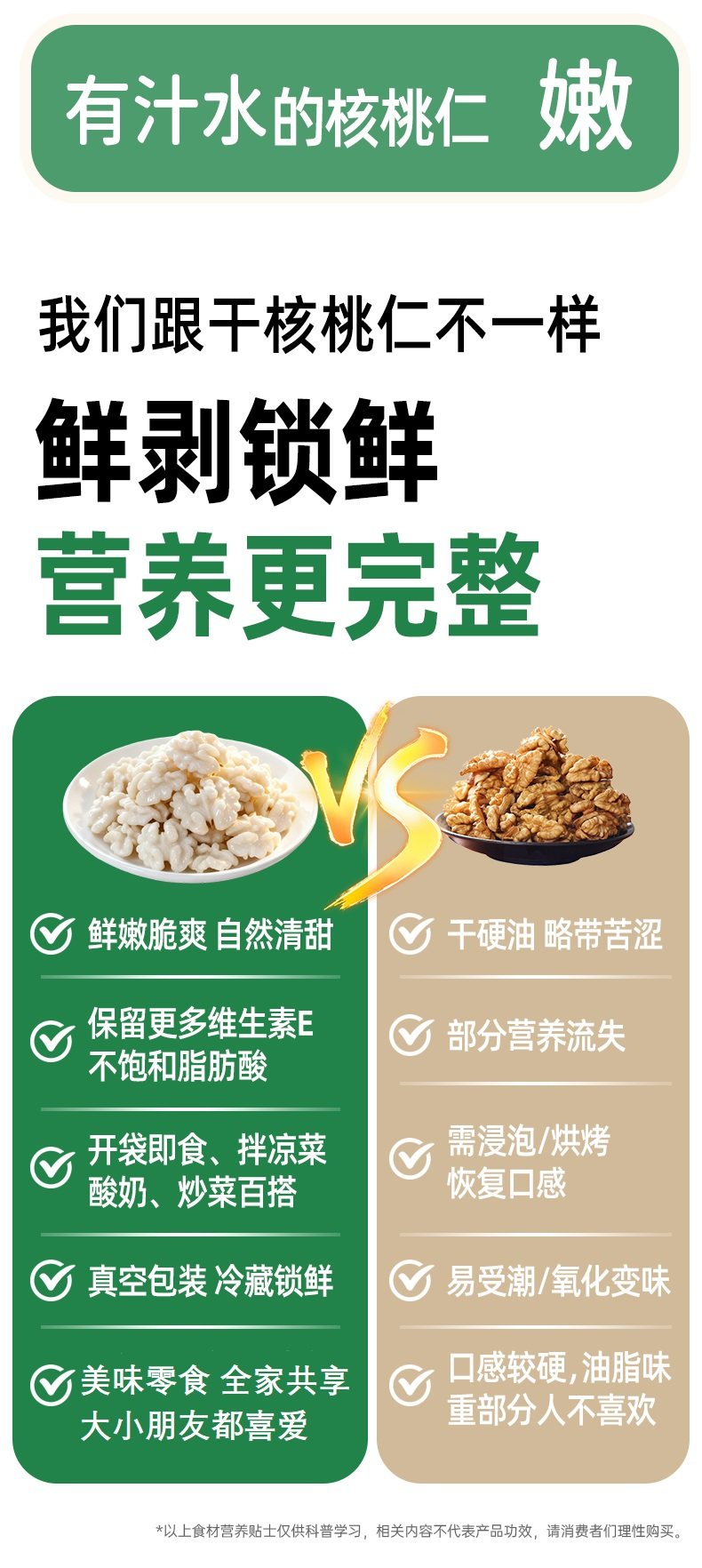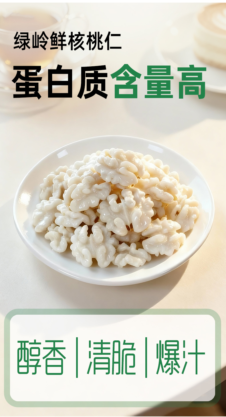 【斌哥优选】绿岭新鲜核桃仁100g*3袋。鲜嫩脆甜,像水果一样清脆,既有水果的口感,又有坚果的营养。顺丰包邮