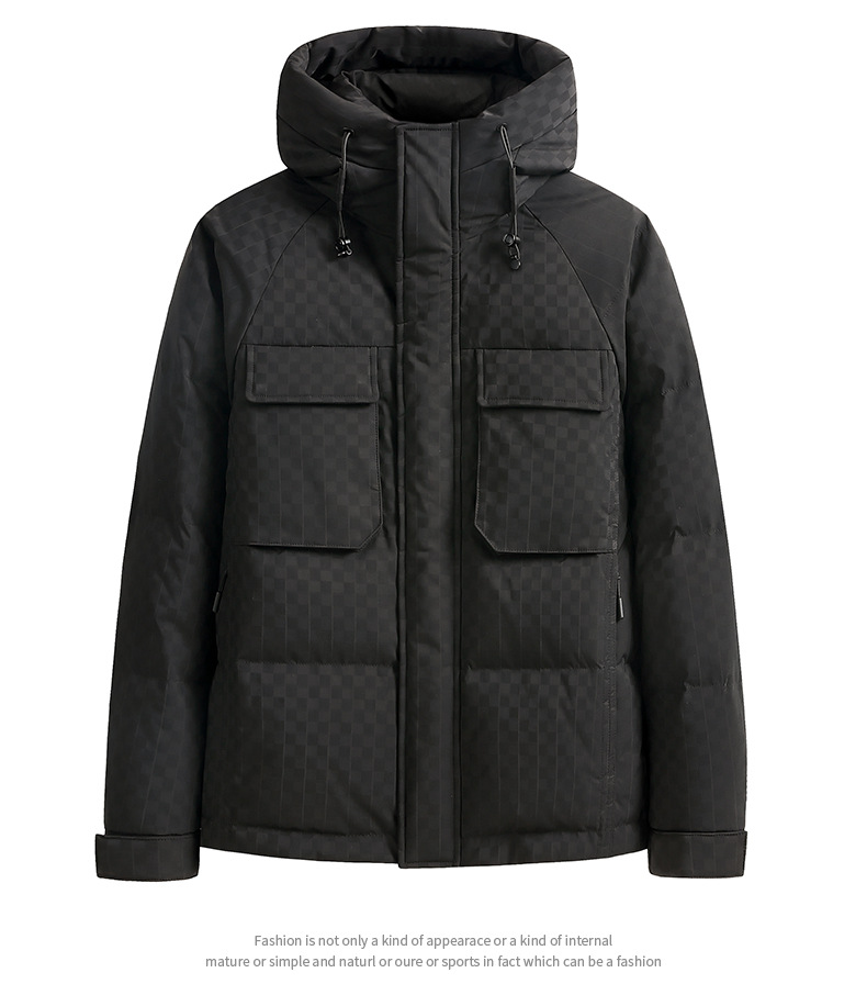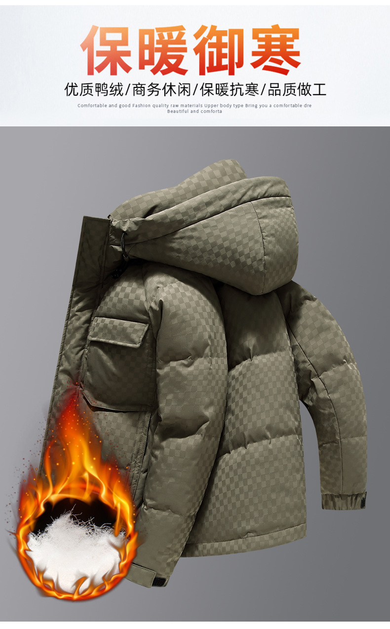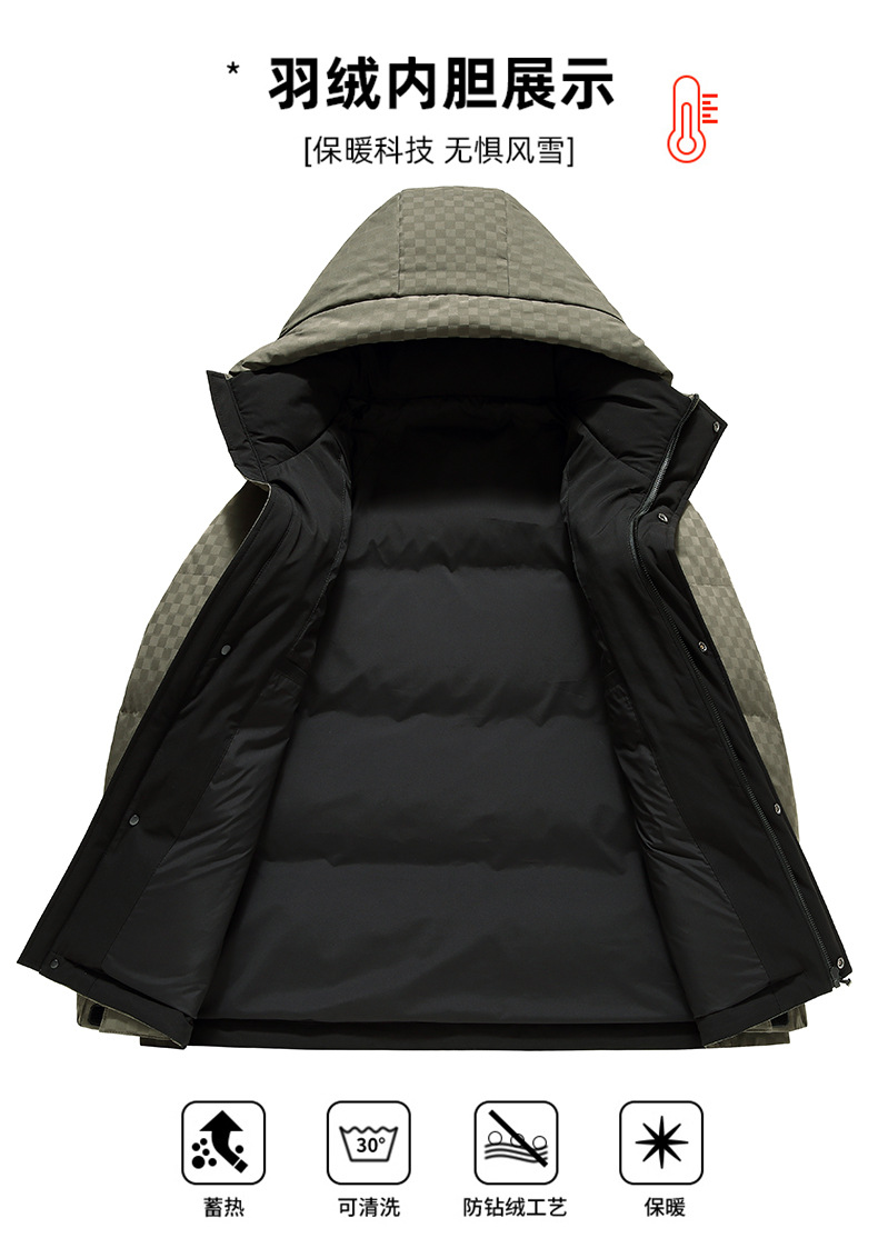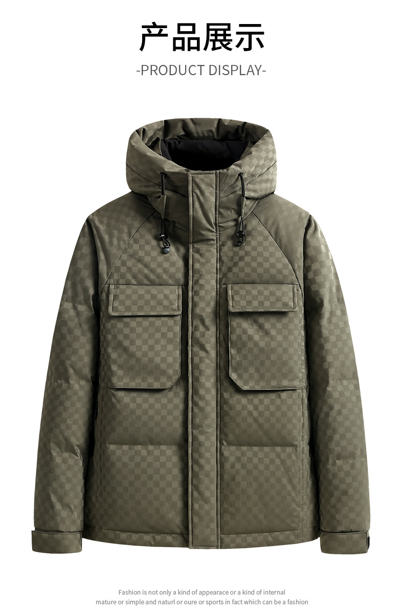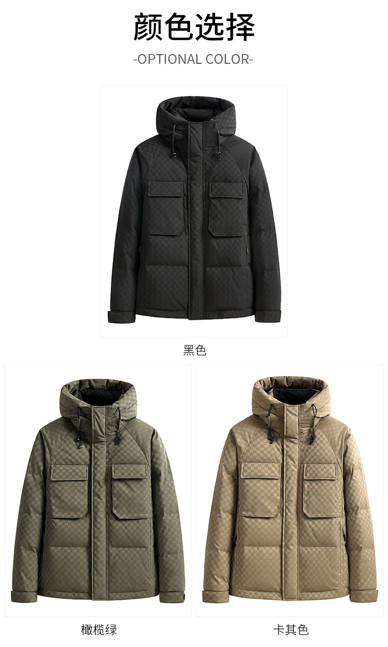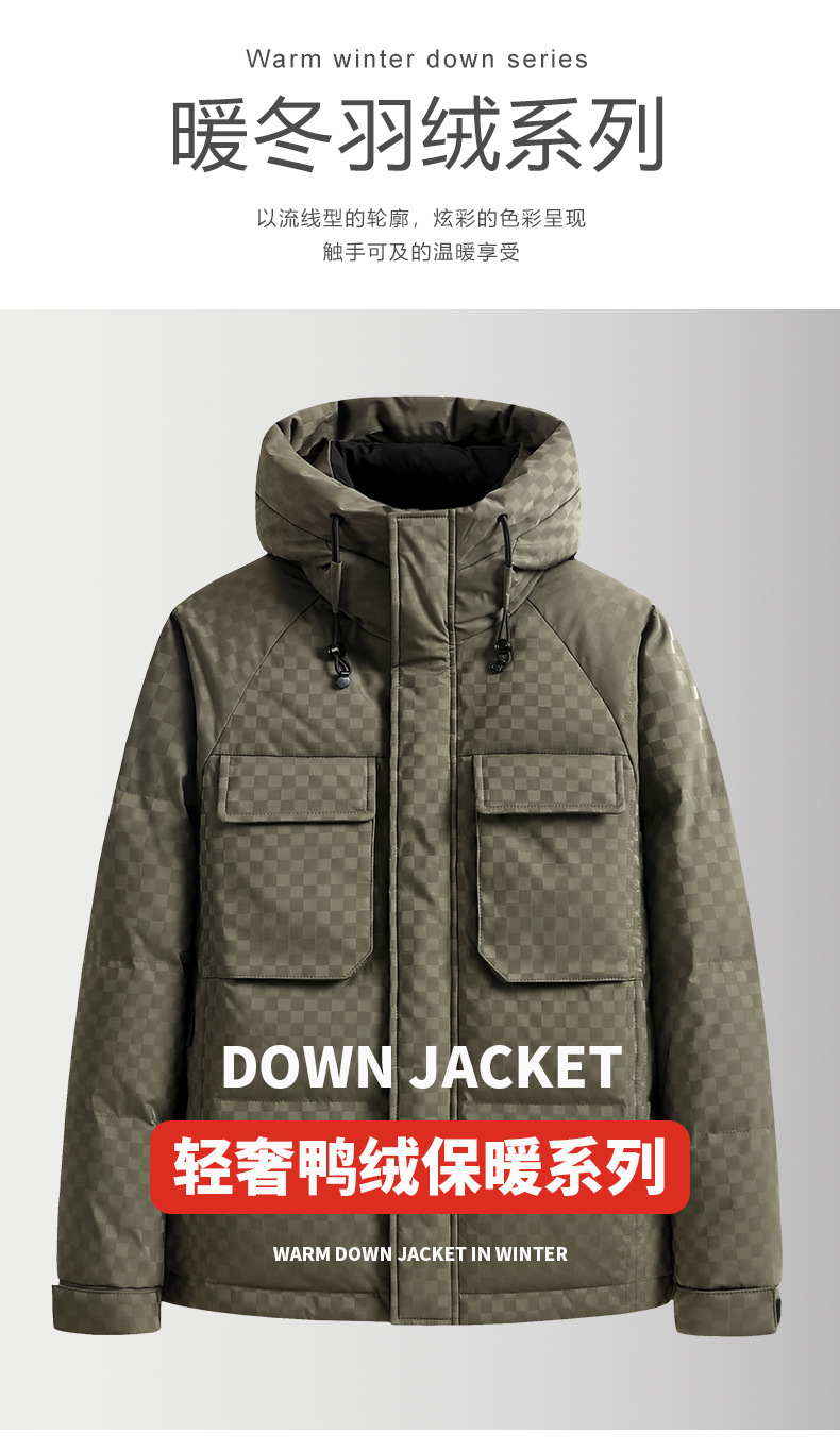 红览轻奢高品男士冬连帽羽绒服加厚保暖工装户外运动格子90白鸭绒外套AL CZLT22873