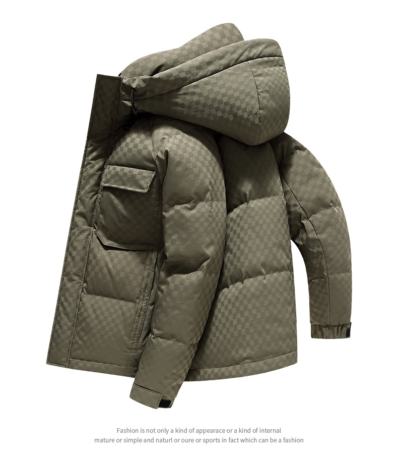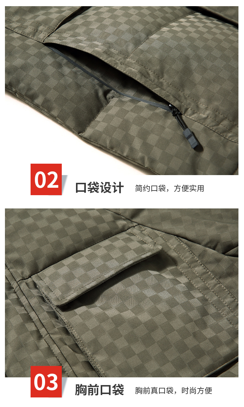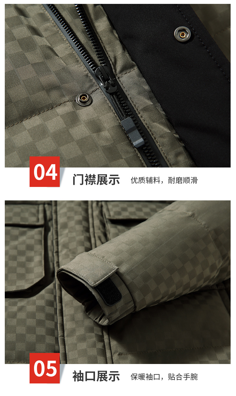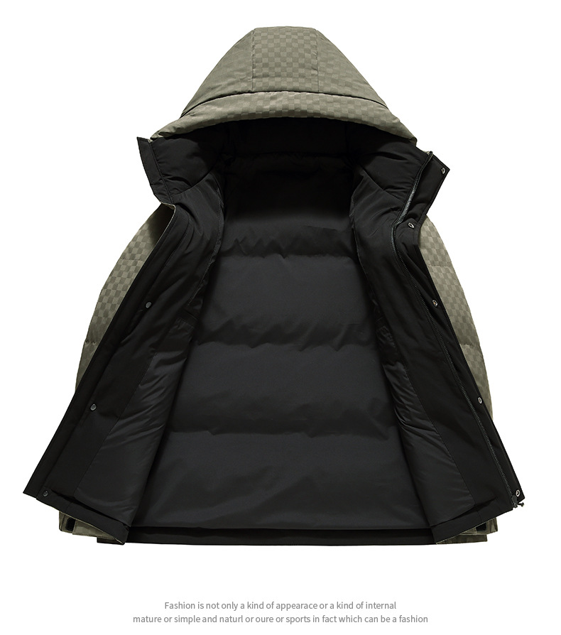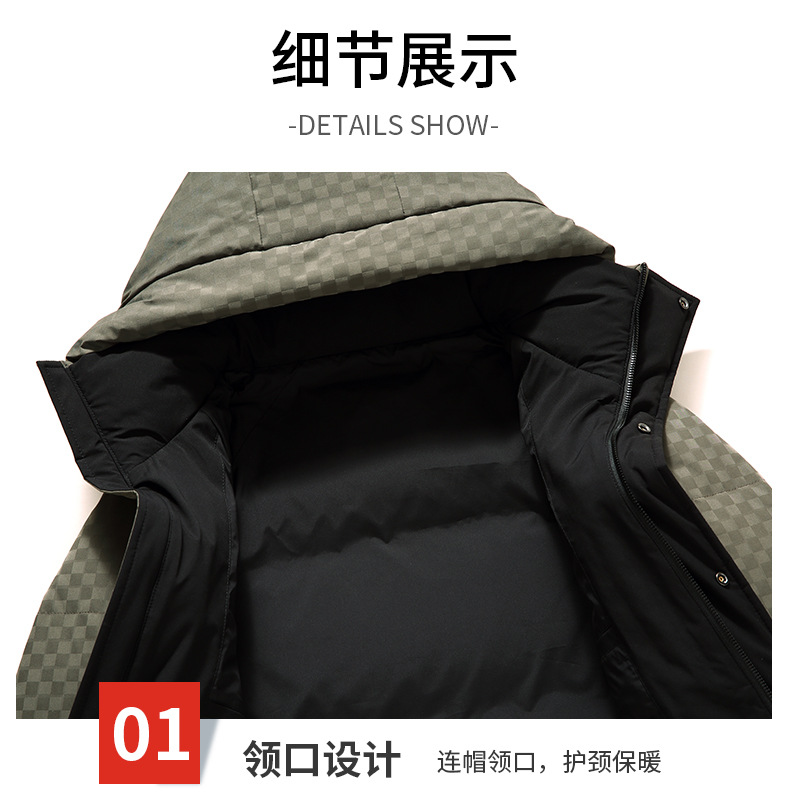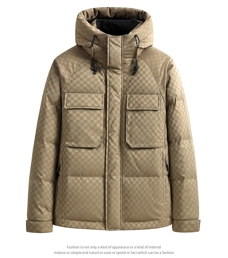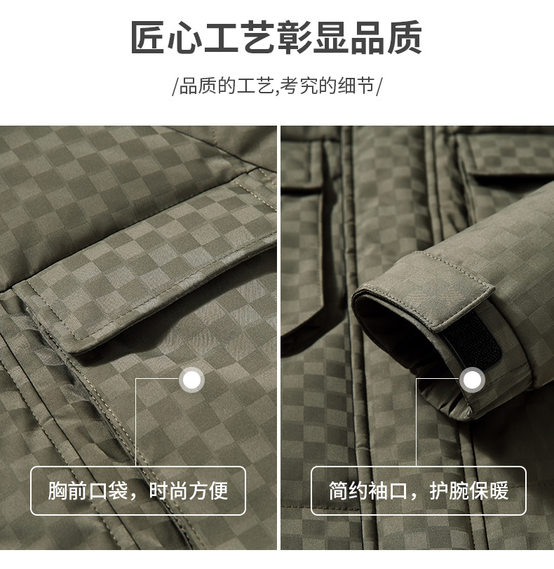 红览轻奢高品男士冬连帽羽绒服加厚保暖工装户外运动格子90白鸭绒外套AL CZLT22873