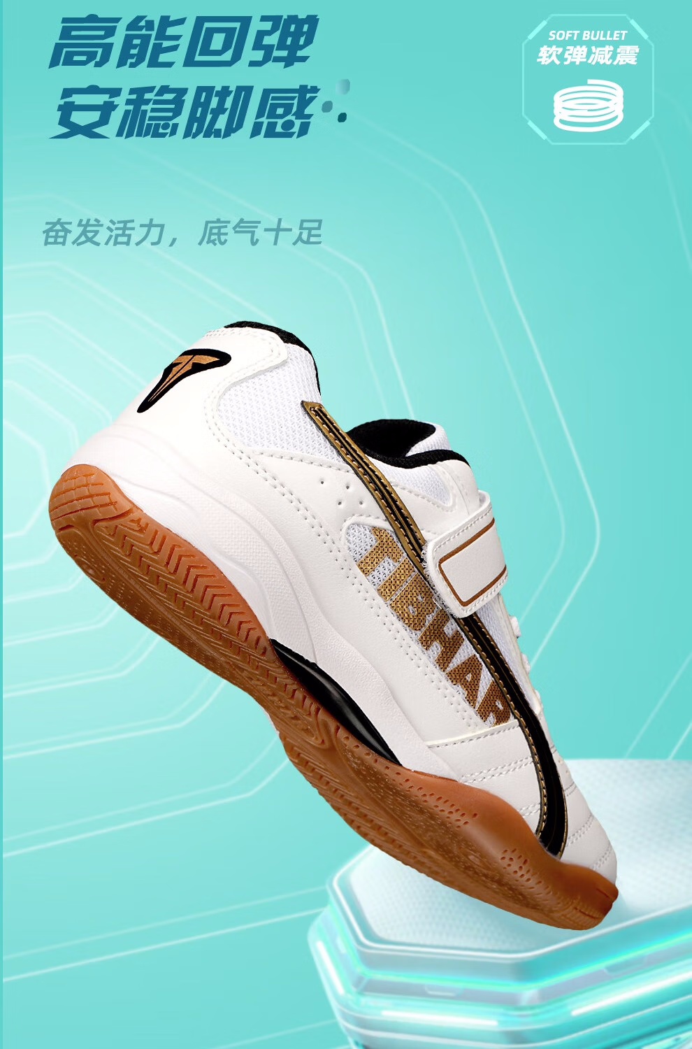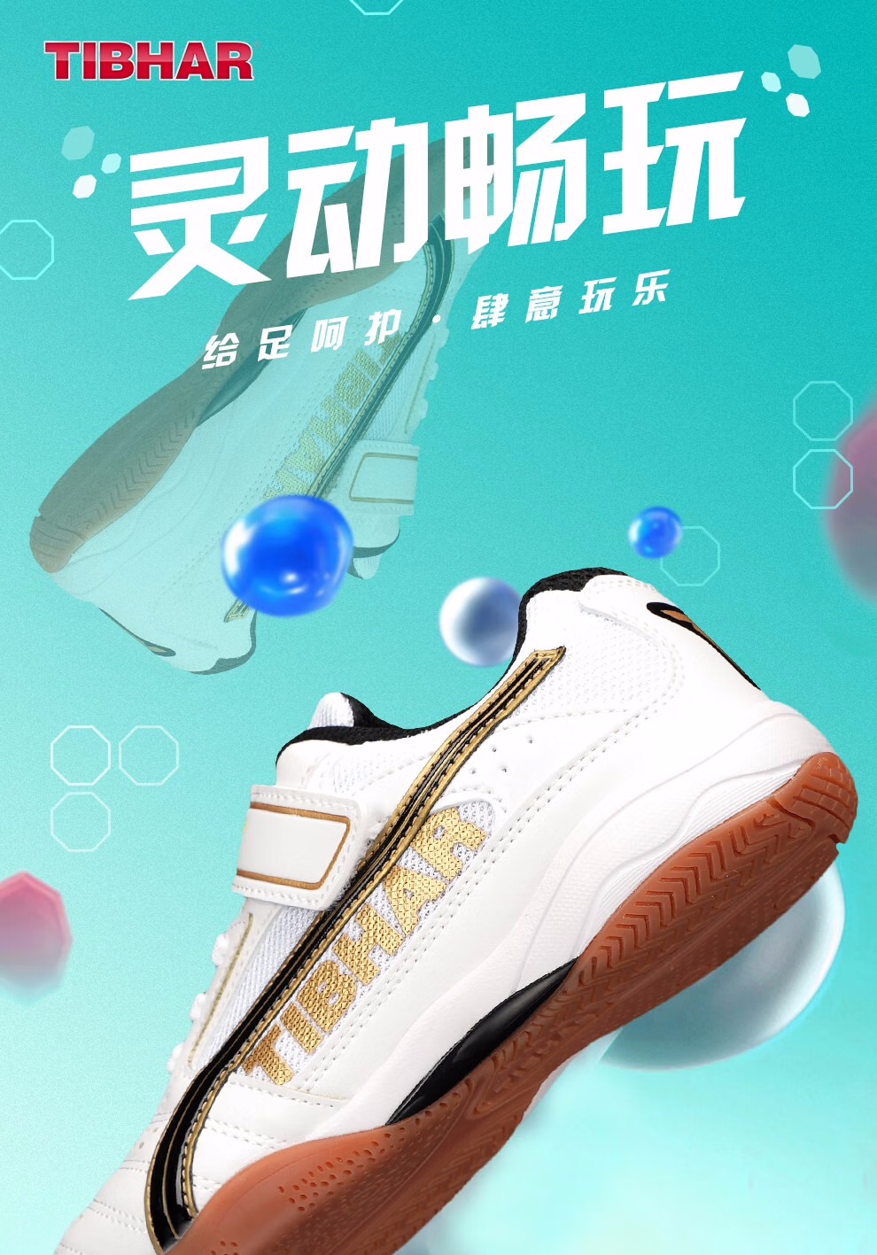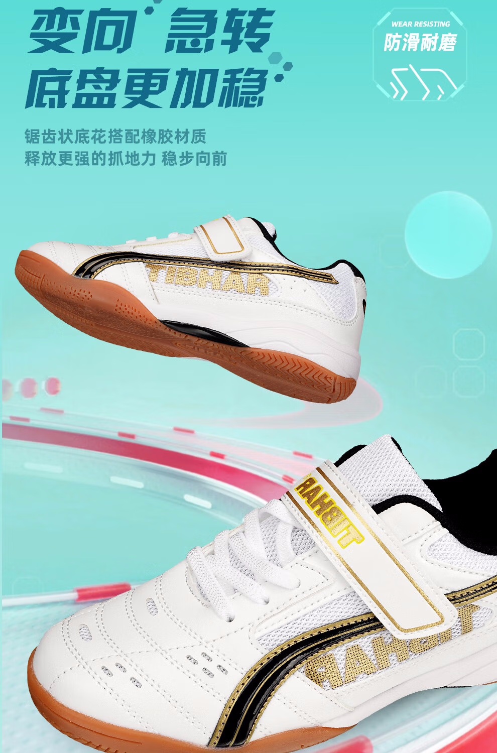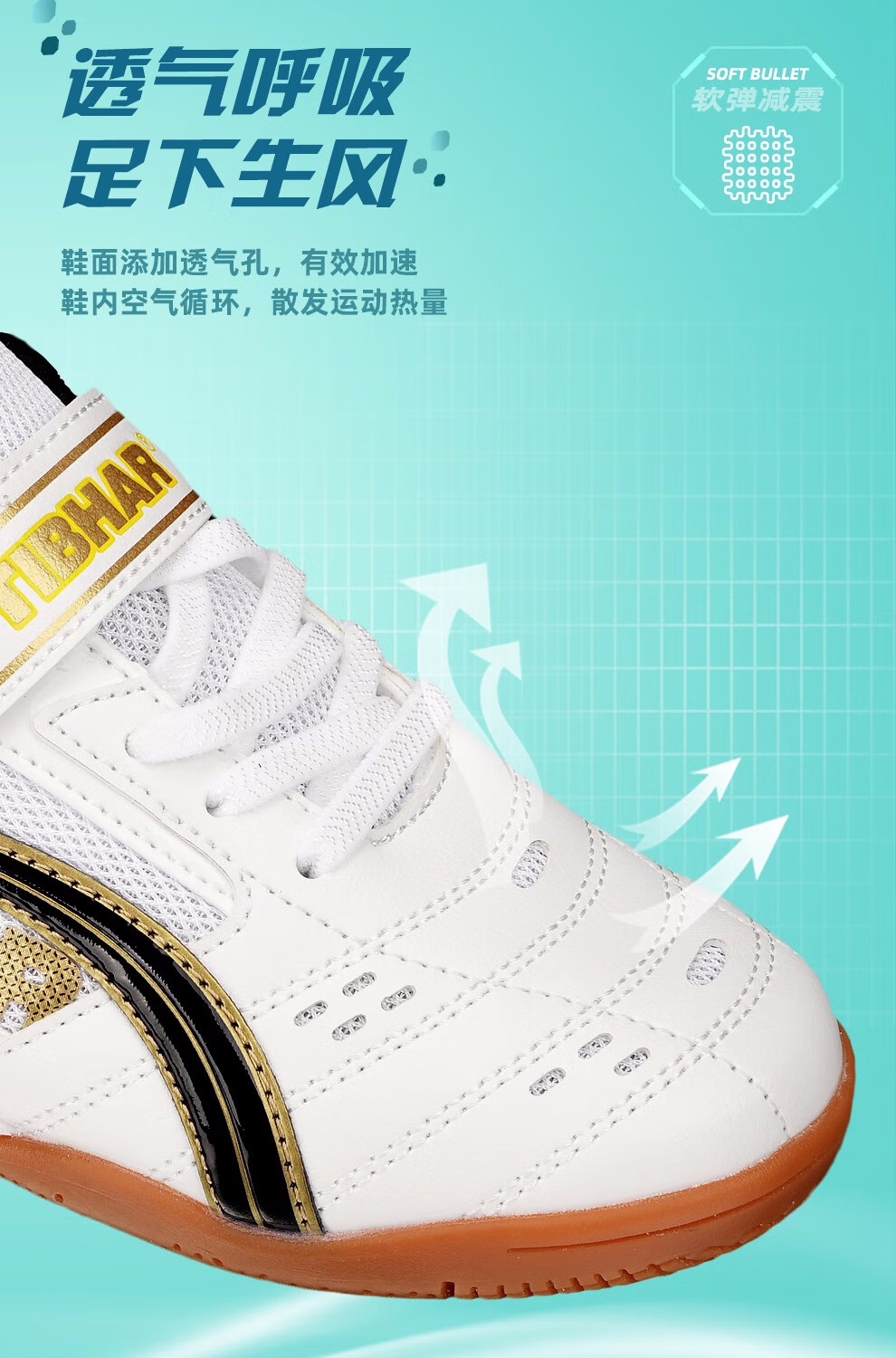 Tibhar挺拔乒乓球鞋飞翔01920儿童乒乓球鞋白金色耐磨透气防滑保护
