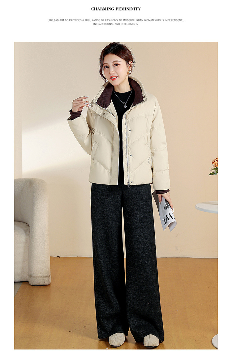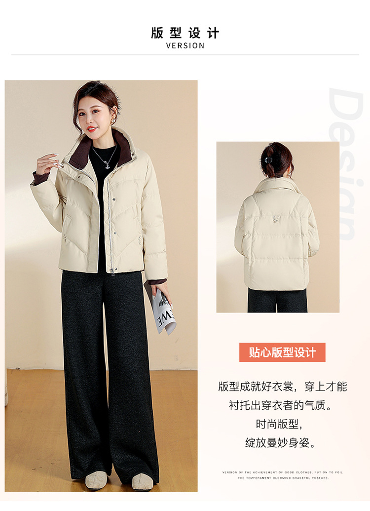 QYM 25D170拼接立领时尚羽绒服休闲洋气显瘦白鸭绒外套 商品图4