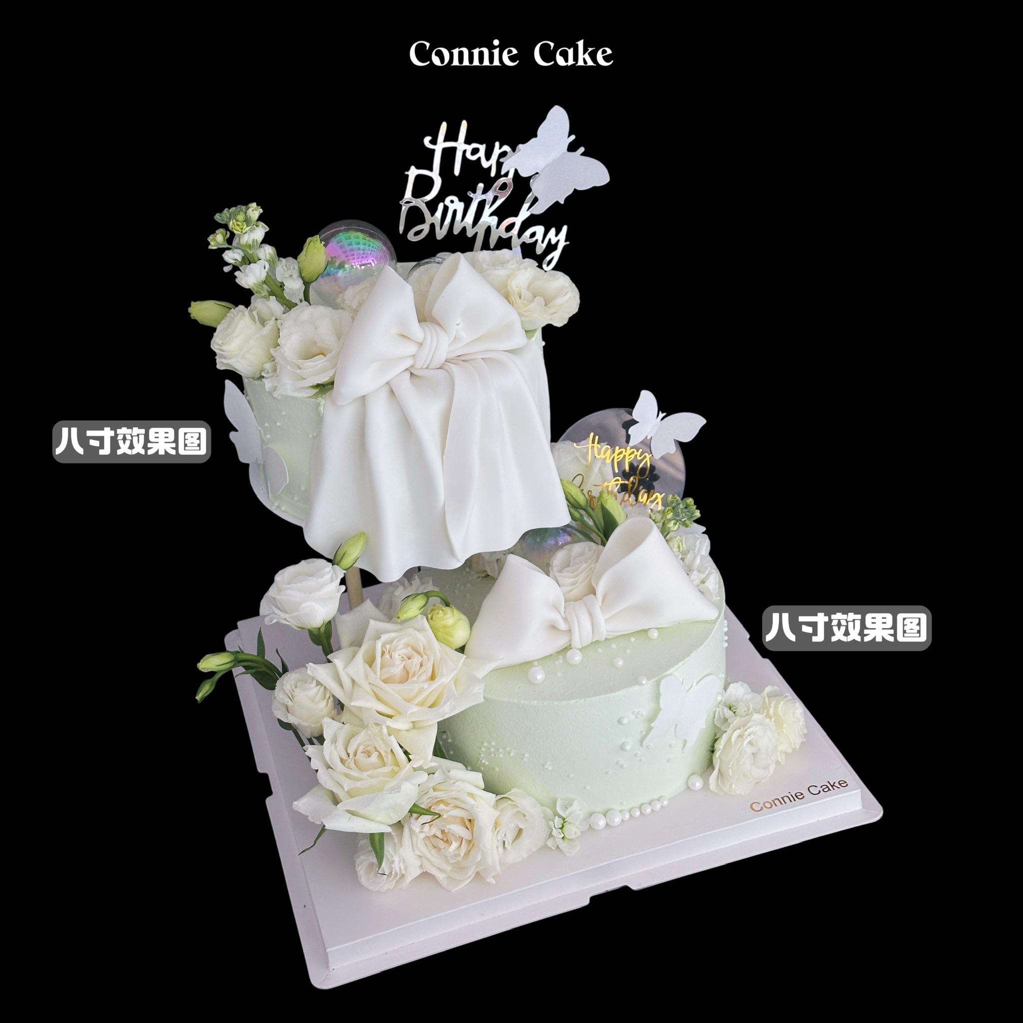 悬浮的绿野诗境:双层错层白玫瑰蛋糕