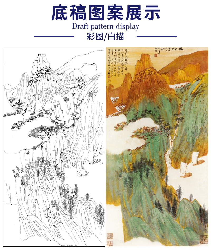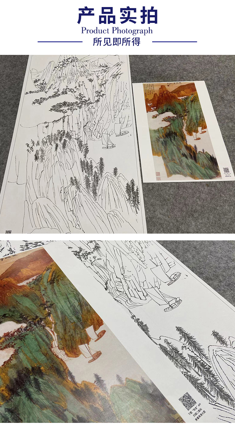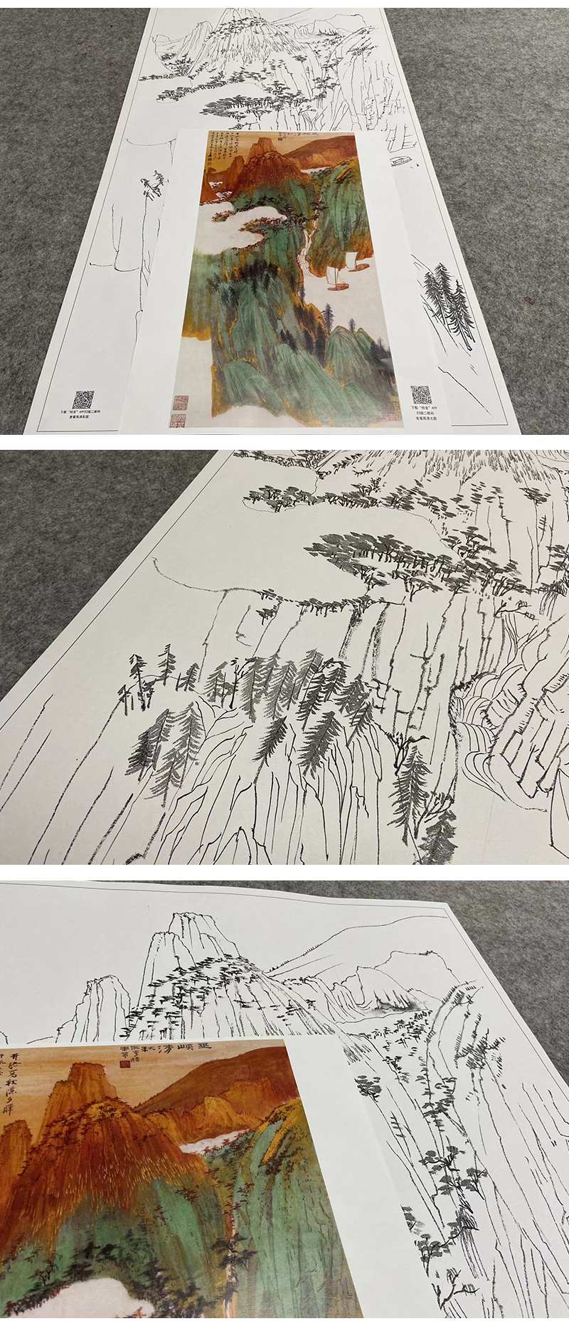 张大千竖幅工笔山水白描底稿-《巫峡清秋》-多种白描尺寸可选-QD20