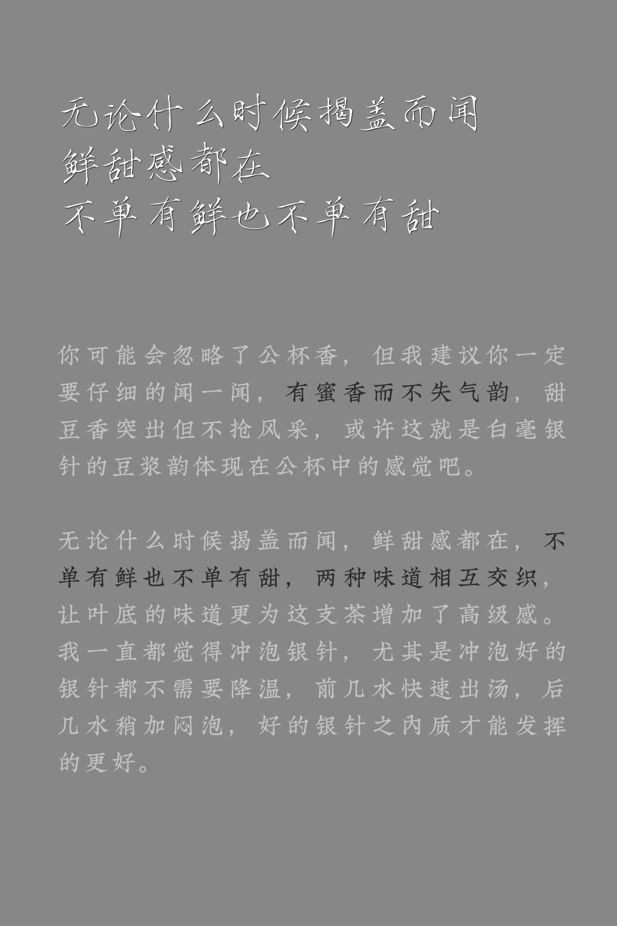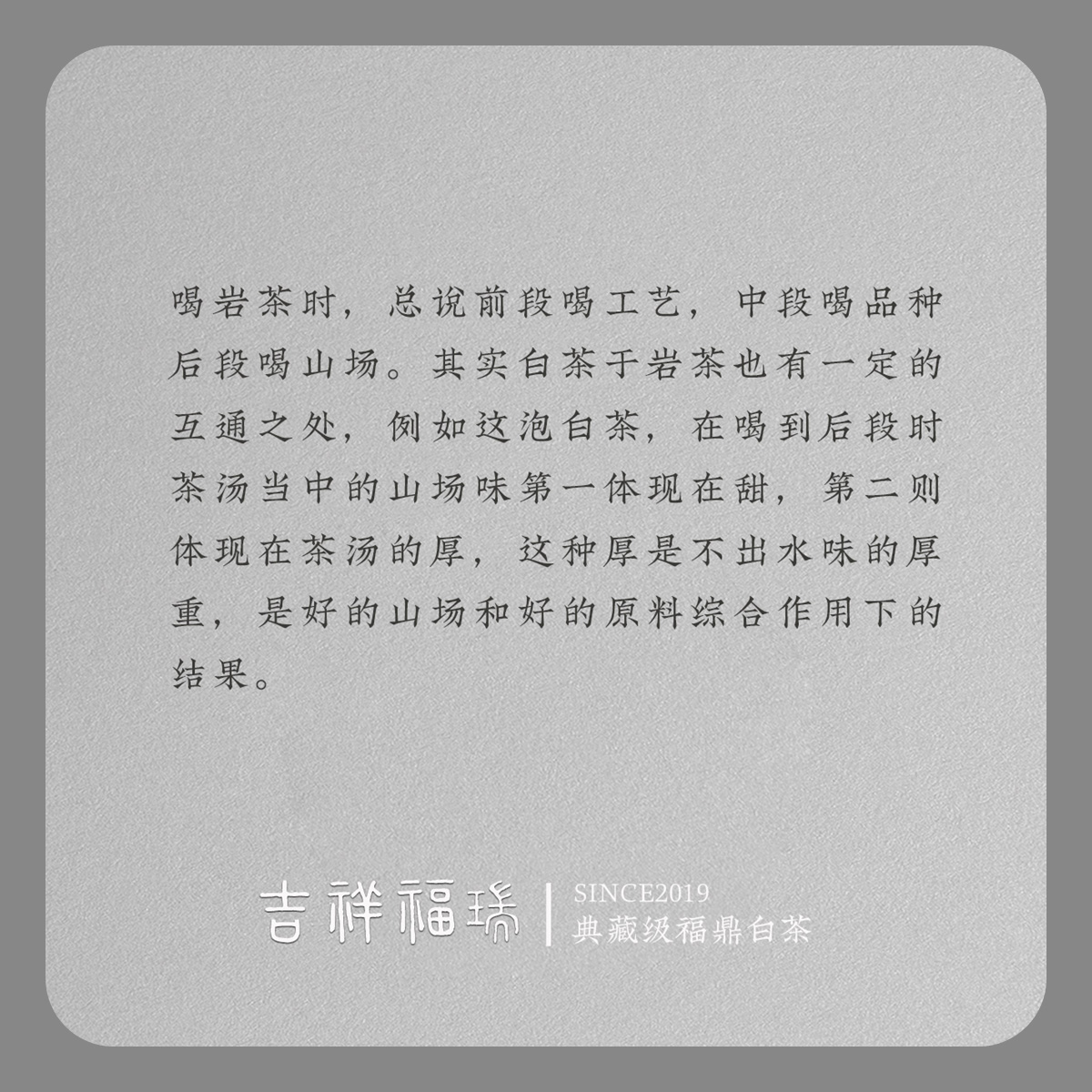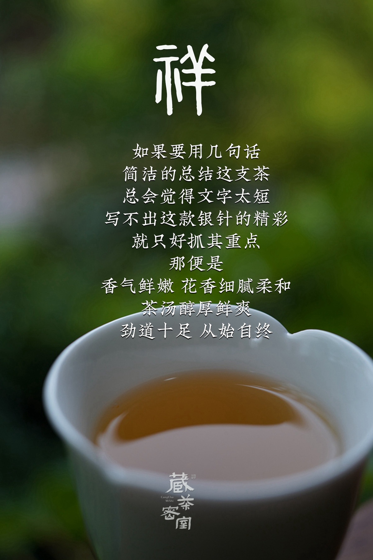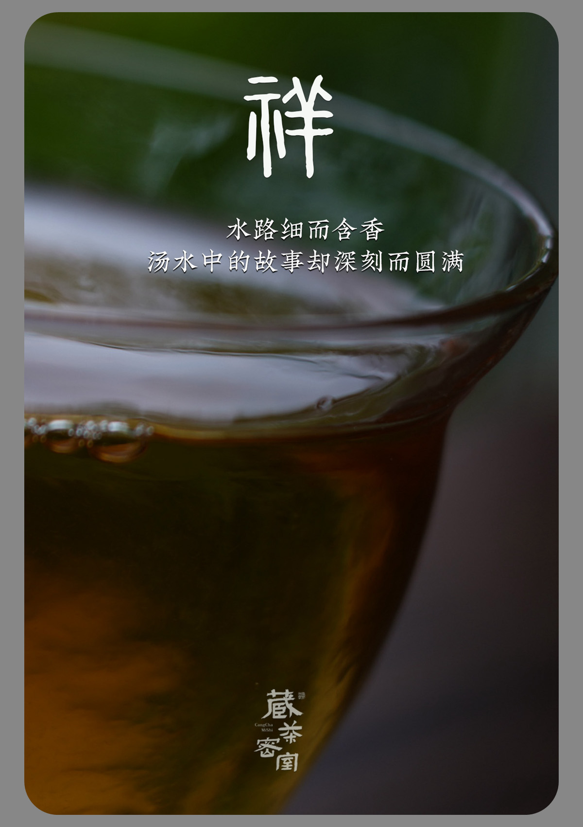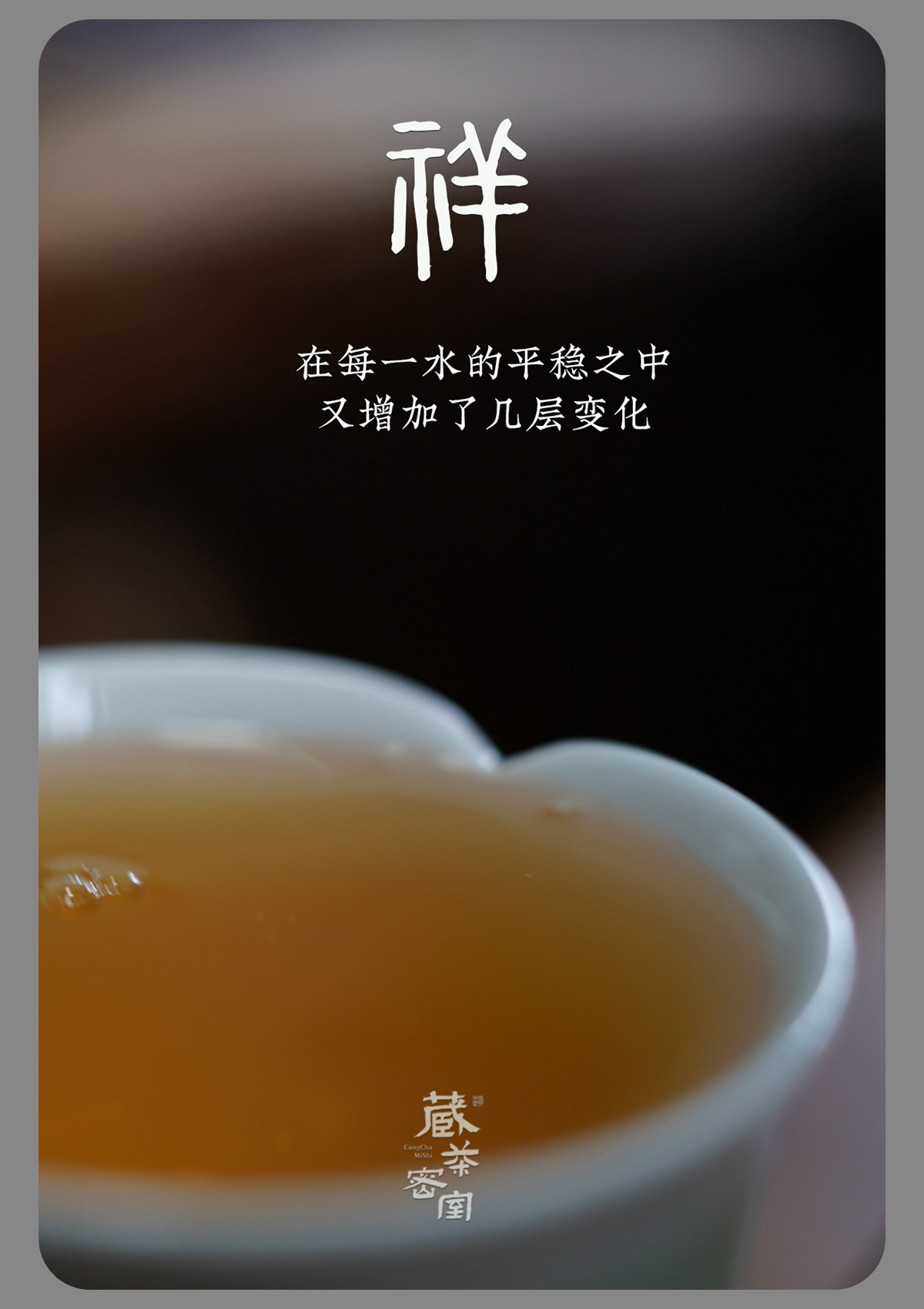 - 2021年,嘉木会创办了“藏茶密室”,开启了全新的藏茶模式,秉持“不将就,不迎合”的理念,通过“选、藏、养、醒”的方式,再度诠释藏茶的深意,沉醉杯汤,苦乐自知,茗透于心,迷之不悔!