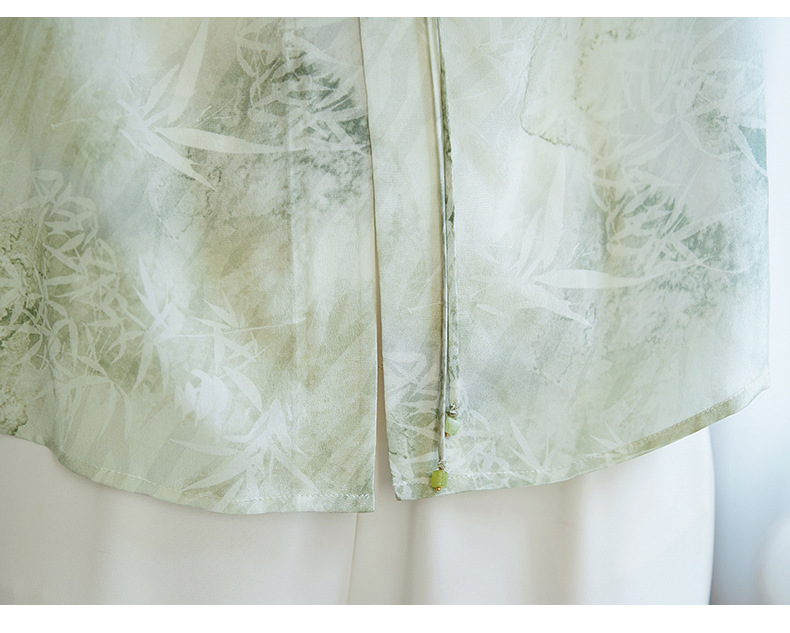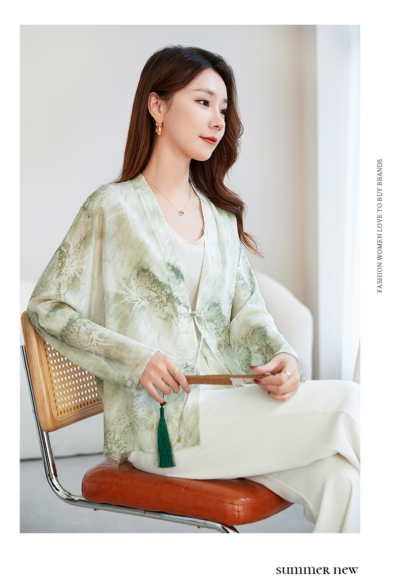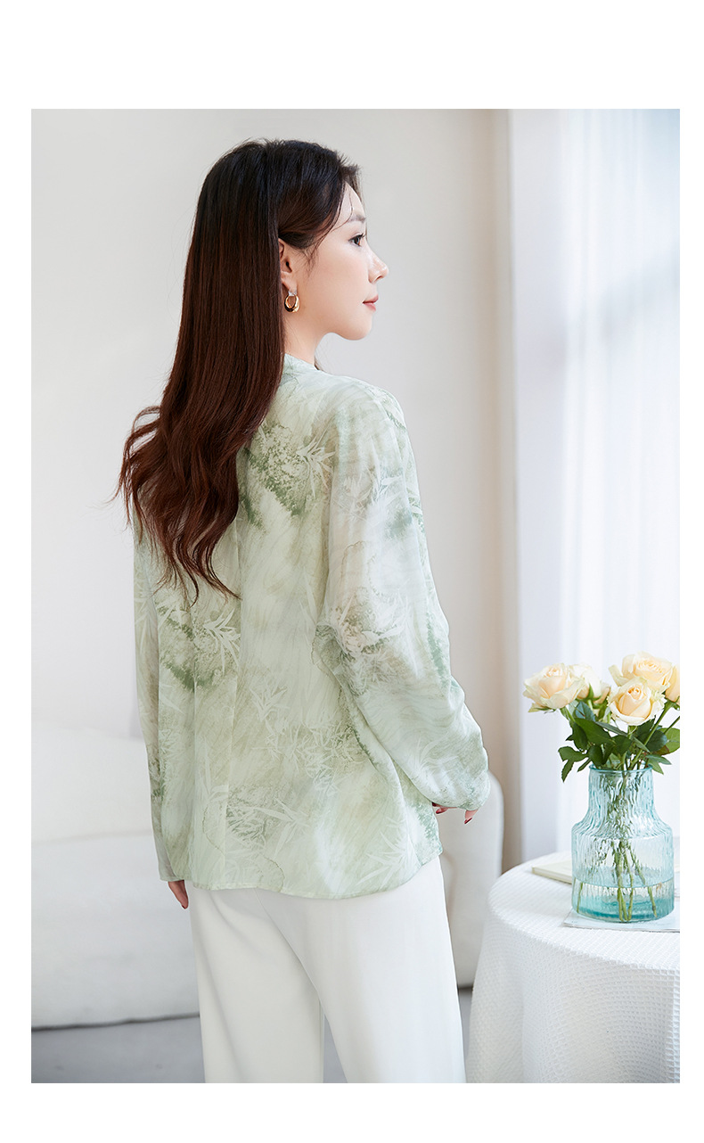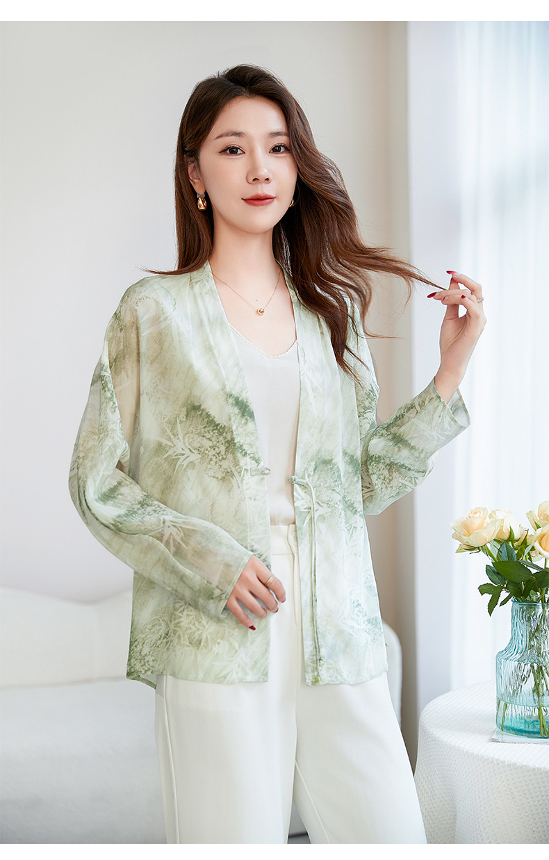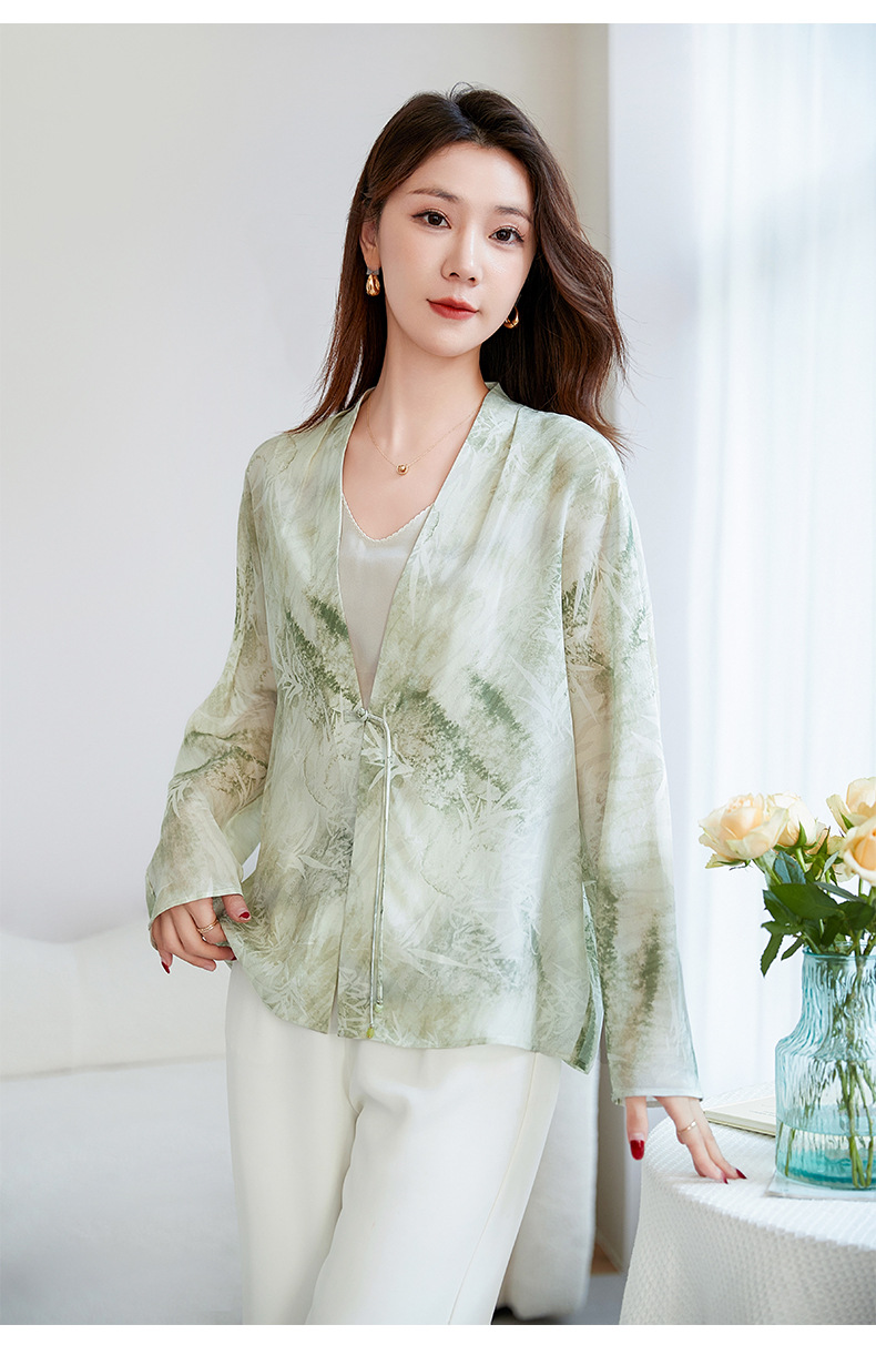 QS-12599600新款春夏印花桑蚕丝V领开衫衬衣女真丝衬衫外套12599600