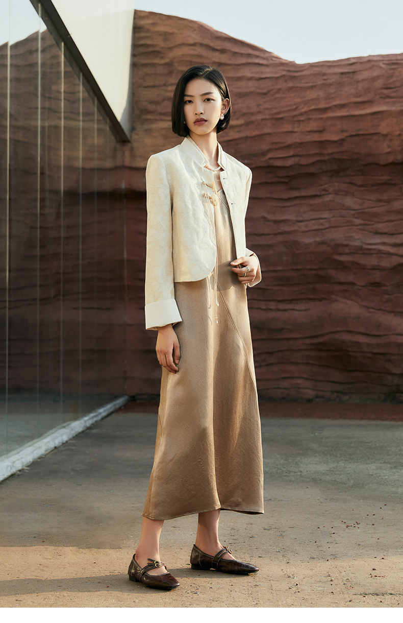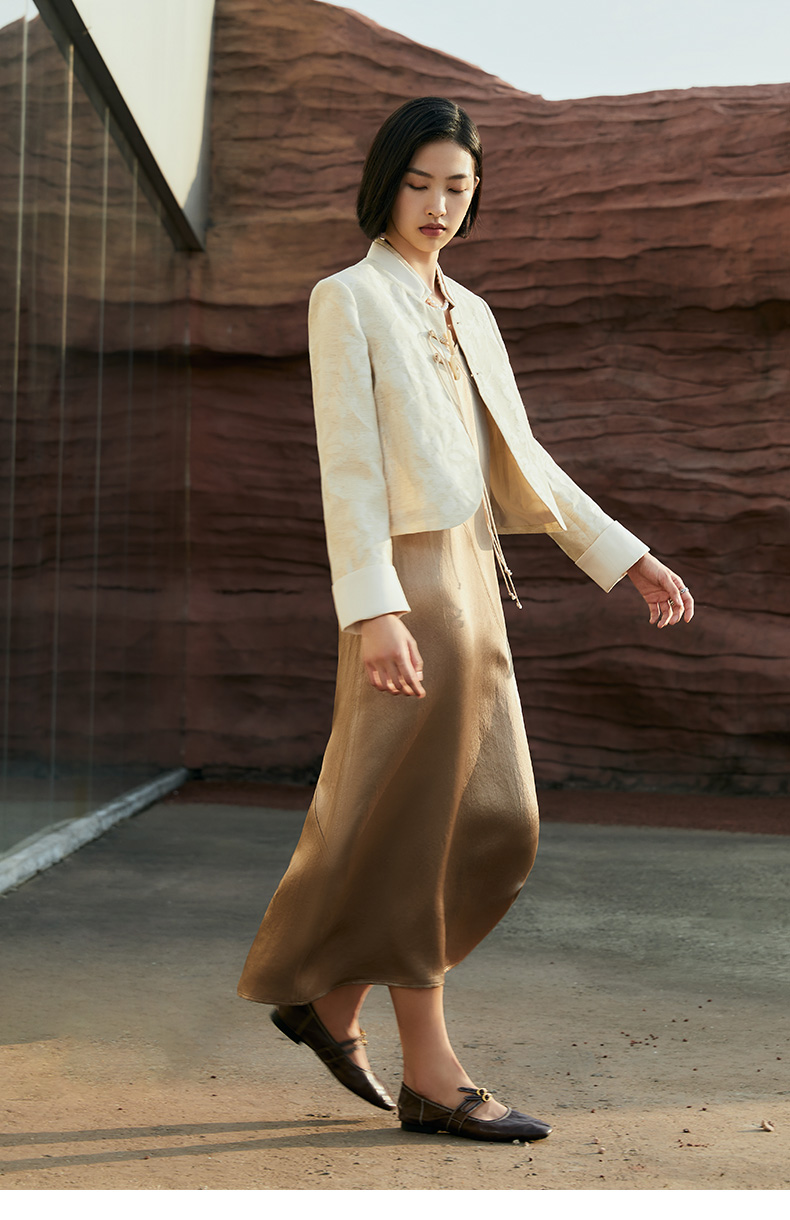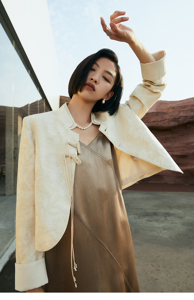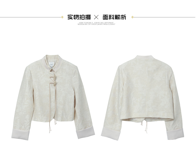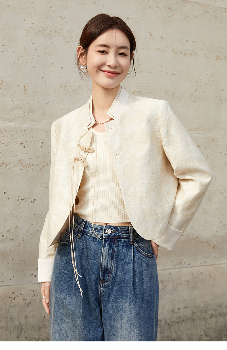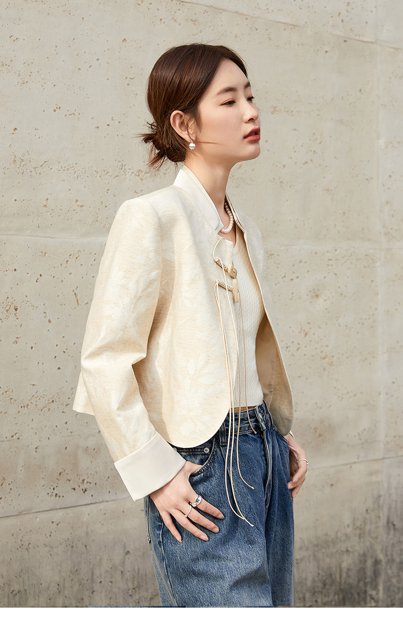 新中式提花短外套女 米色国风盘扣设计感小众上衣 配牛仔裤超绝