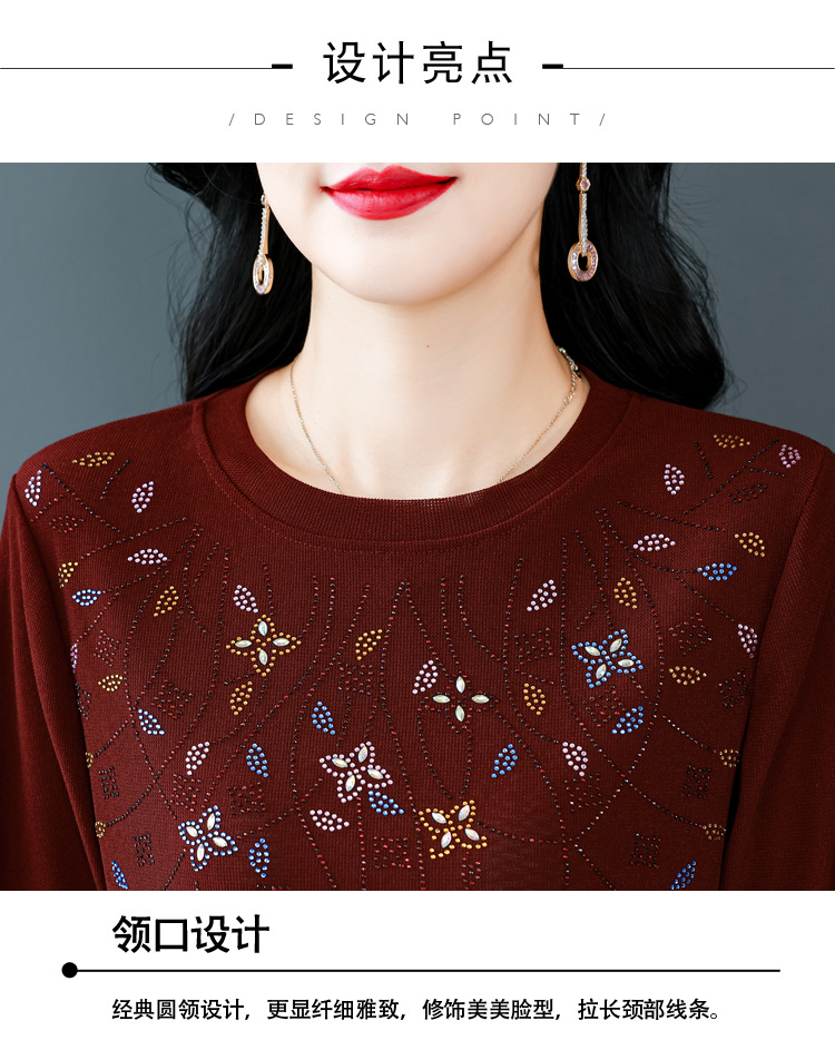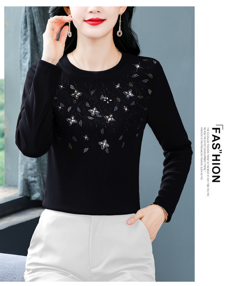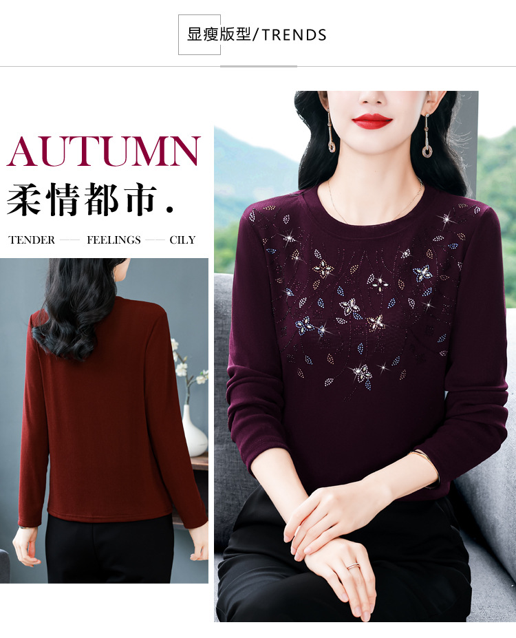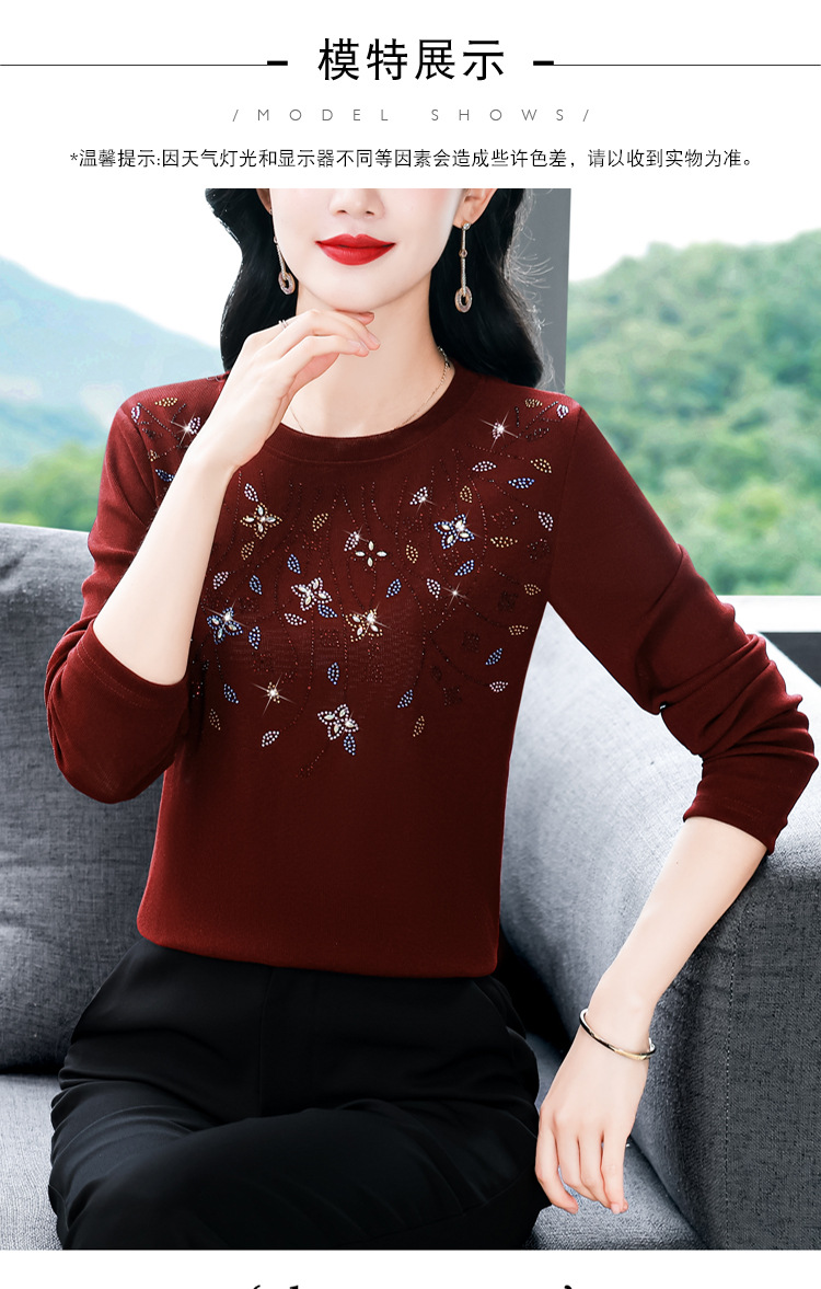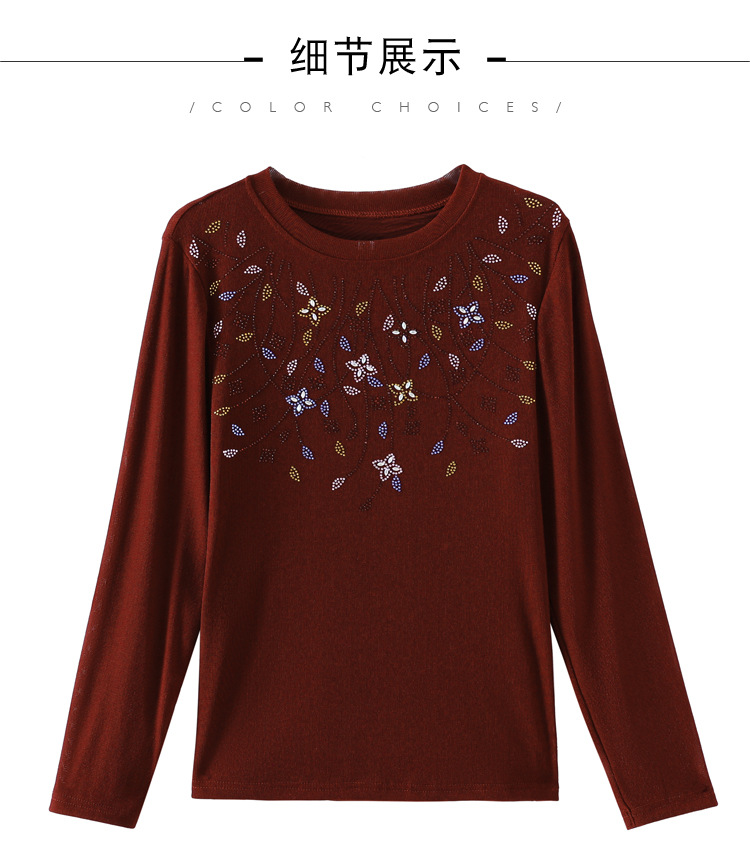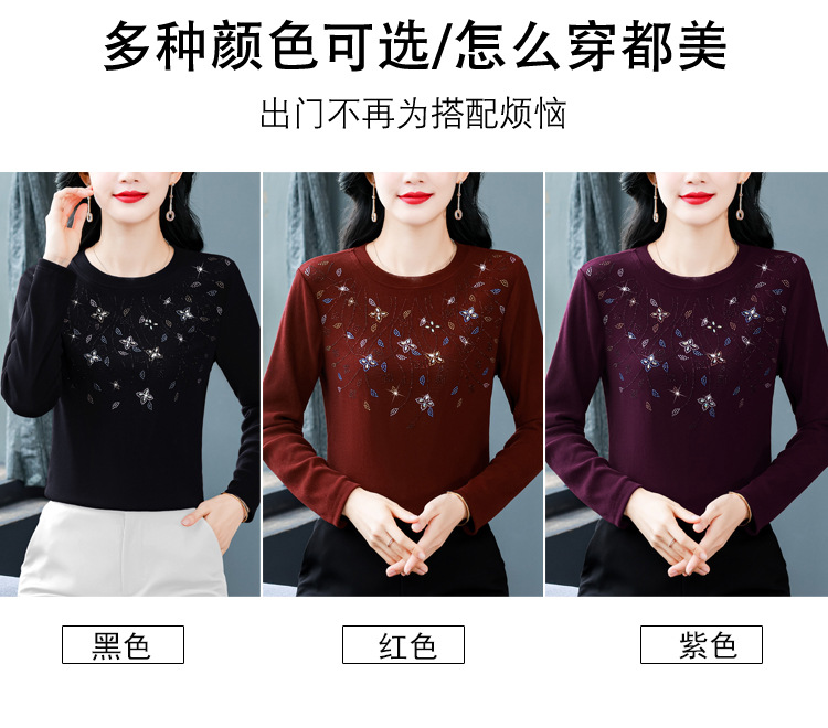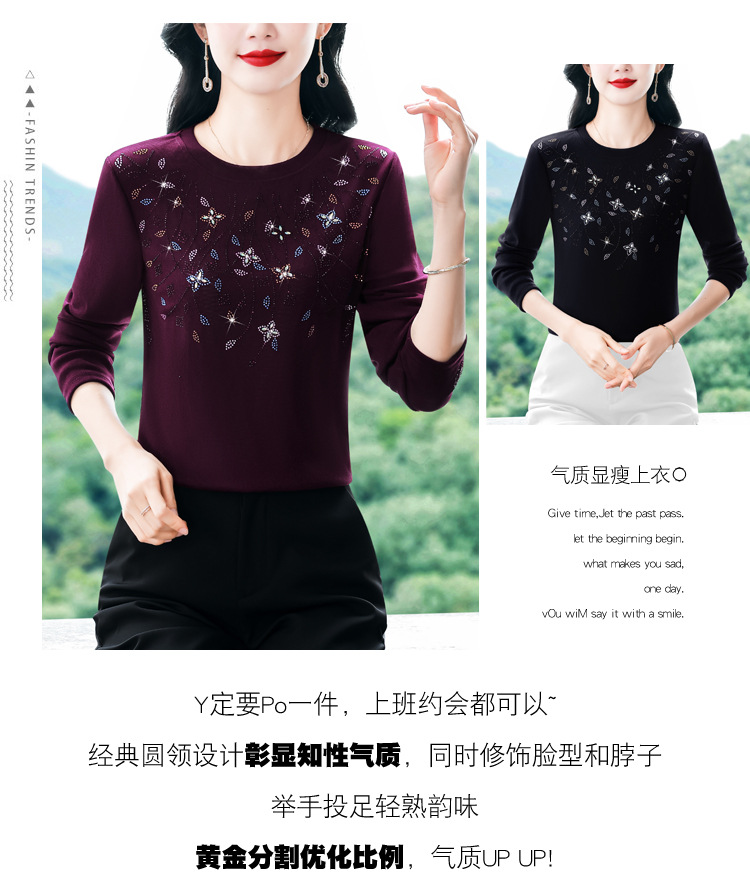 雀说新款圆领打底衫女长袖T恤气质修身显瘦烫钻大码针织上衣AL393
