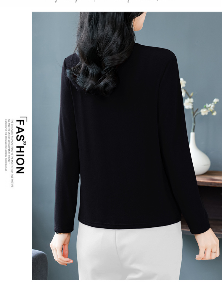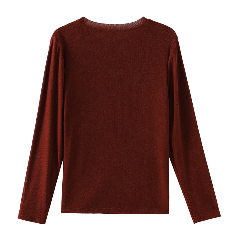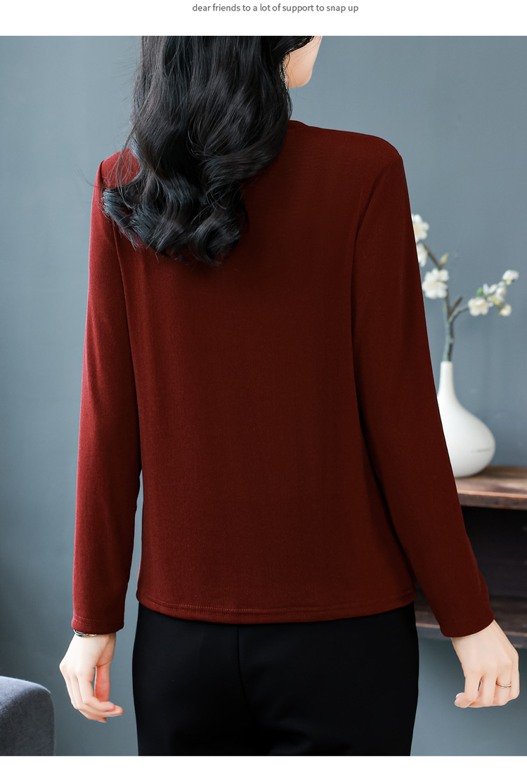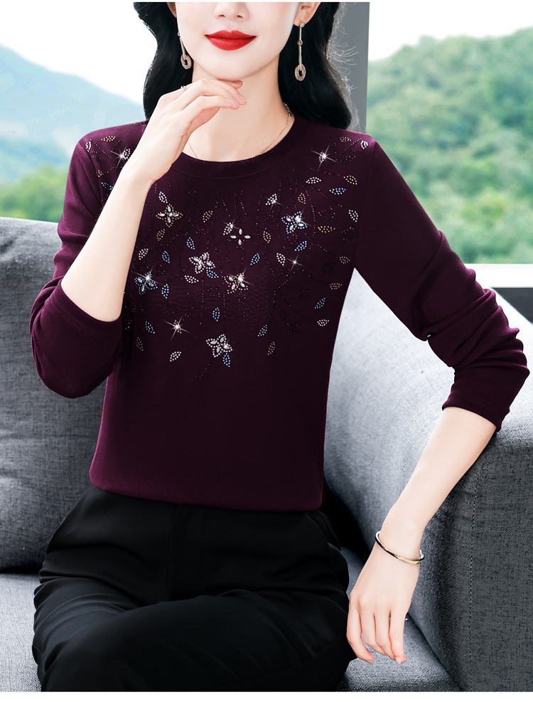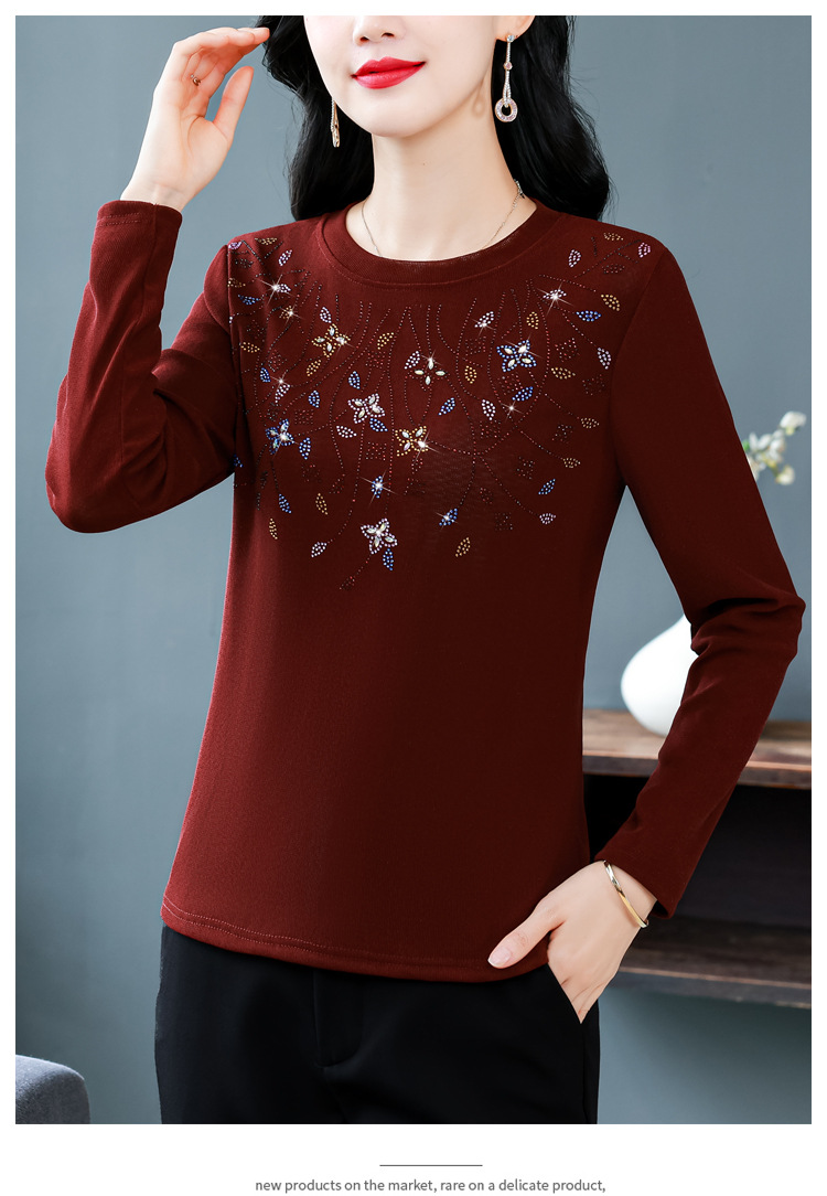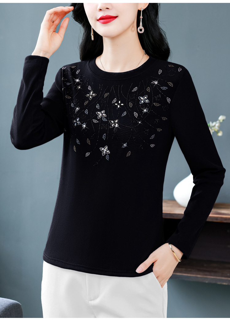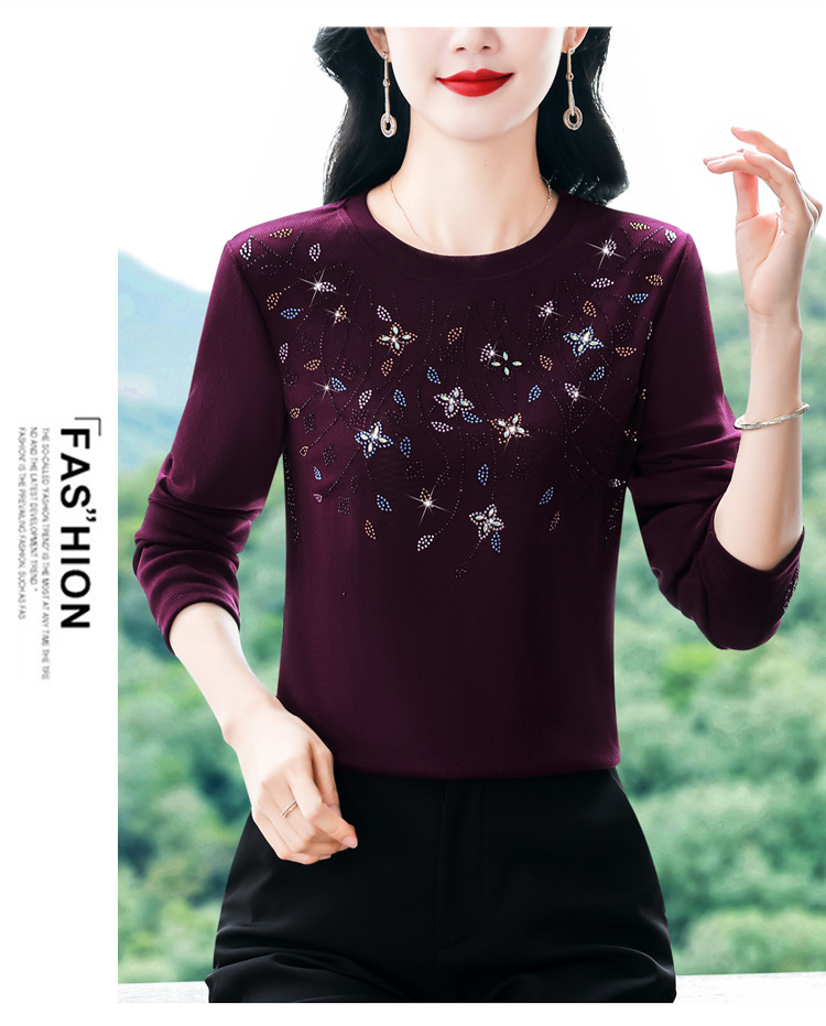 雀说新款圆领打底衫女长袖T恤气质修身显瘦烫钻大码针织上衣AL393
