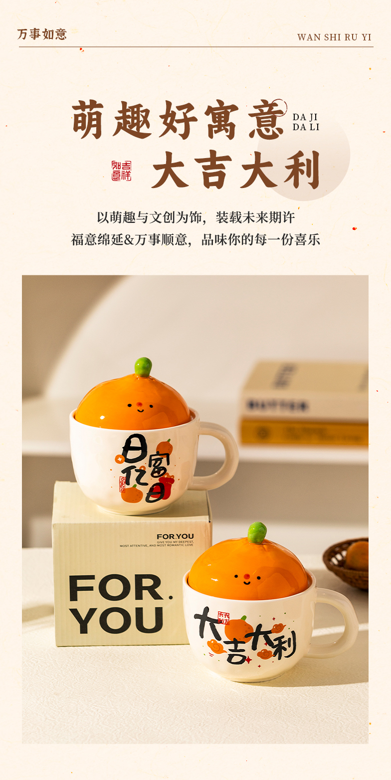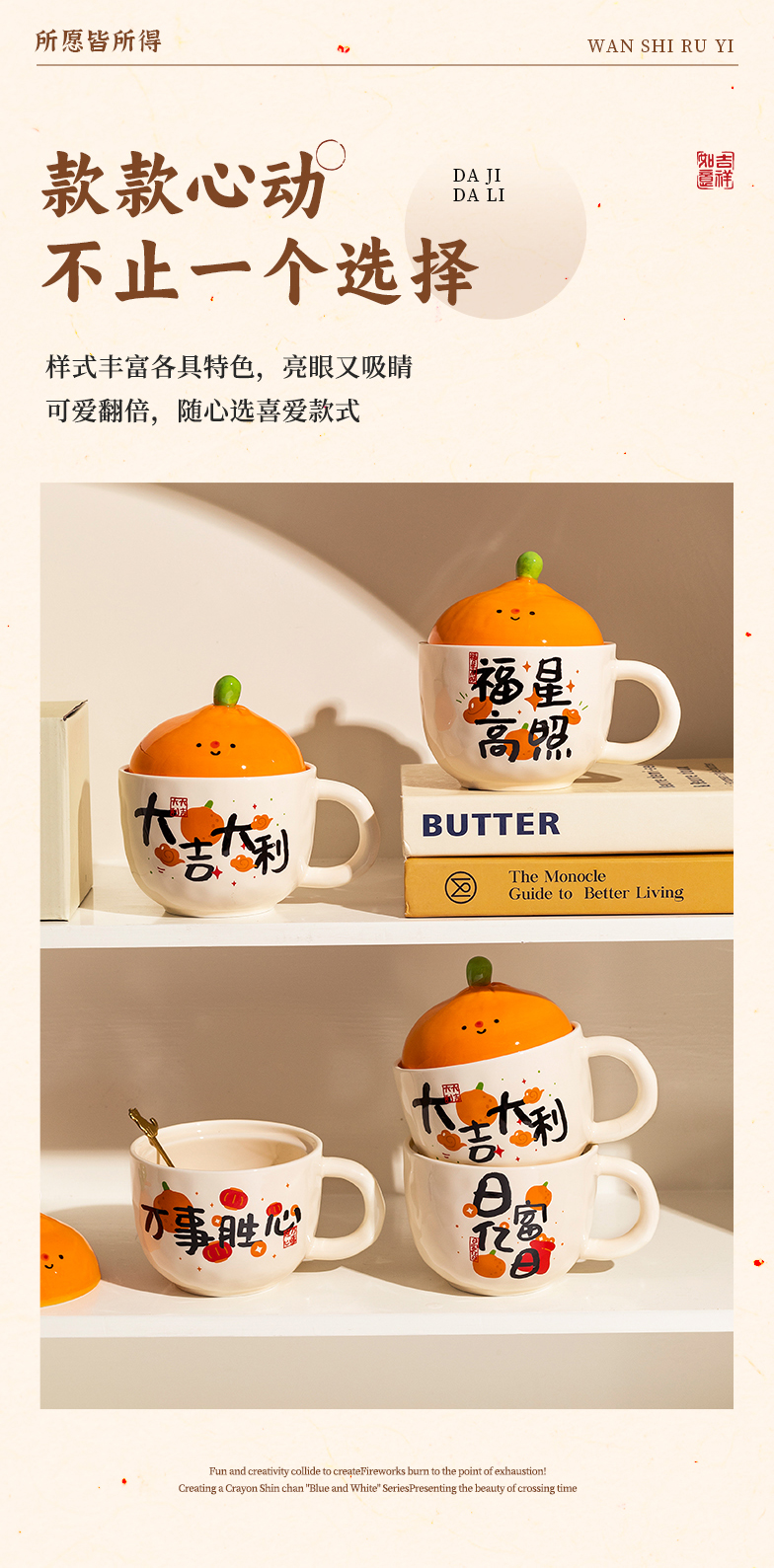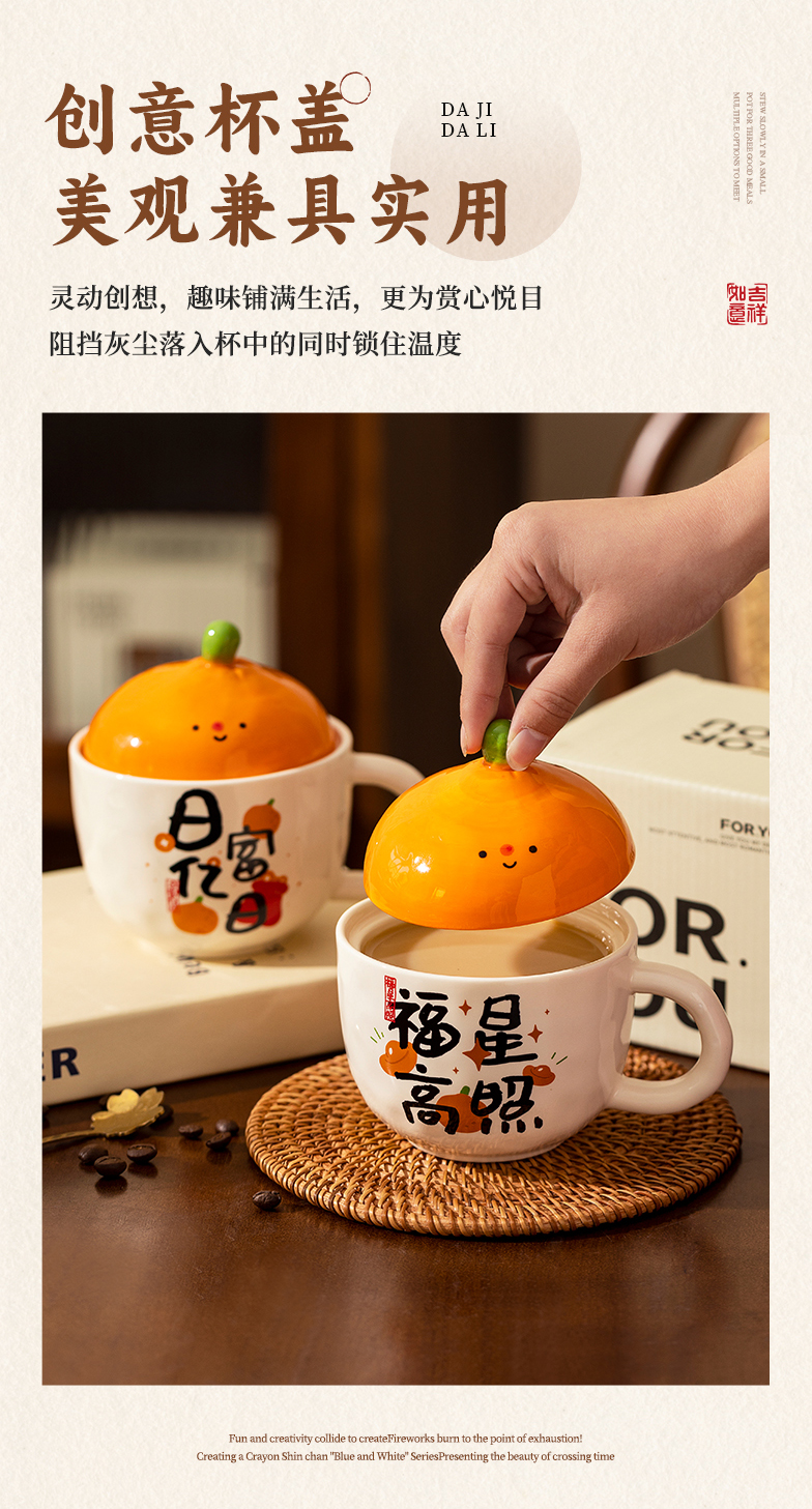 摩登主妇带盖马克杯生日礼物大吉大利陶瓷水杯家用早餐杯新年杯子