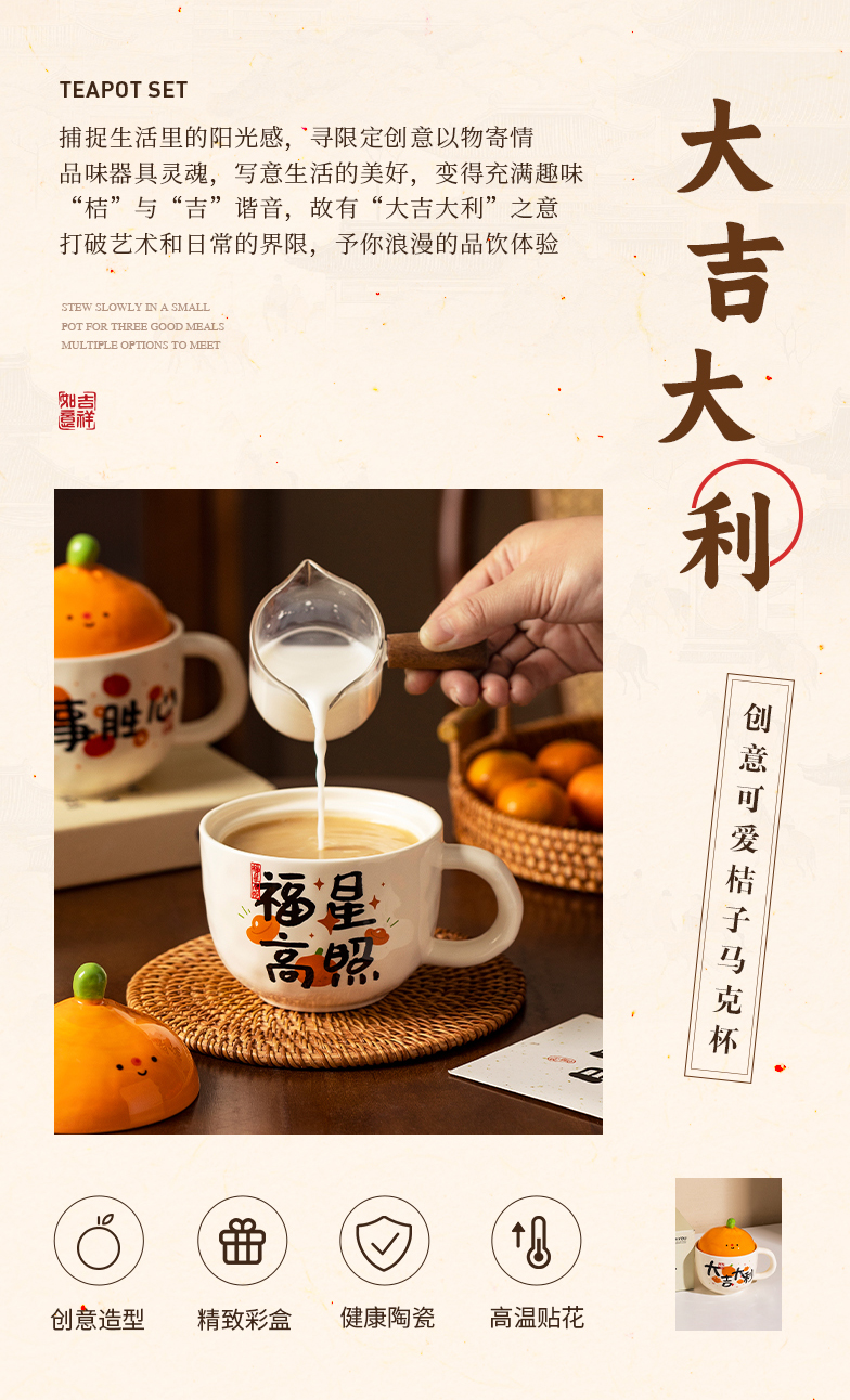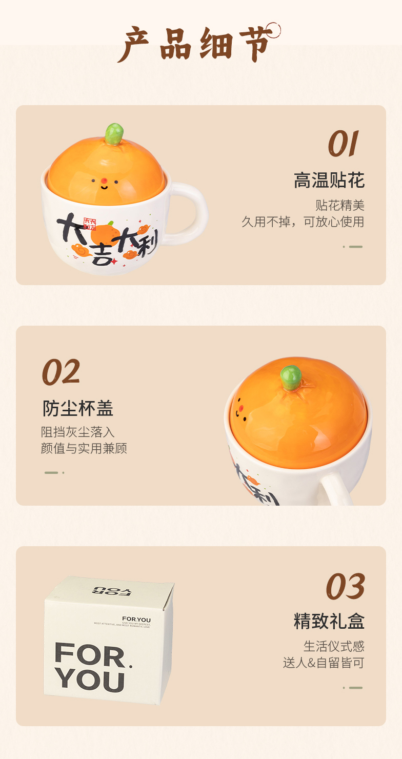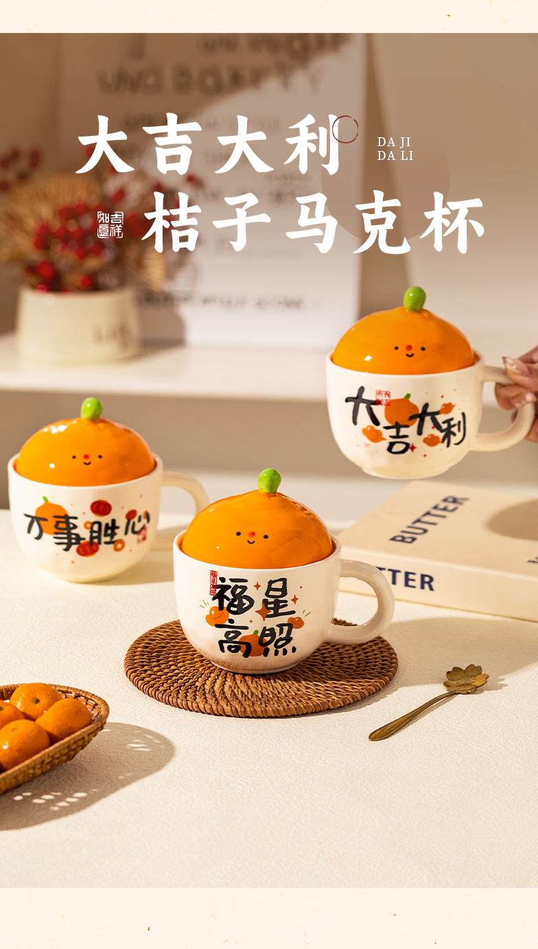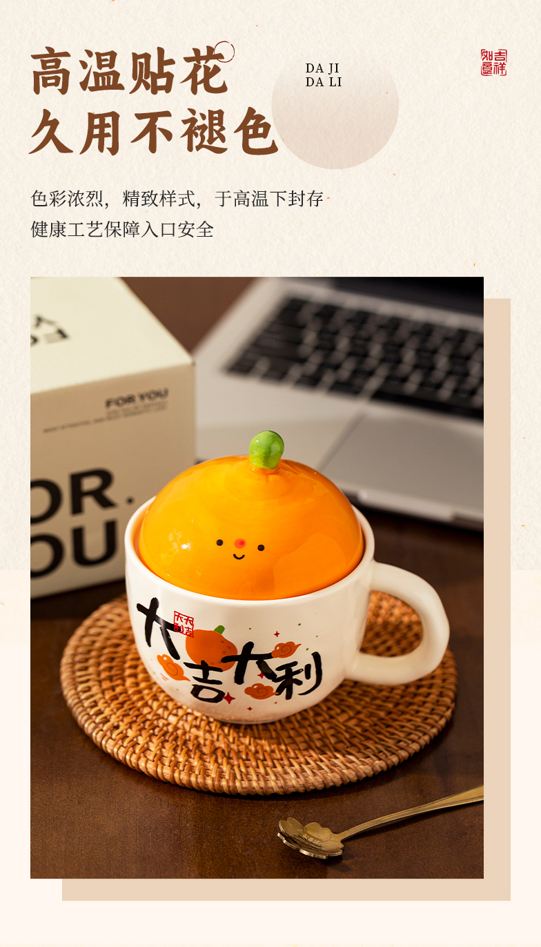 摩登主妇带盖马克杯生日礼物大吉大利陶瓷水杯家用早餐杯新年杯子