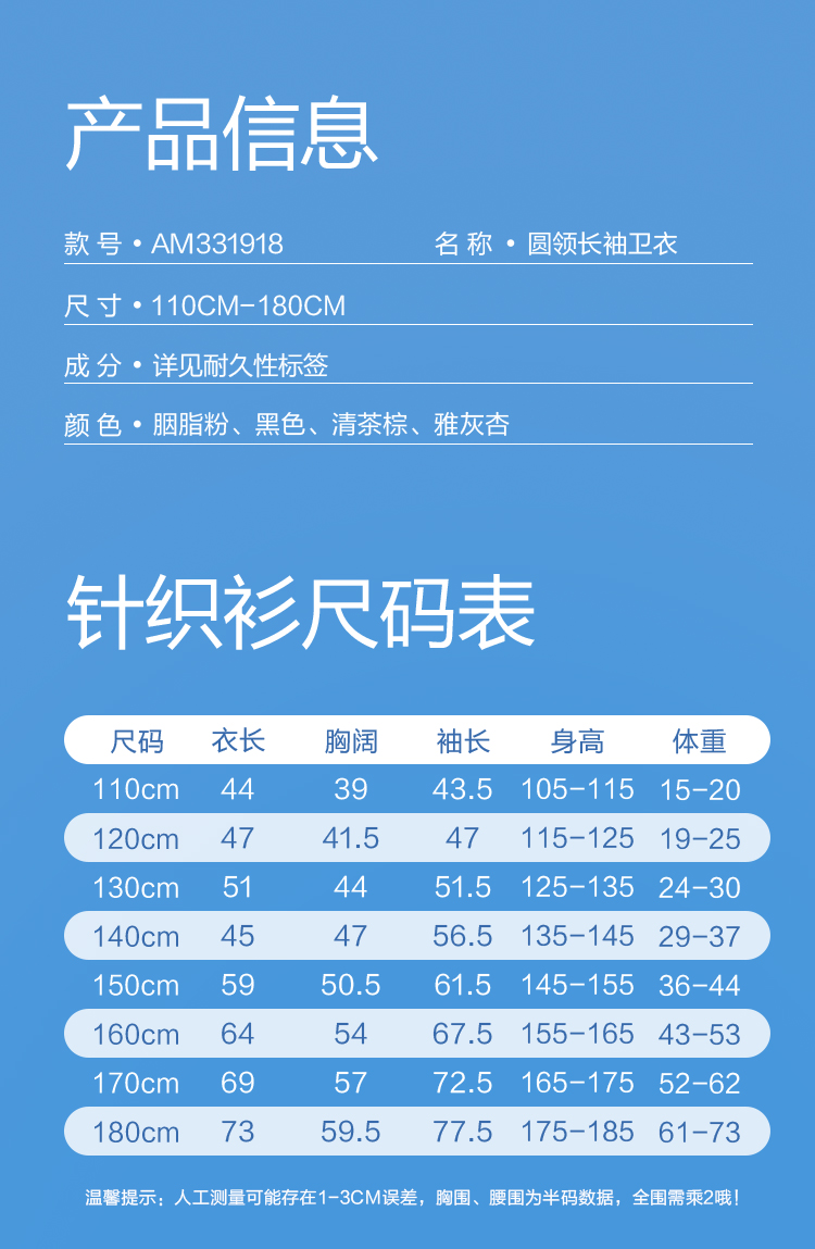 【抗菌防螨虫】男女童凉感圆领长袖卫衣亲子装安奈儿童装实体店同款AM331918