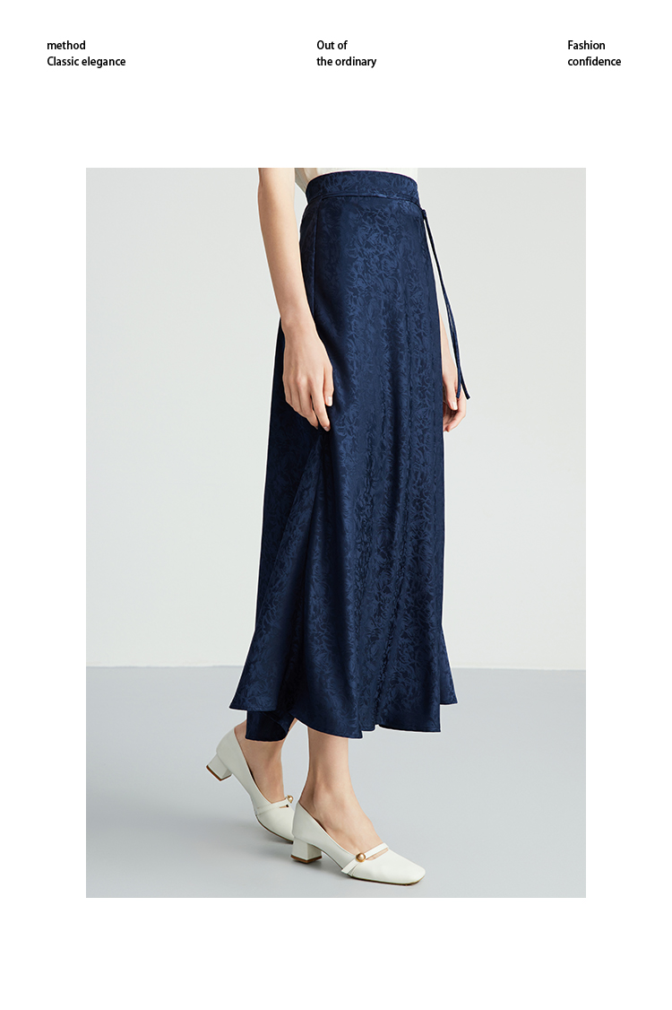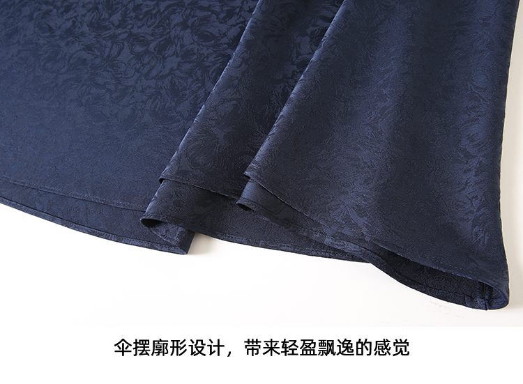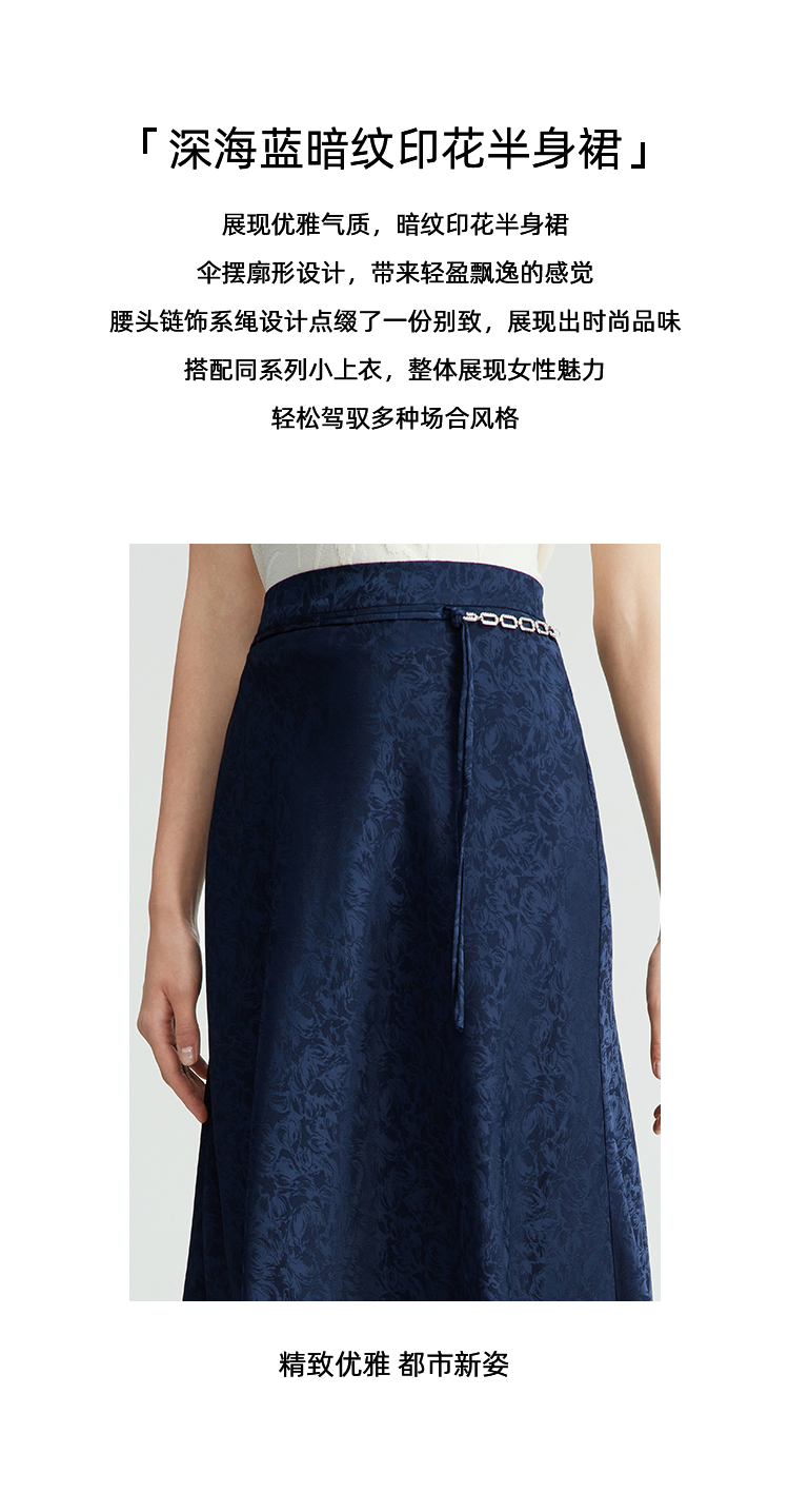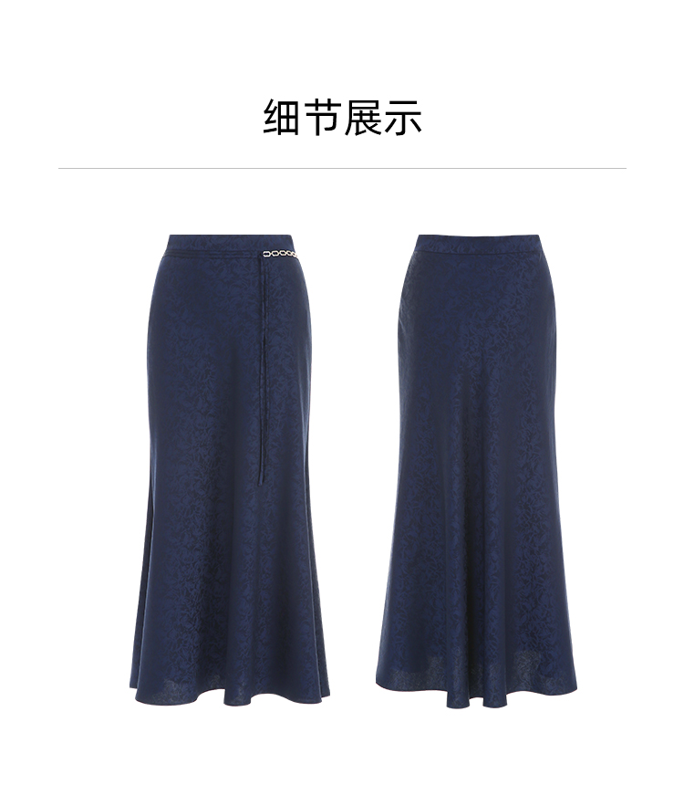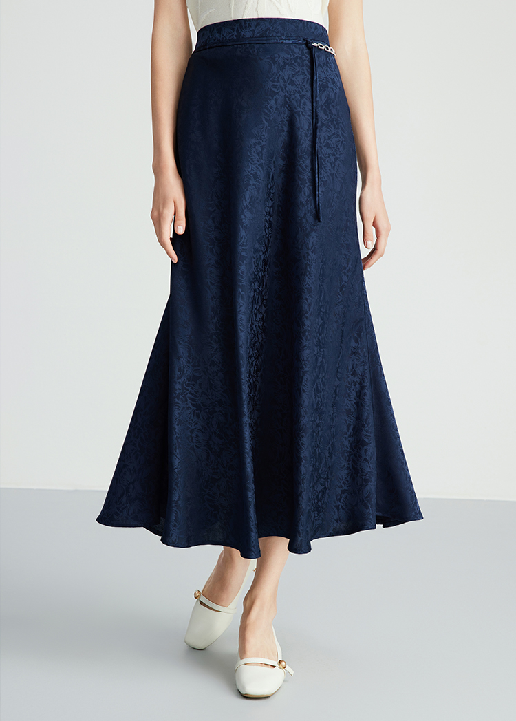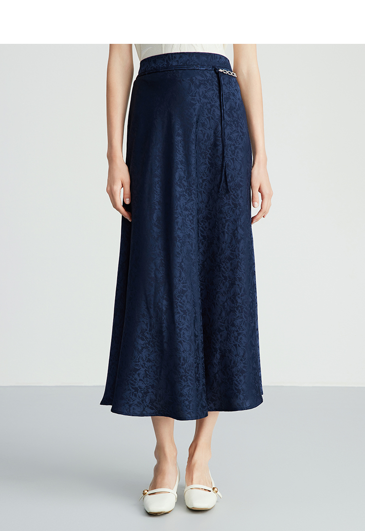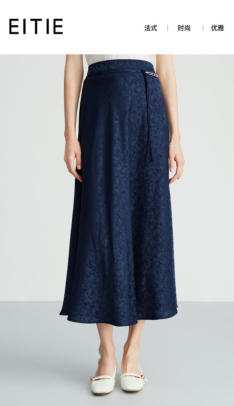 EITIE爱特爱步步生花高腰垂坠深蓝暗纹印花长裙半身裙秋新款C2406412