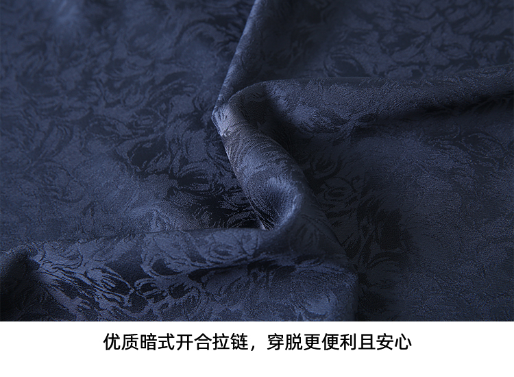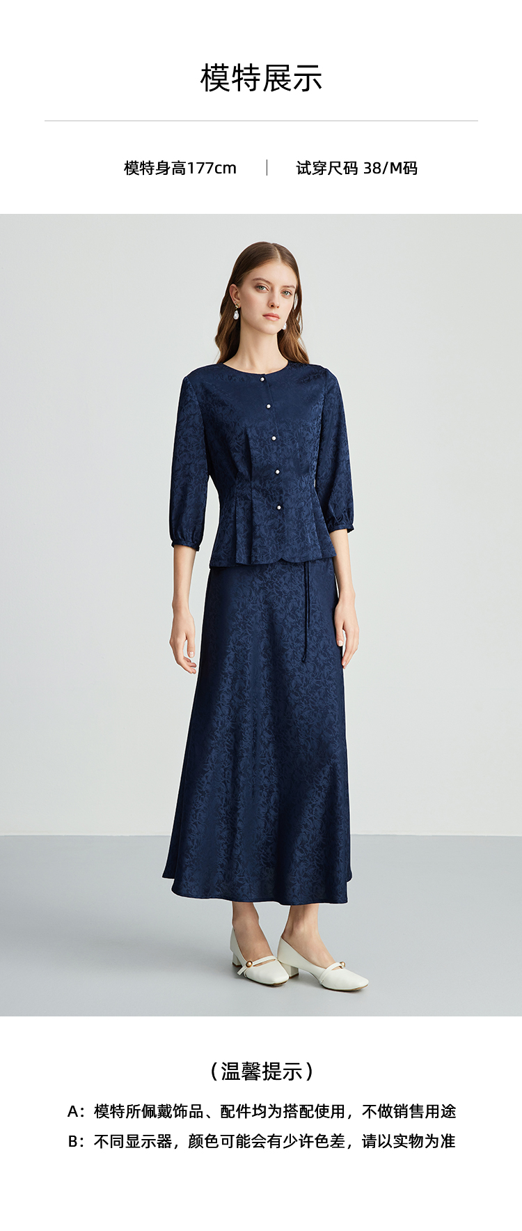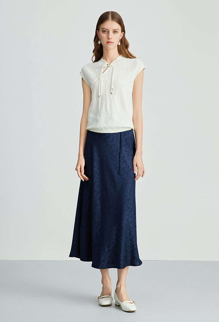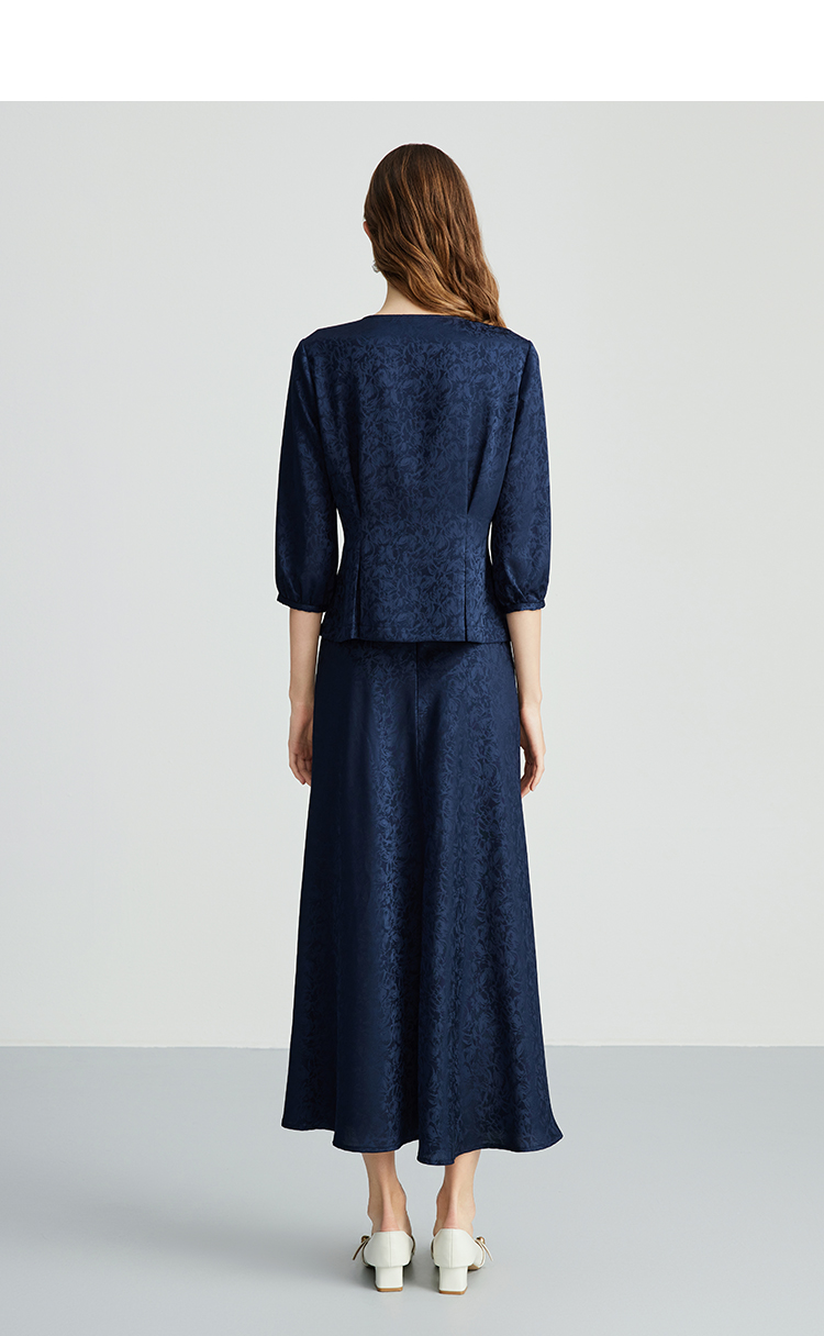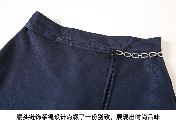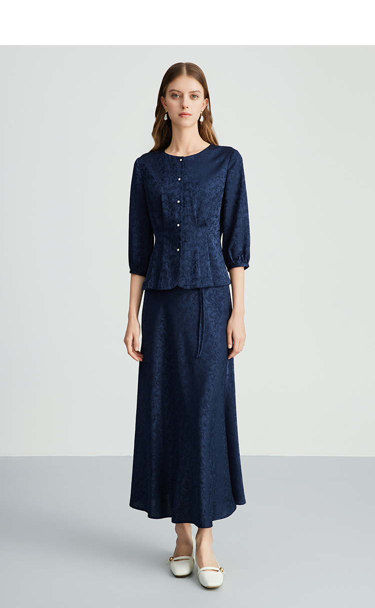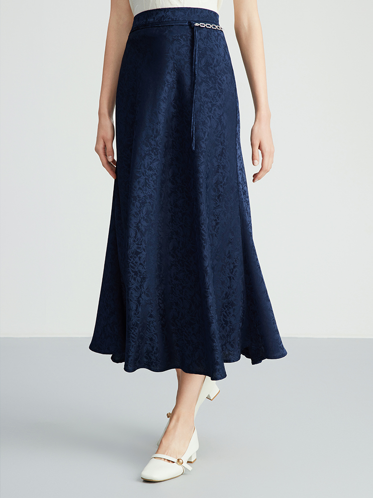 EITIE爱特爱步步生花高腰垂坠深蓝暗纹印花长裙半身裙秋新款C2406412