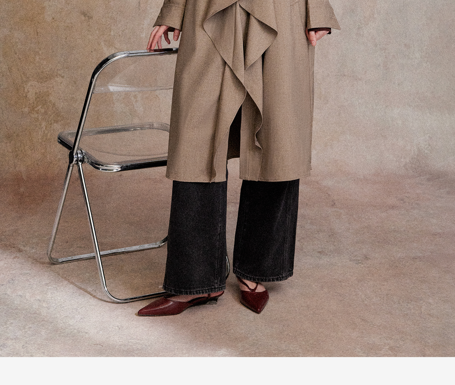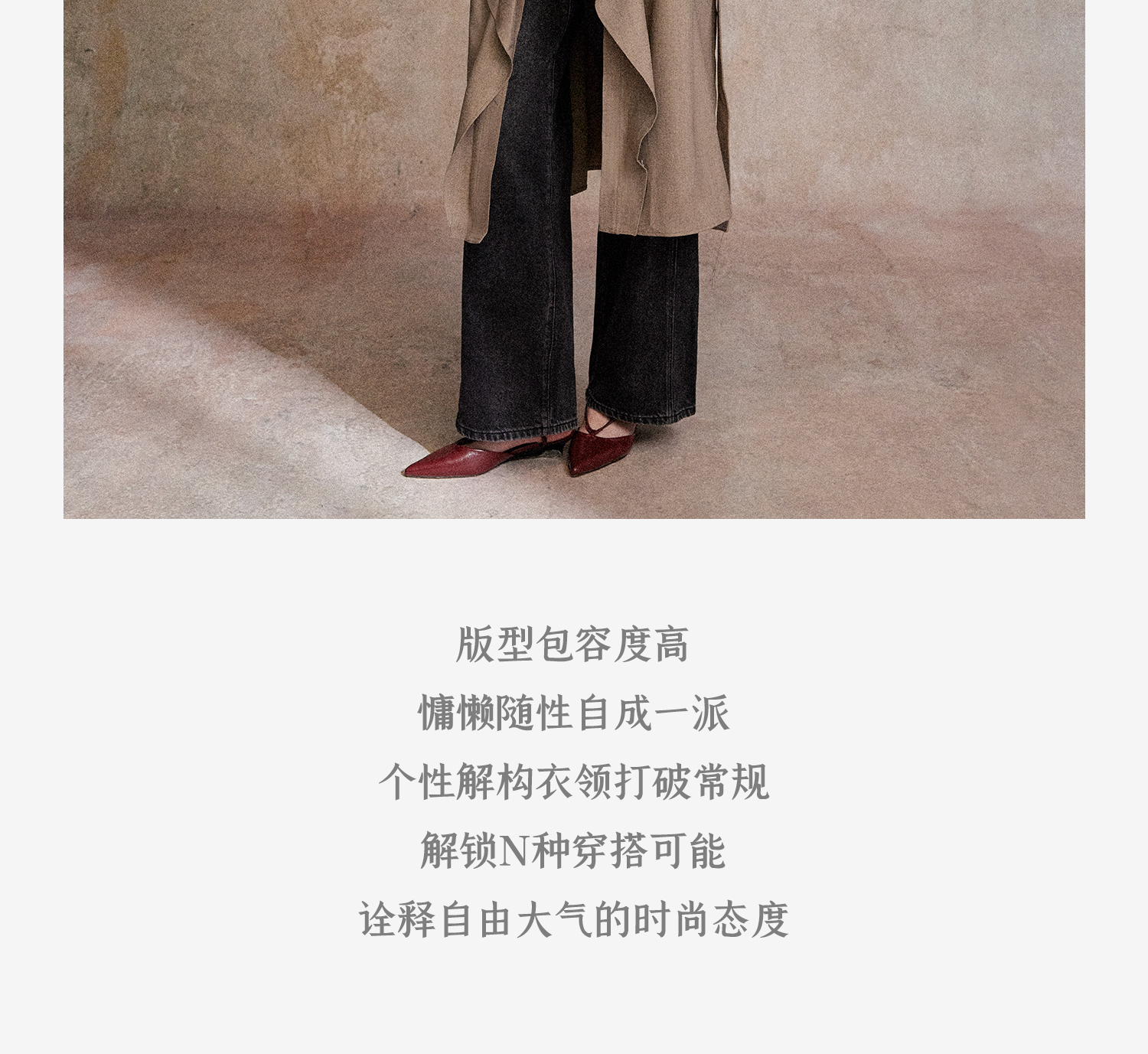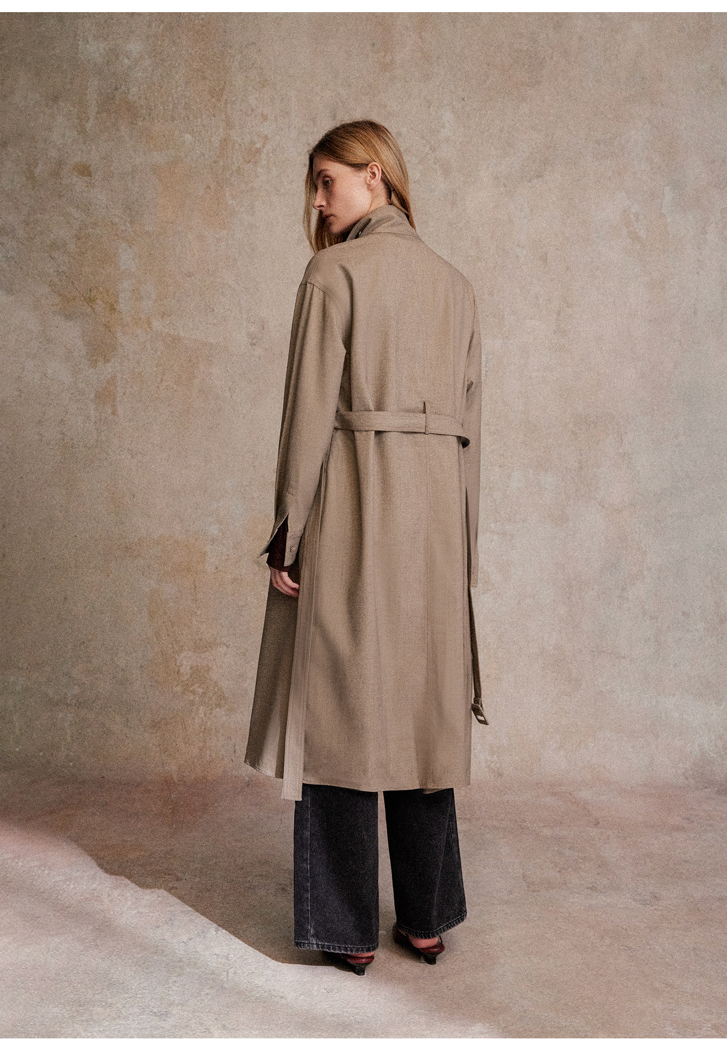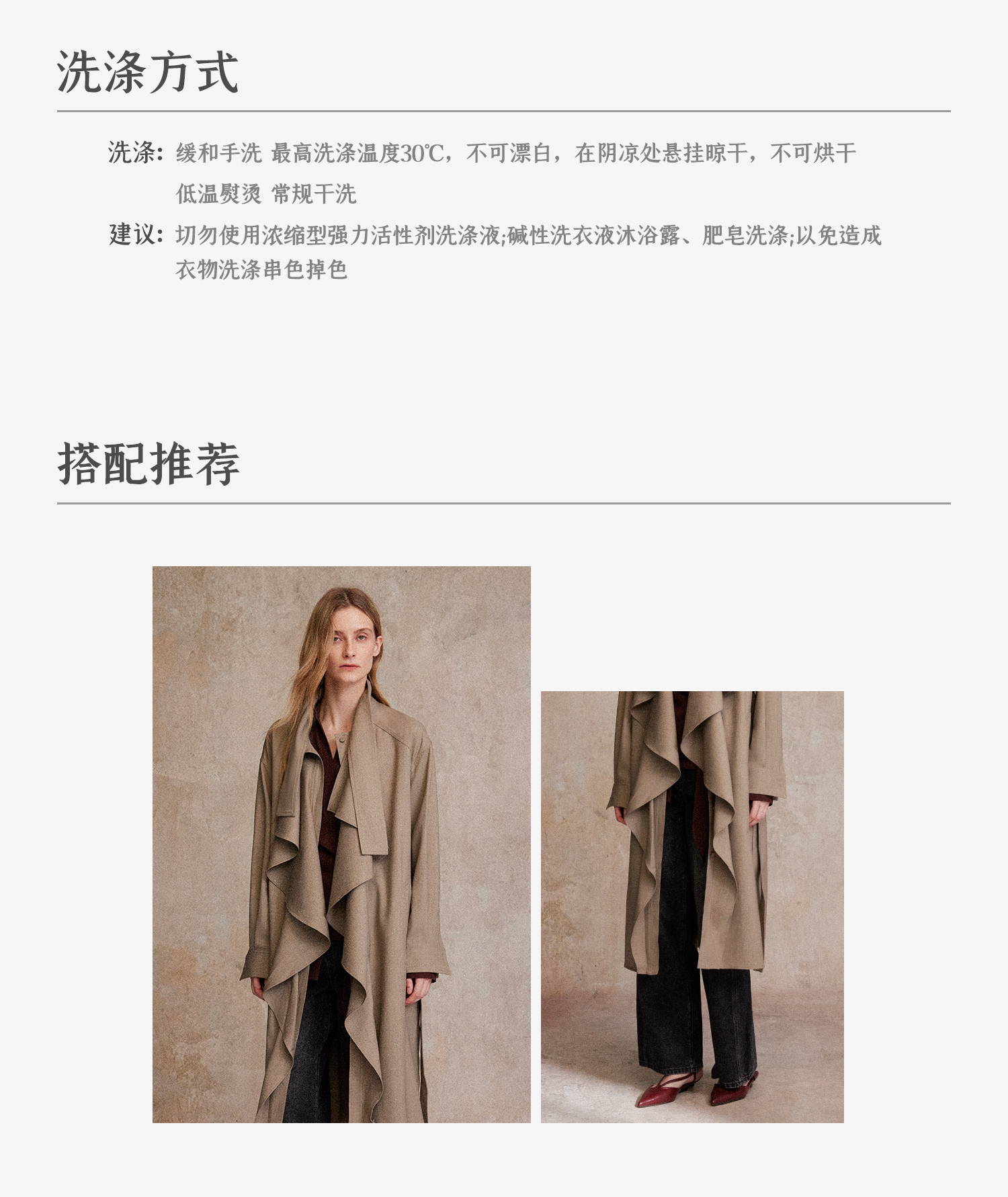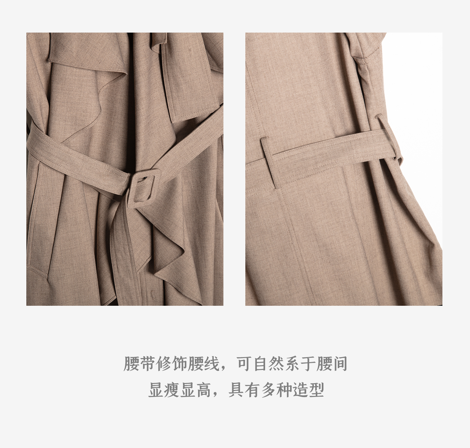 混色羊毛立领随性松弛感2穿飘带荷叶边荡领风衣FY2503058