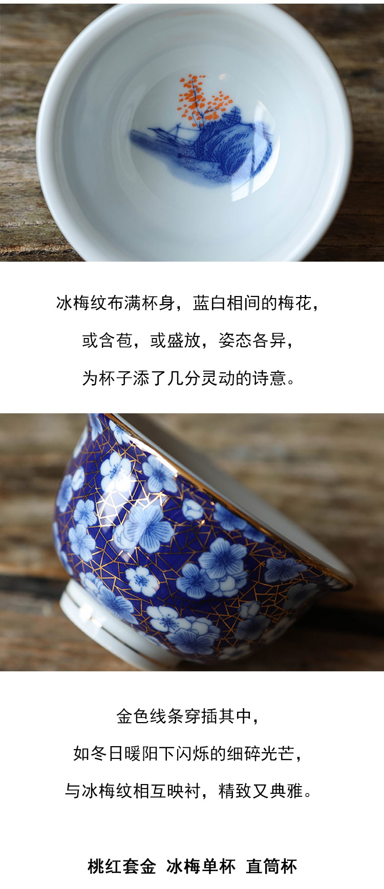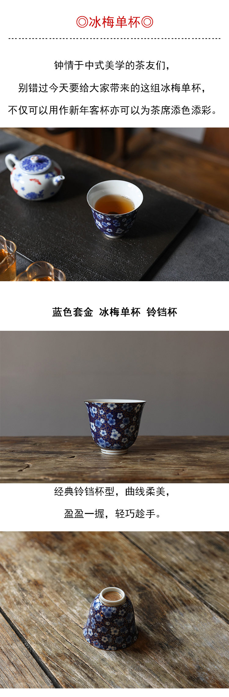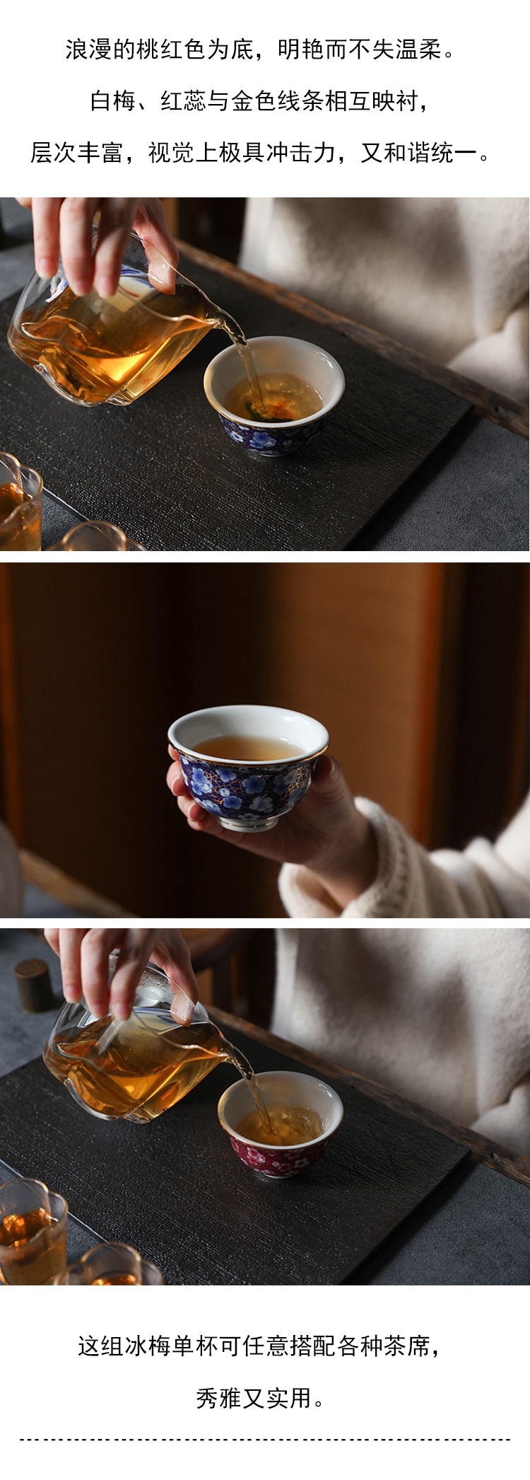 茶香记 冰梅单杯100ml蓝色套金铃铛杯矮玉兰杯桃红套金直筒杯中式美学新年客杯