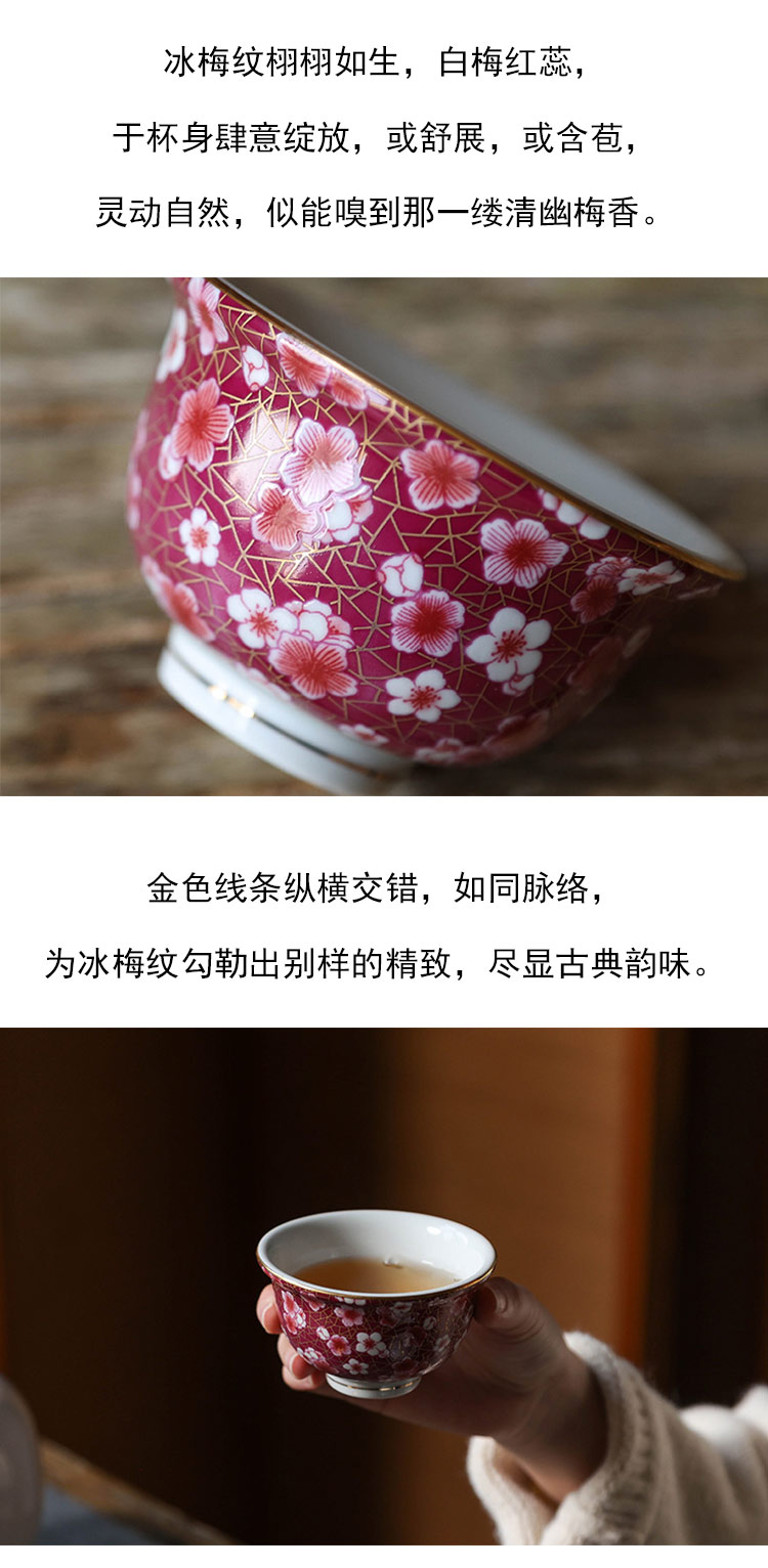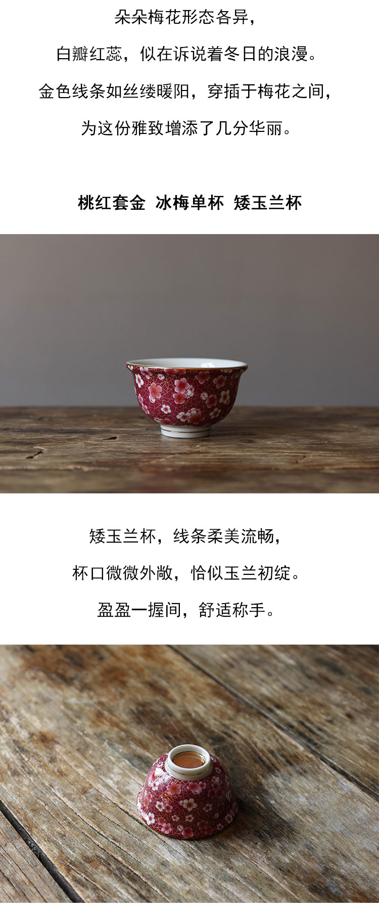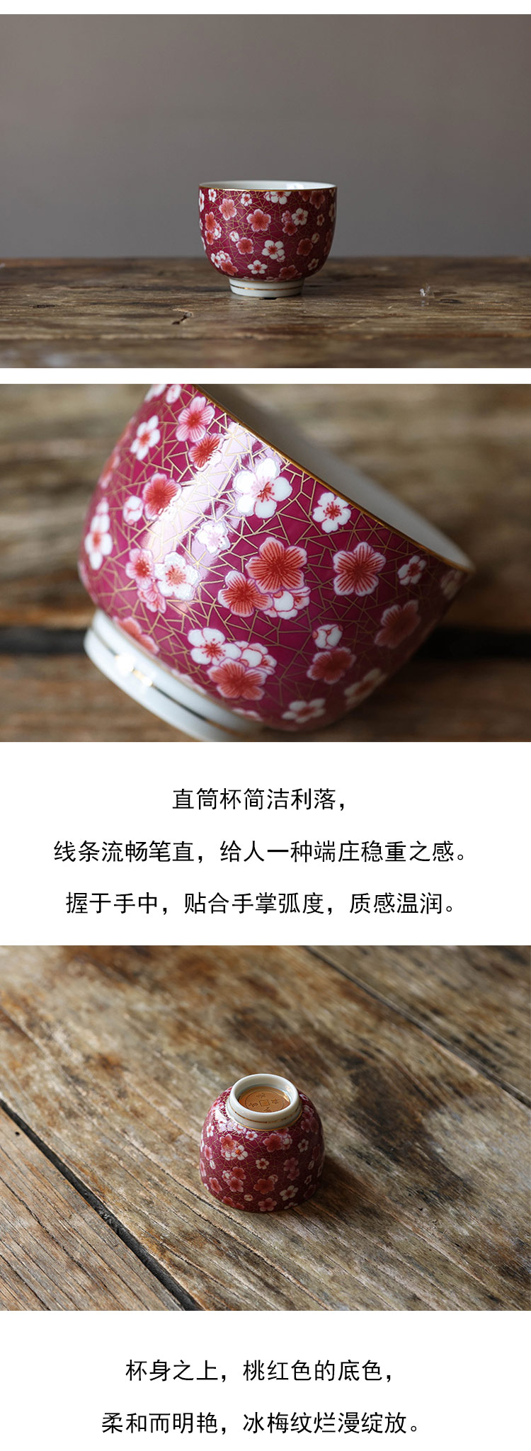 茶香记 冰梅单杯100ml蓝色套金铃铛杯矮玉兰杯桃红套金直筒杯中式美学新年客杯