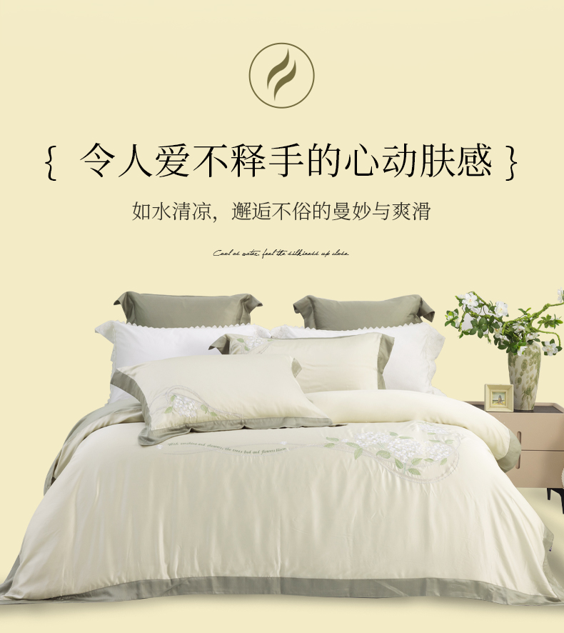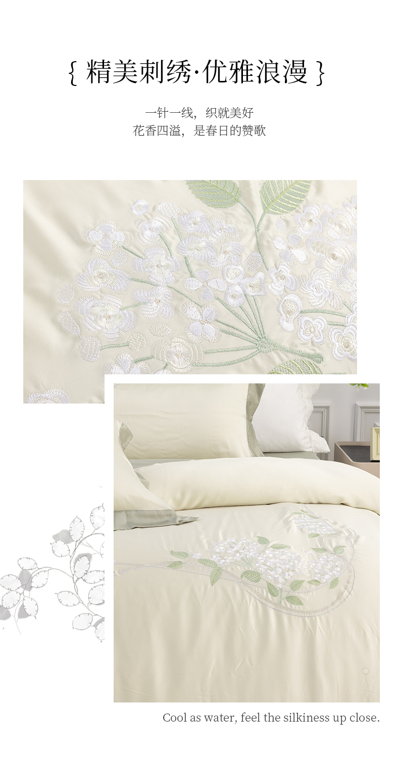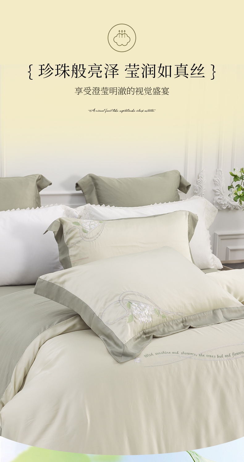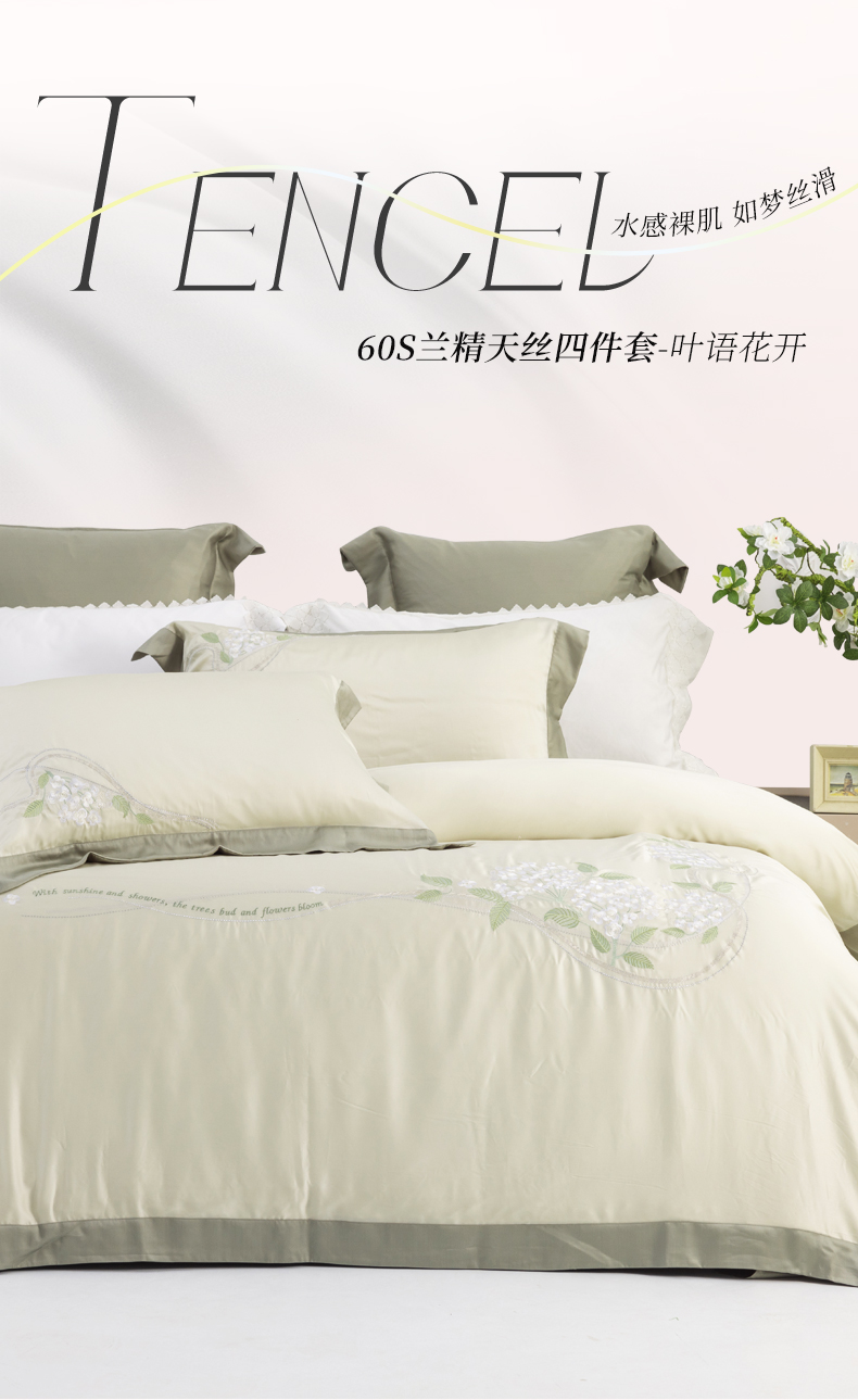 多喜爱 进口60S兰精天丝四件套-叶语花开 莱赛尔纤维 60S高密天丝细腻柔软精美刺绣优雅浪漫专利床单礼盒包装