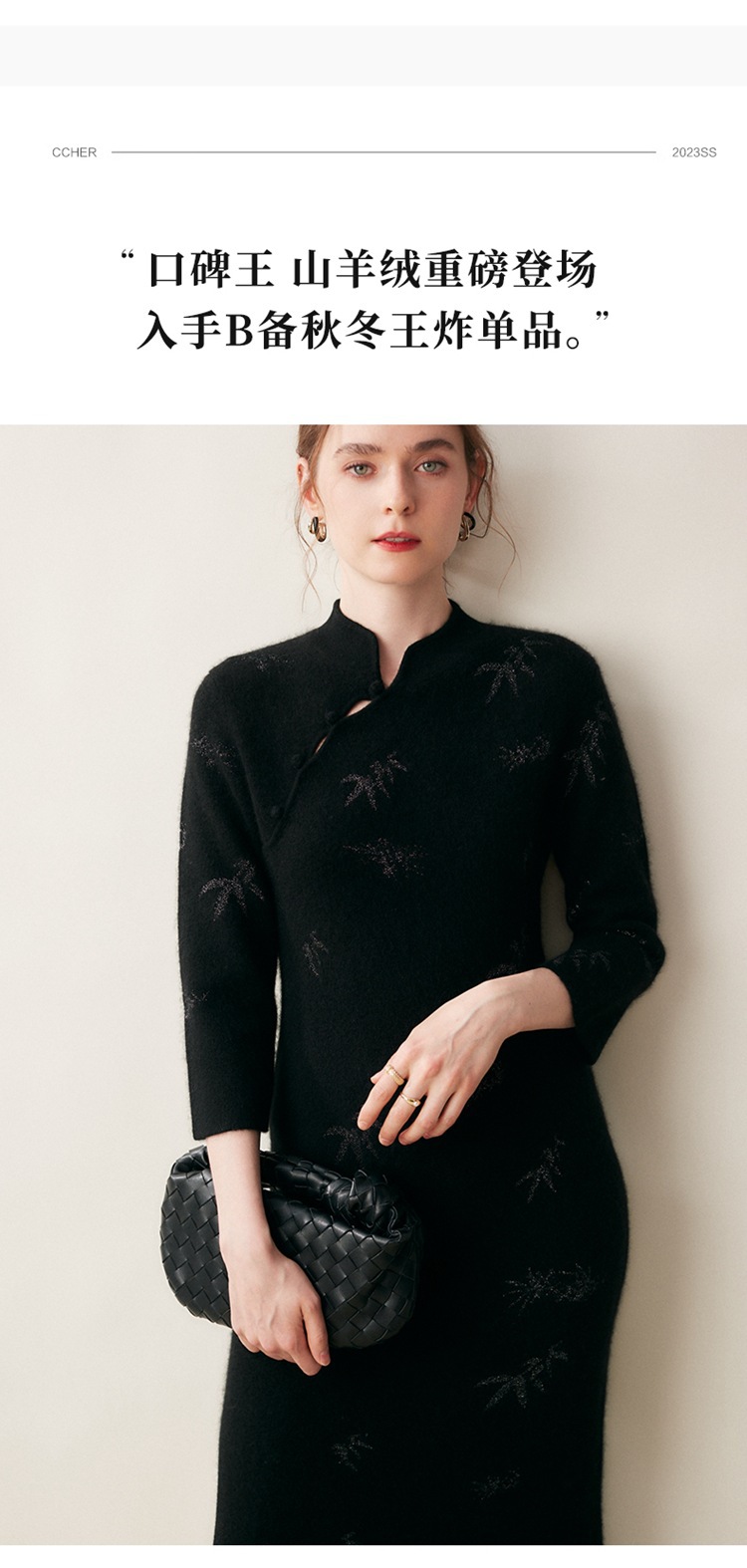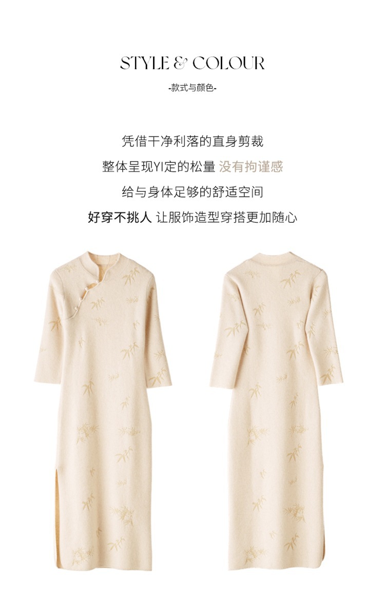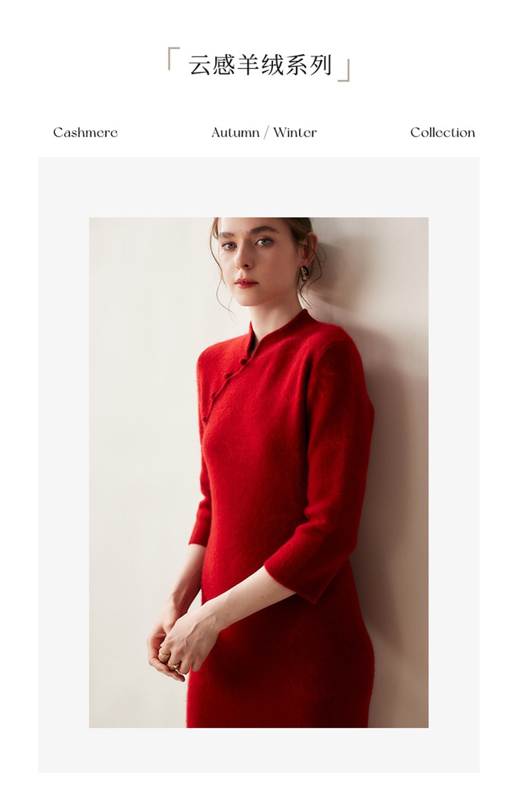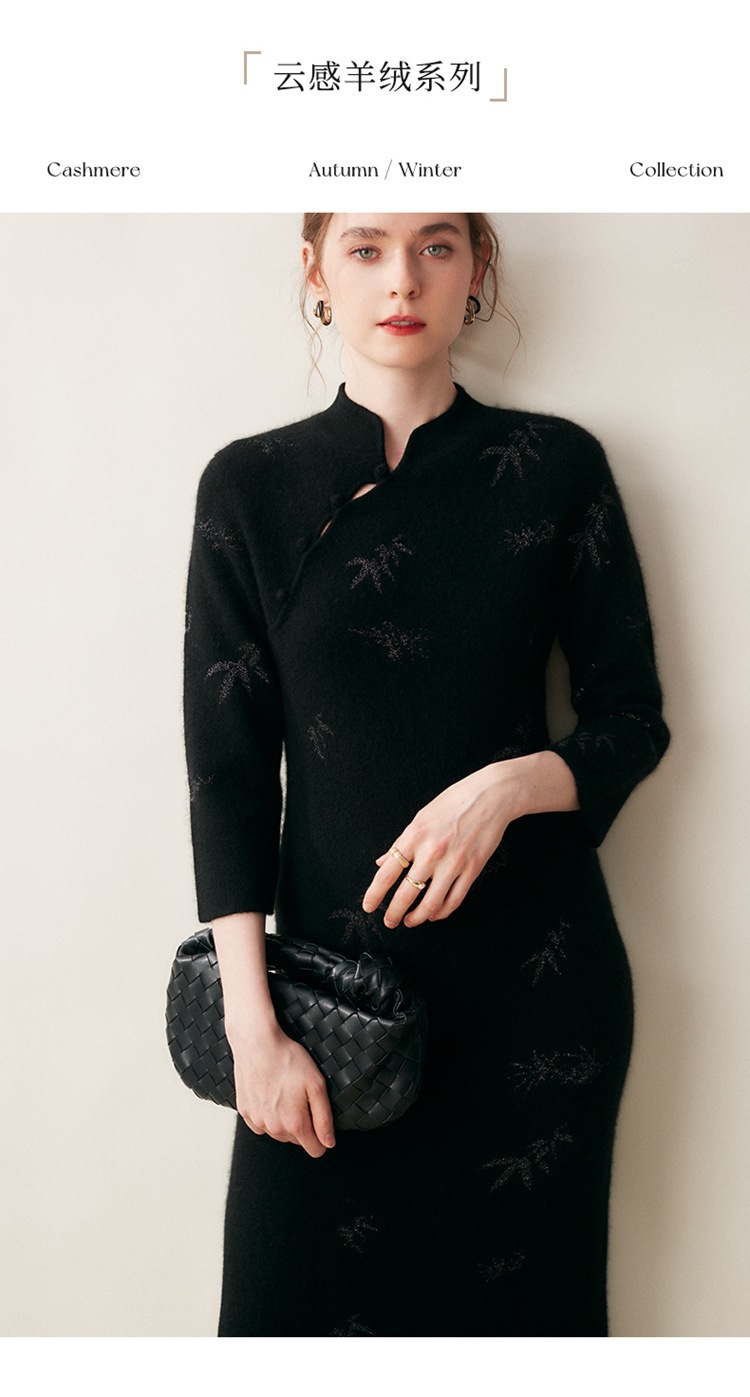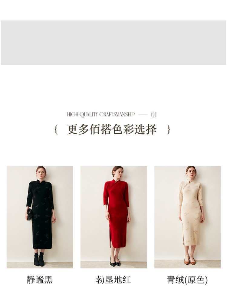 QJ RC23055国风金银丝绣花山羊绒混纺加厚盘扣旗袍连衣裙