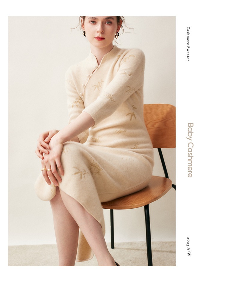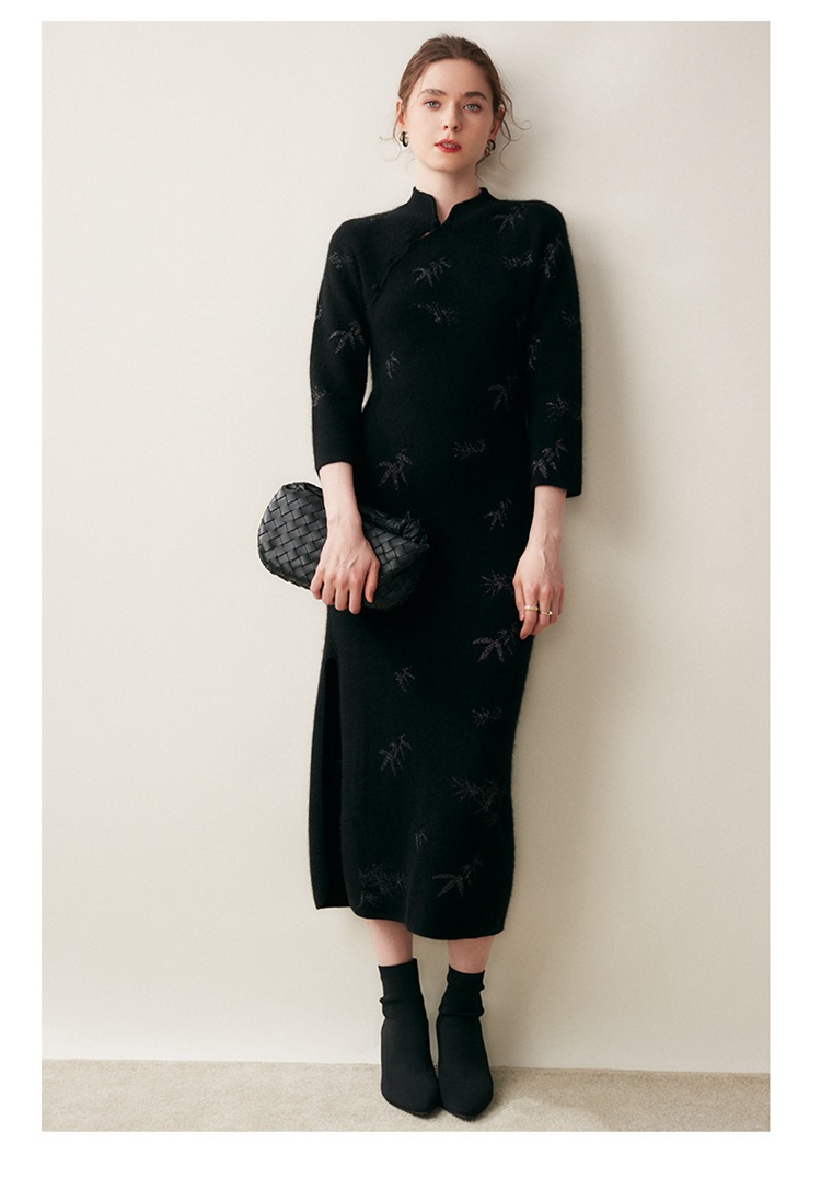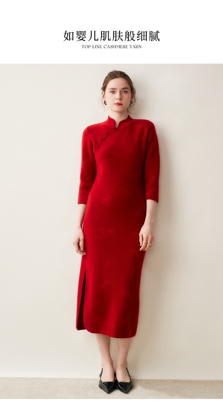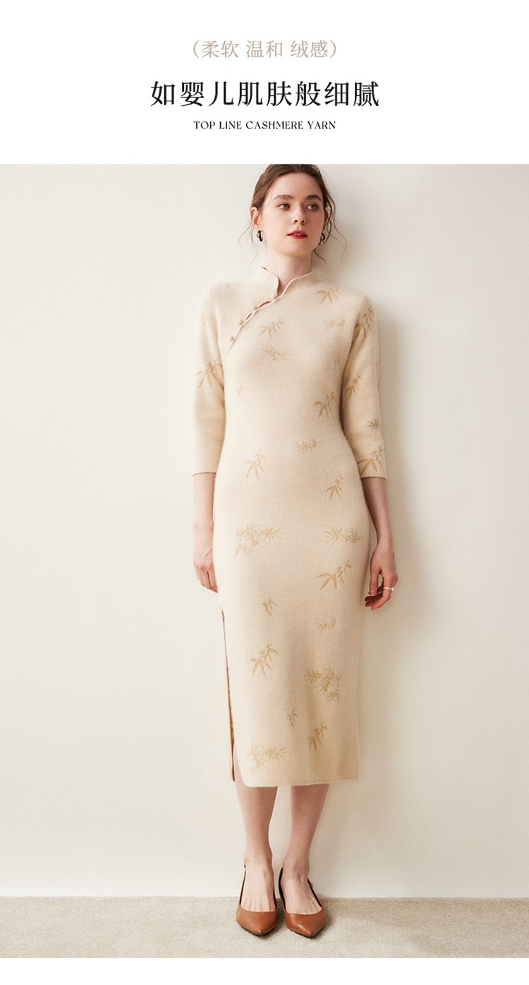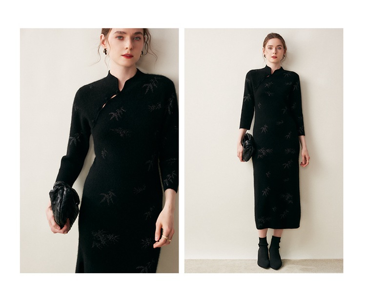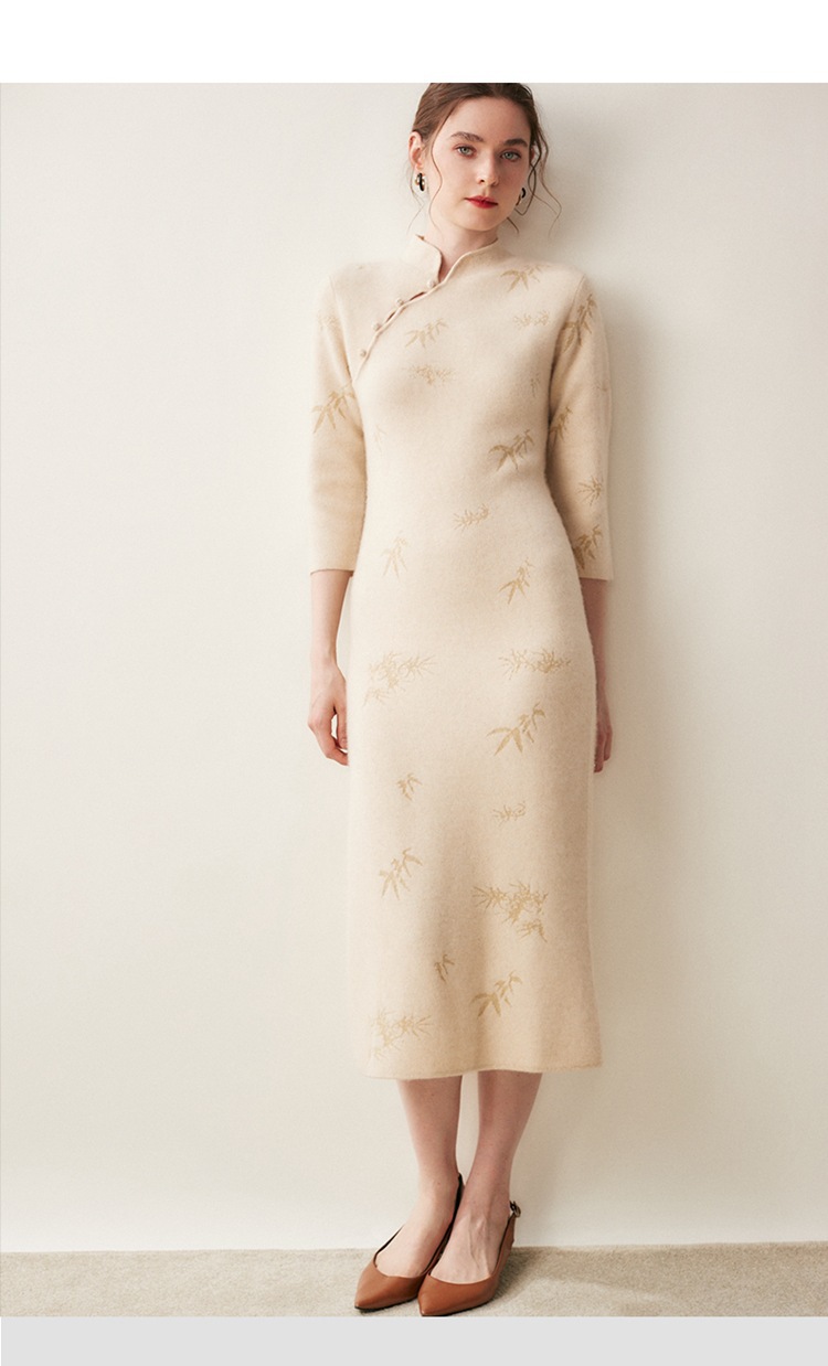 QJ RC23055国风金银丝绣花山羊绒混纺加厚盘扣旗袍连衣裙