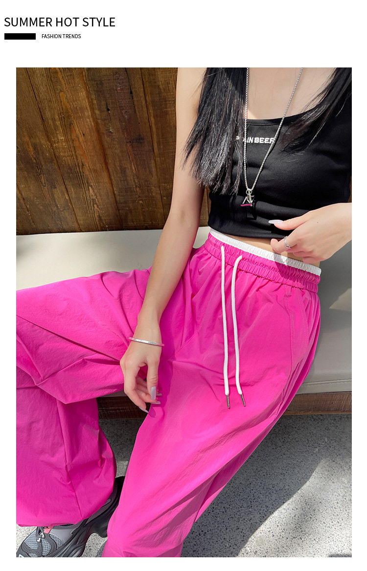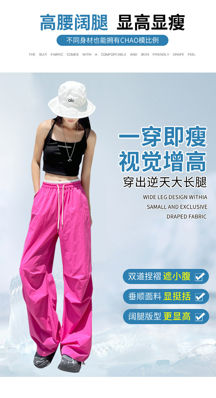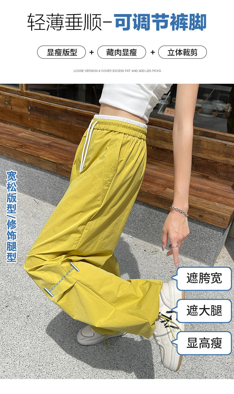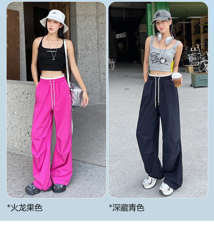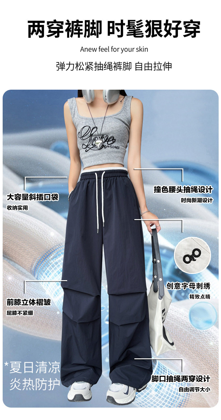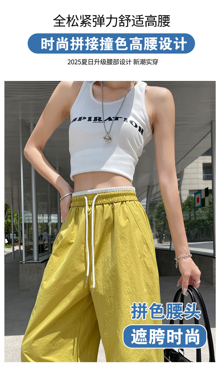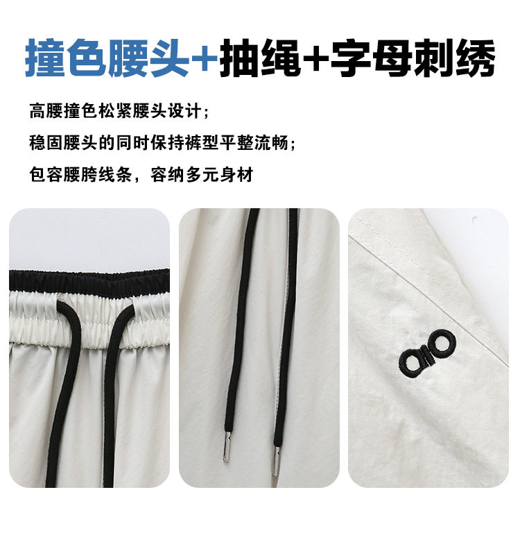 薄款高腰显窄版阔腿裤女夏季新款拼色腰头刺绣时尚宽松休闲长裤 NDK-J6012