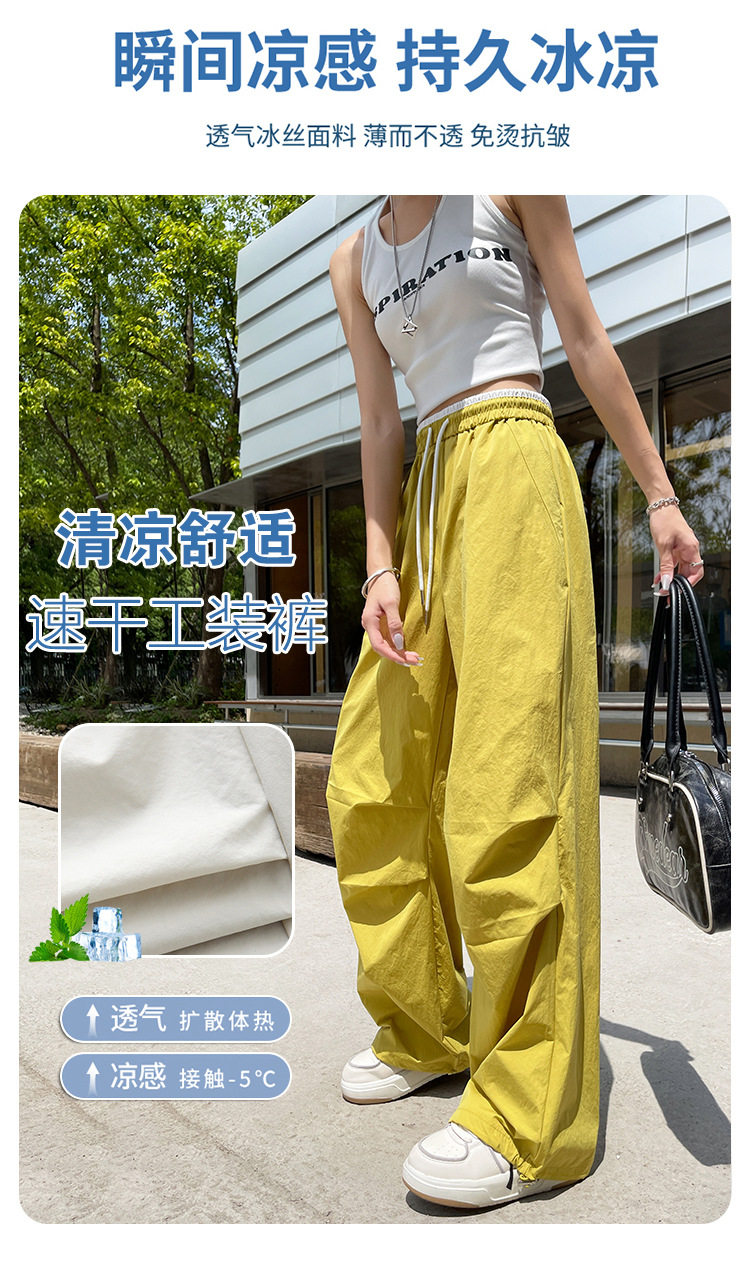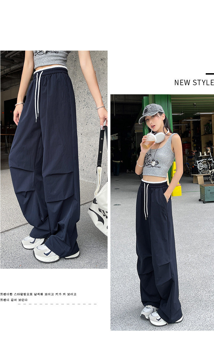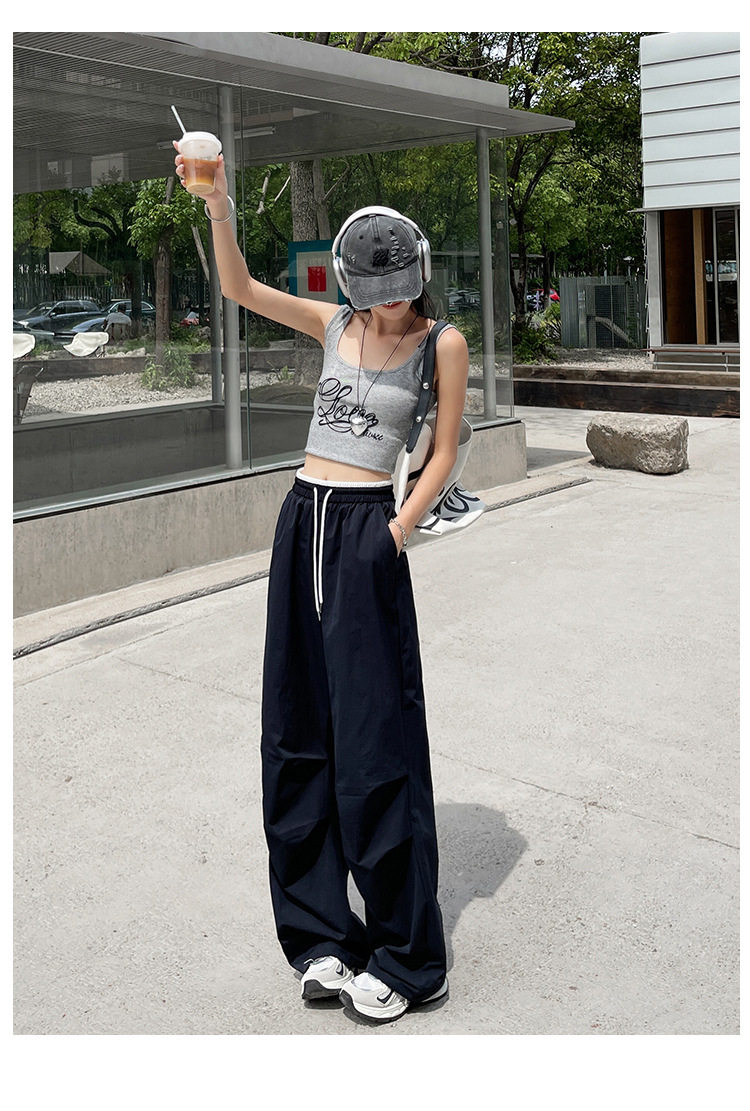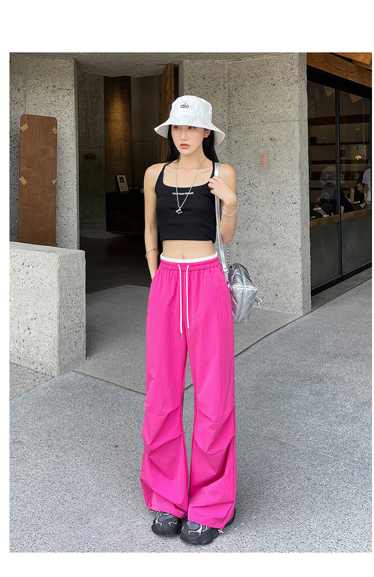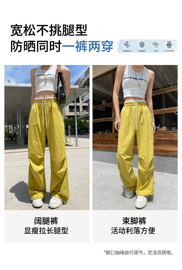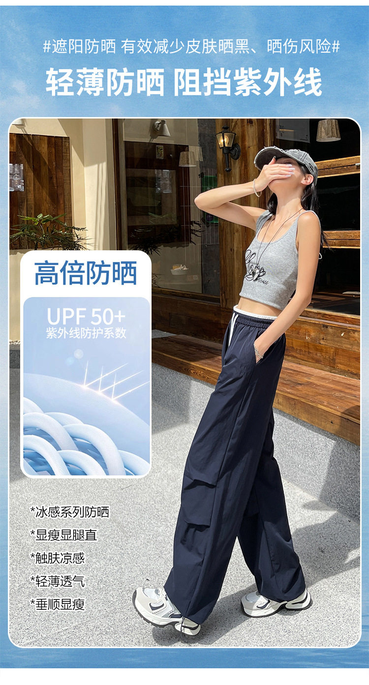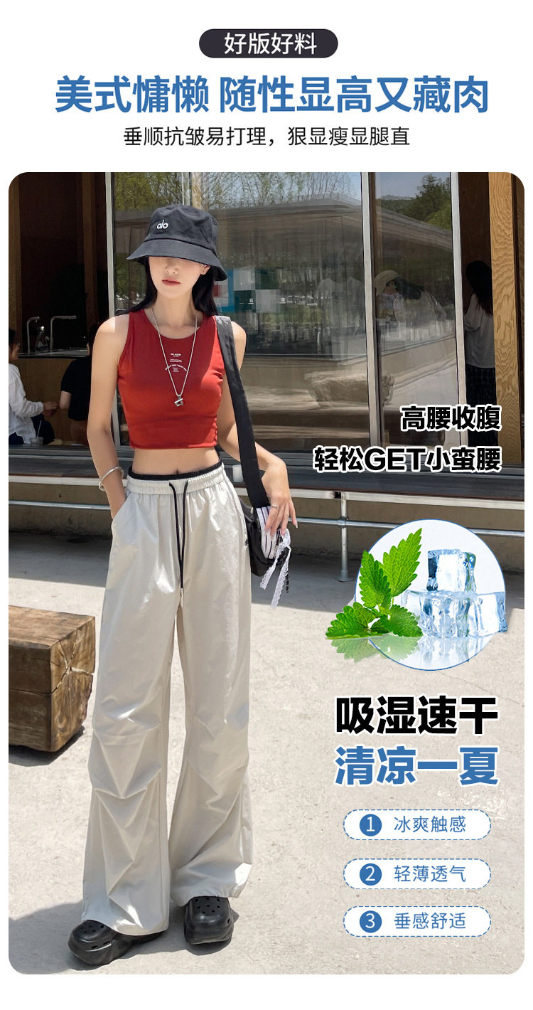 薄款高腰显窄版阔腿裤女夏季新款拼色腰头刺绣时尚宽松休闲长裤 NDK-J6012