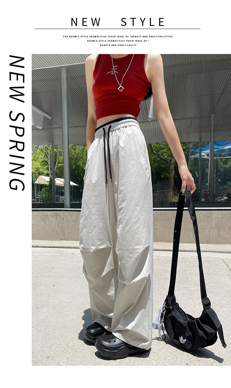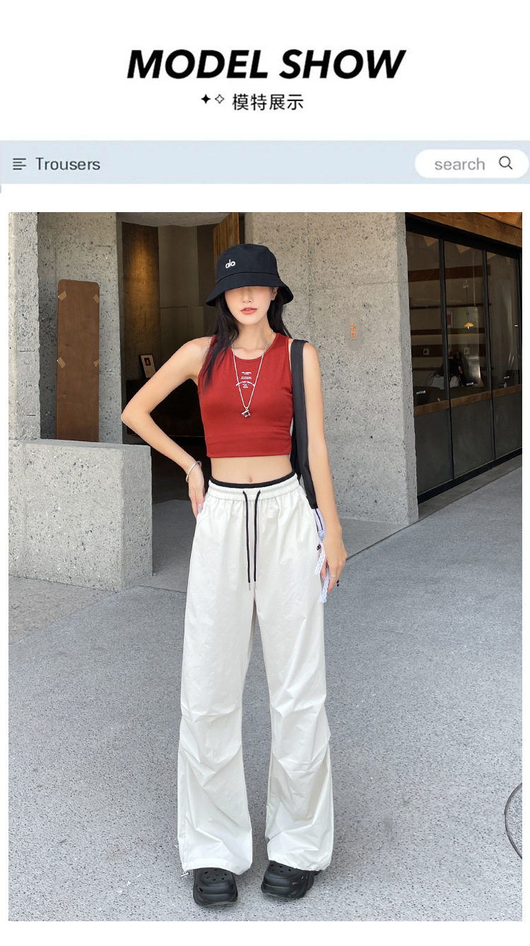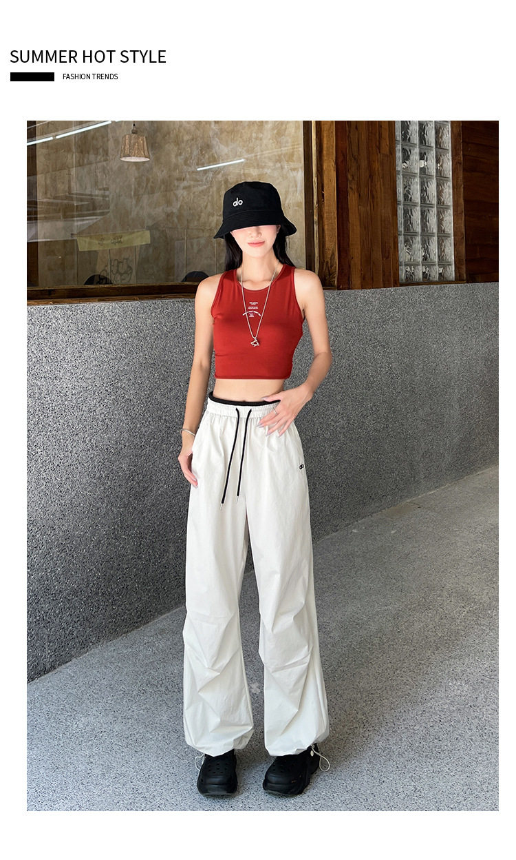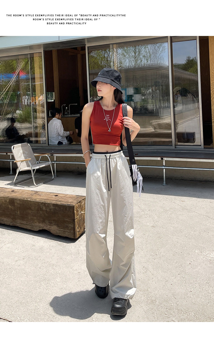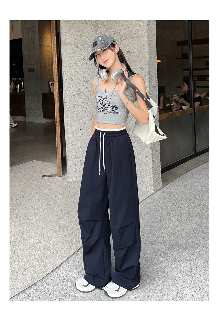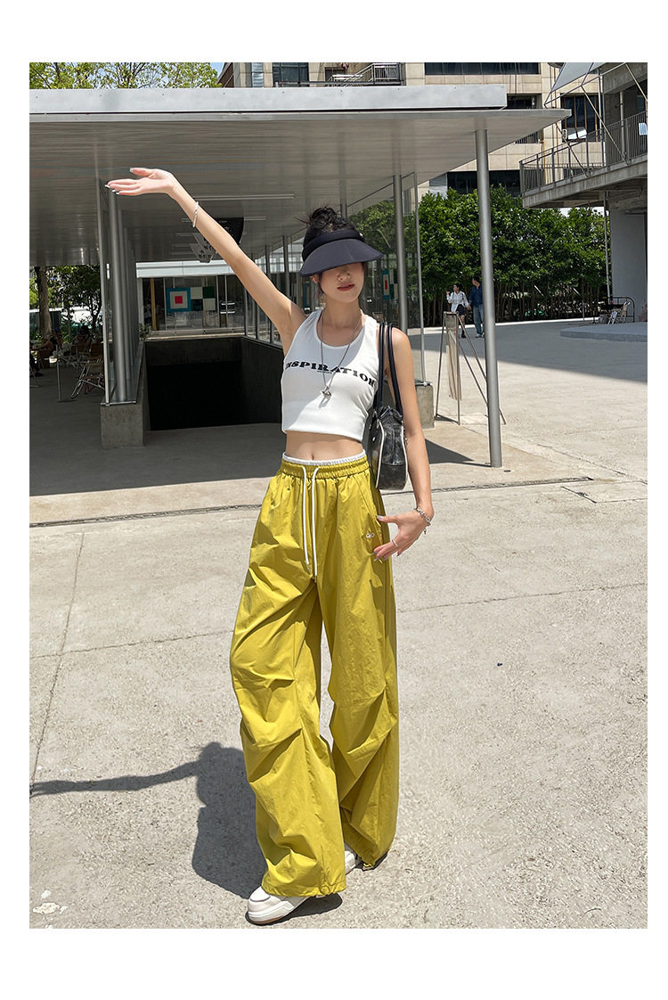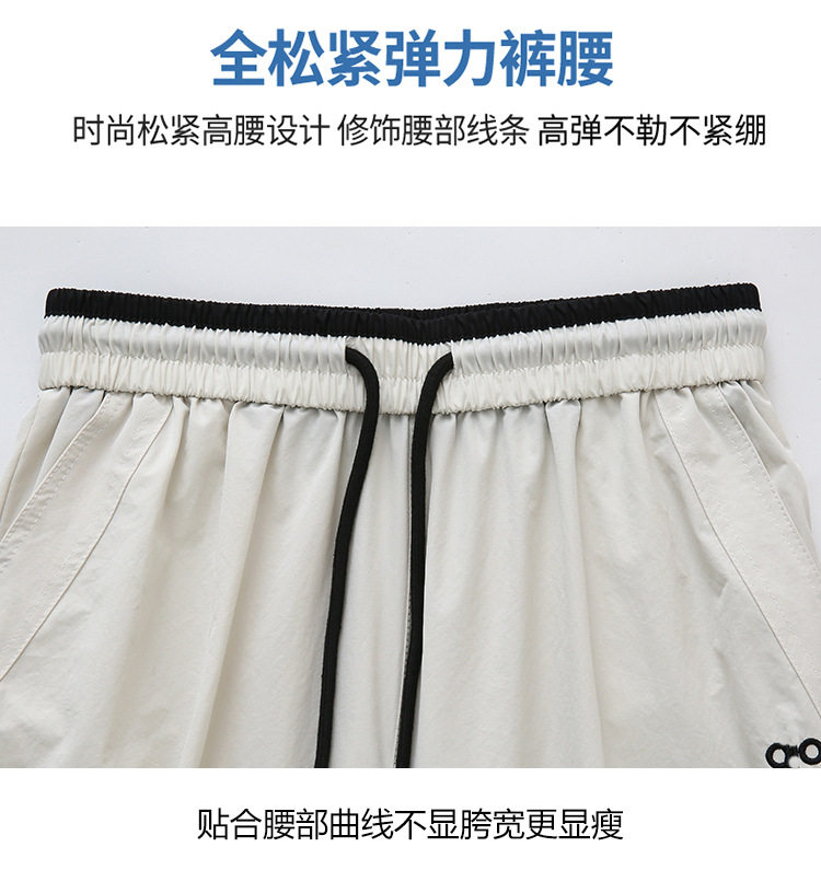 薄款高腰显窄版阔腿裤女夏季新款拼色腰头刺绣时尚宽松休闲长裤 NDK-J6012