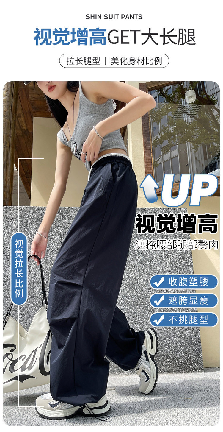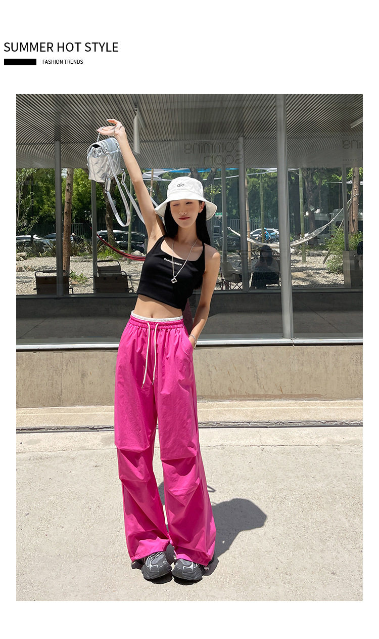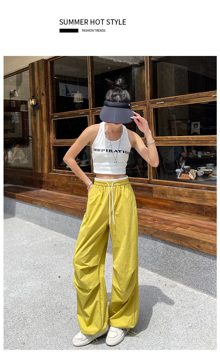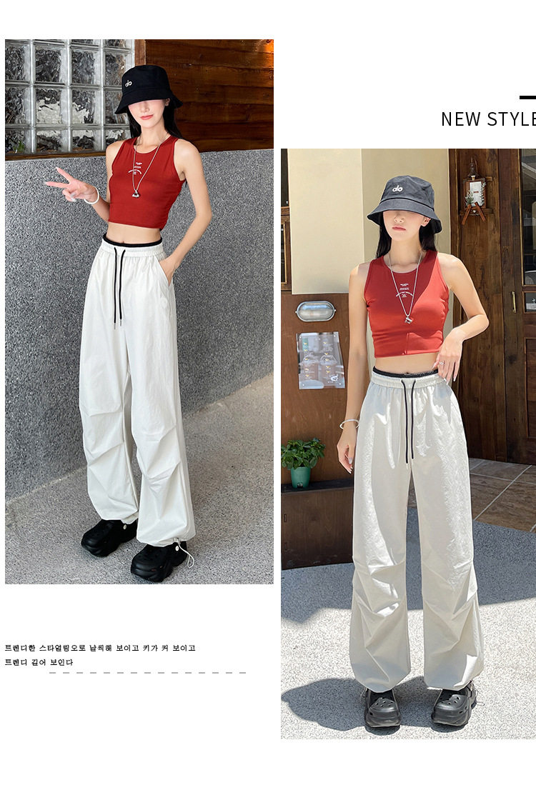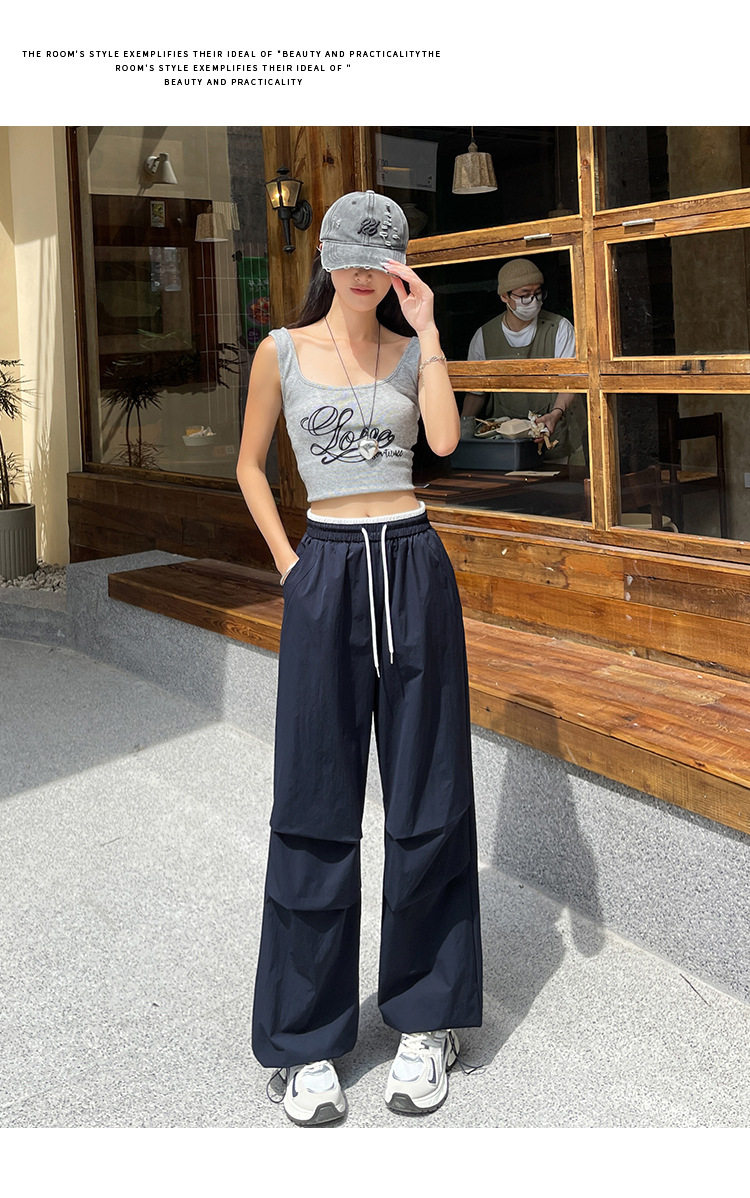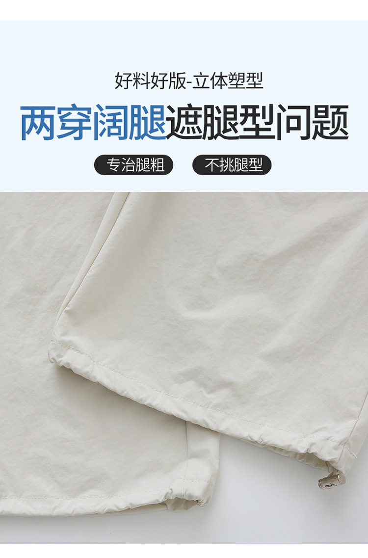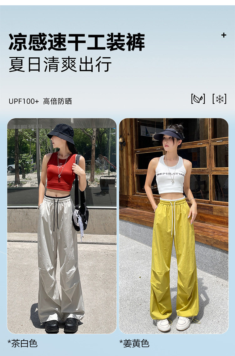 薄款高腰显窄版阔腿裤女夏季新款拼色腰头刺绣时尚宽松休闲长裤 NDK-J6012